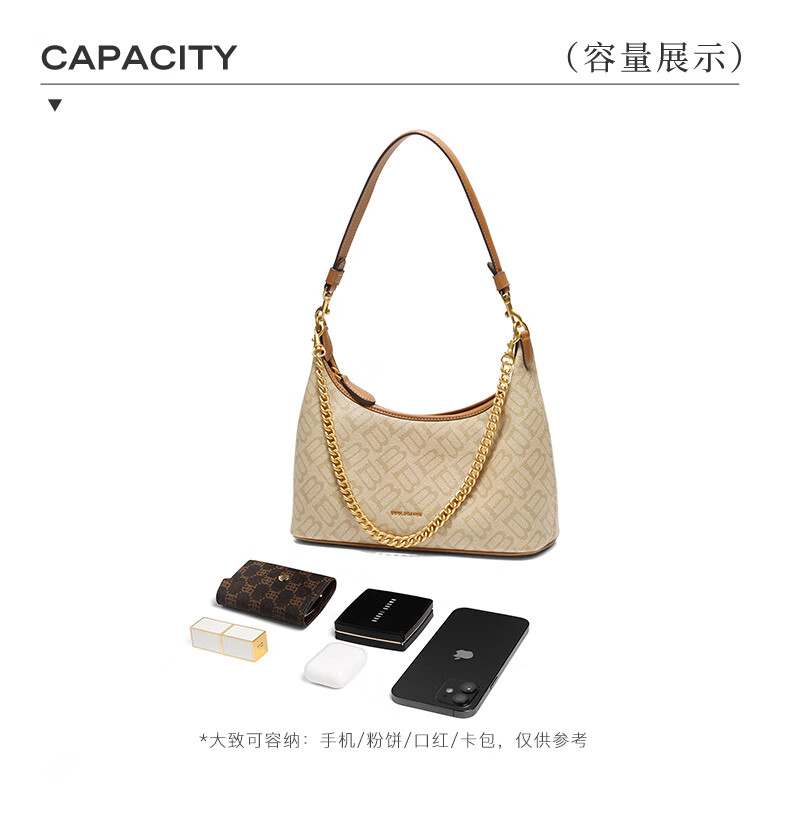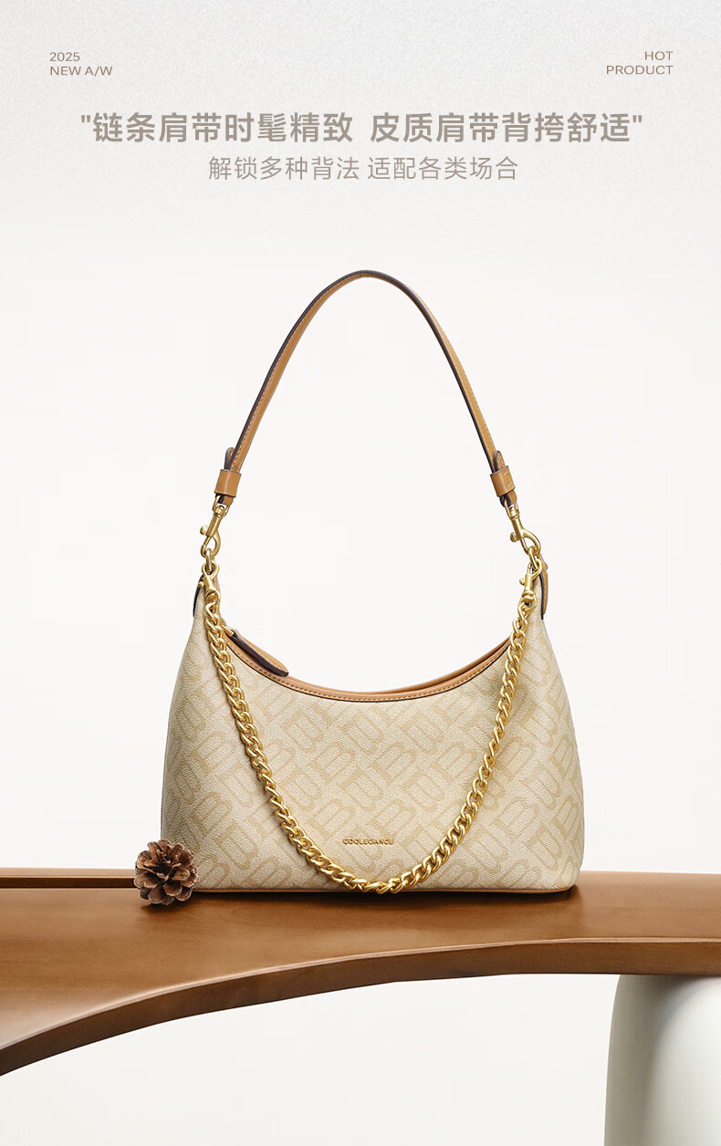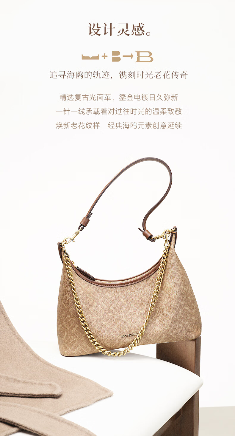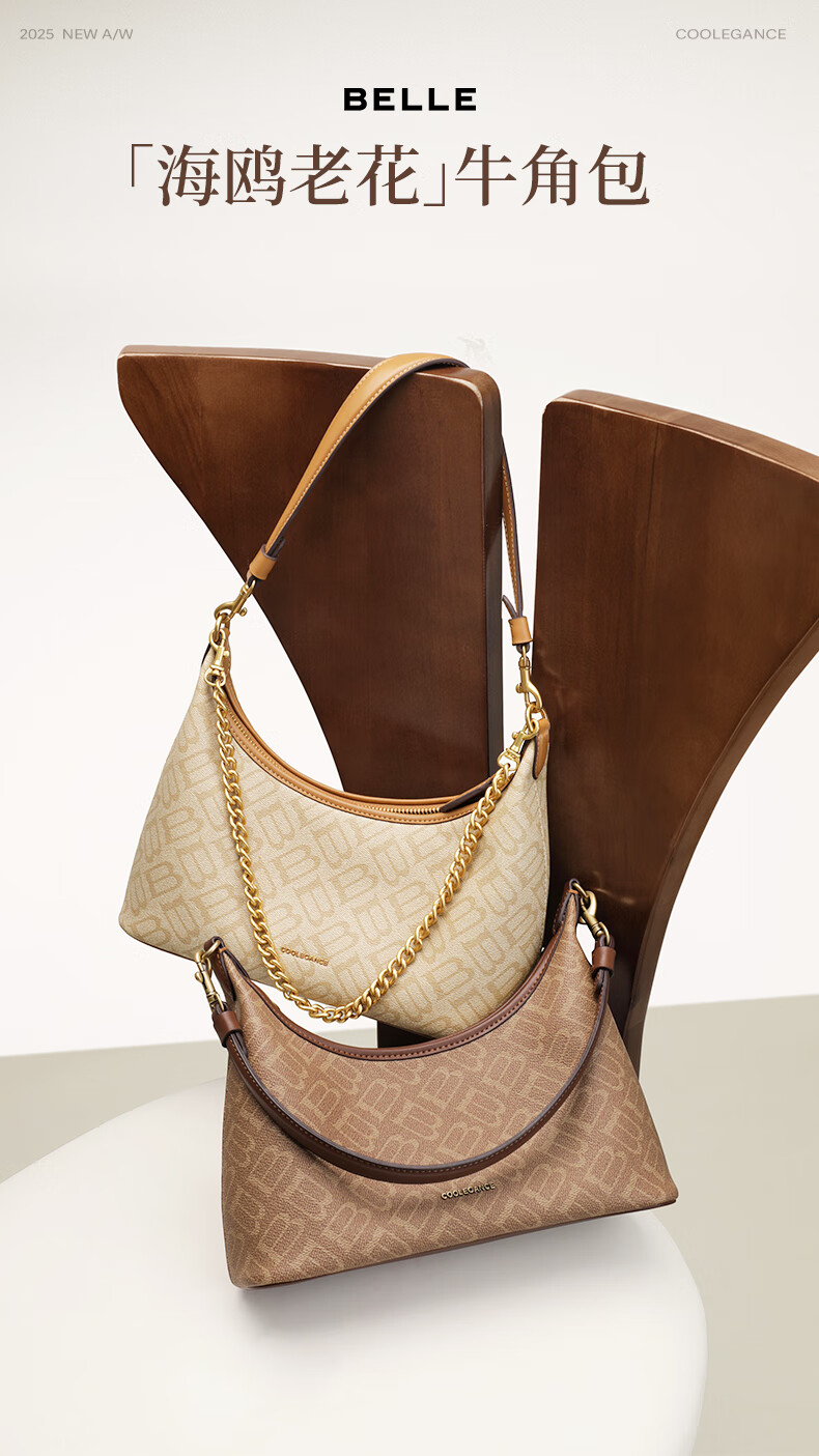 百丽包包女2025秋季新品复古通勤海鸥老花单肩斜挎腋下包X7424CX5 杏色 F