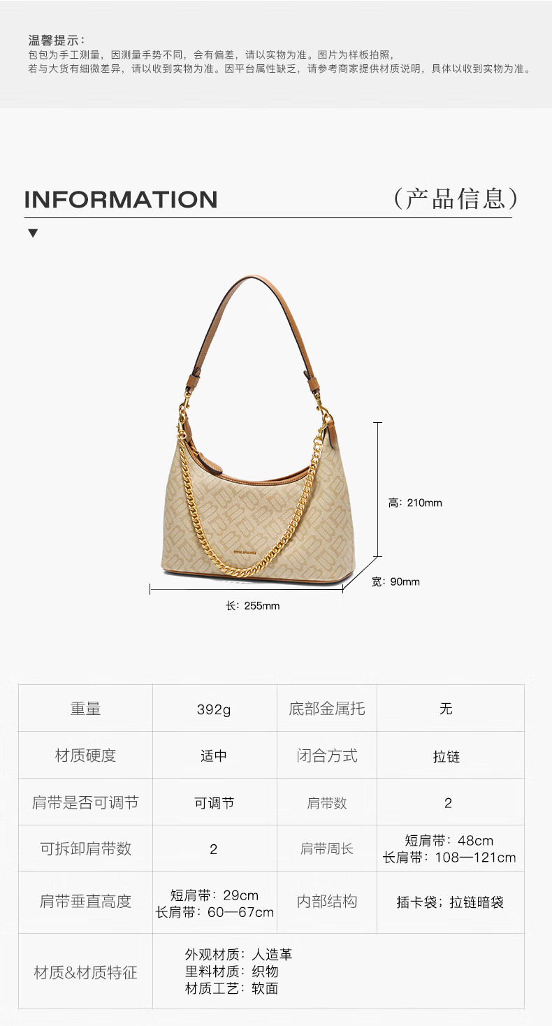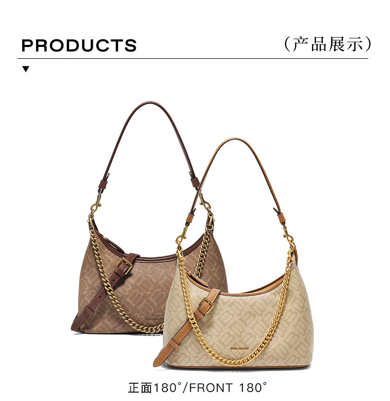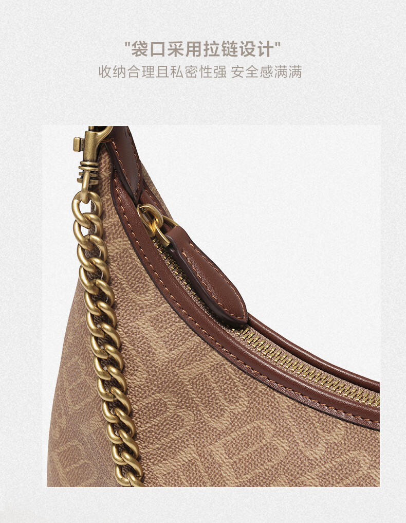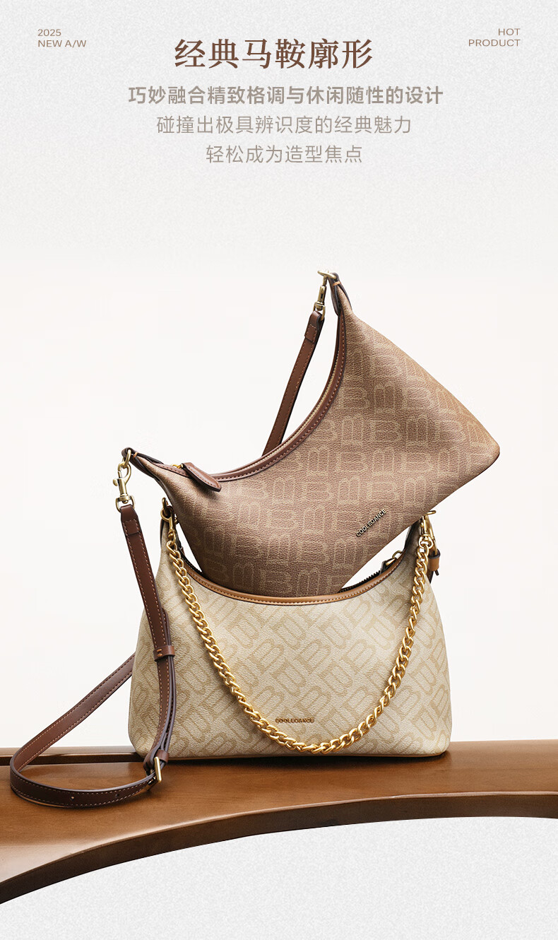 百丽包包女2025秋季新品复古通勤海鸥老花单肩斜挎腋下包X7424CX5 杏色 F