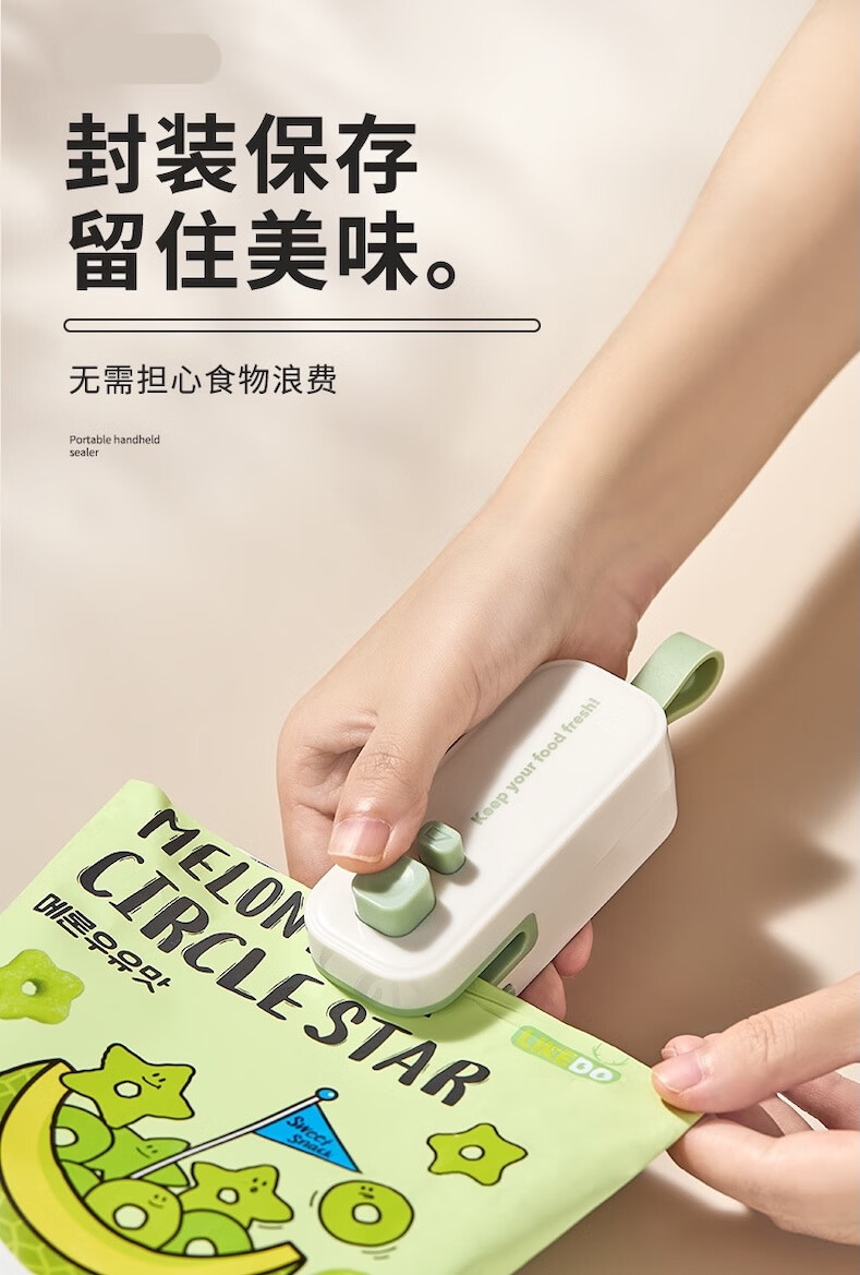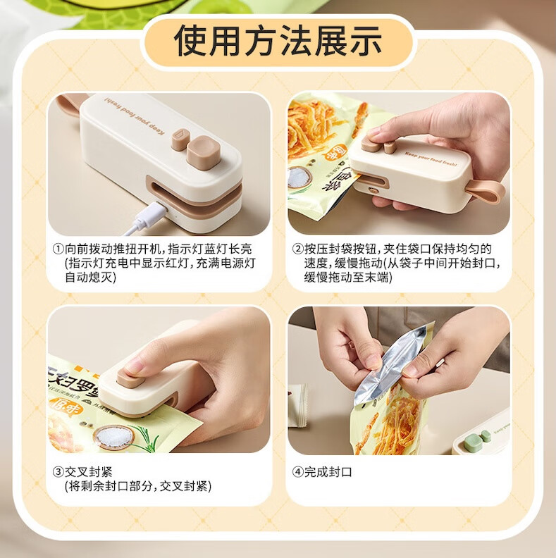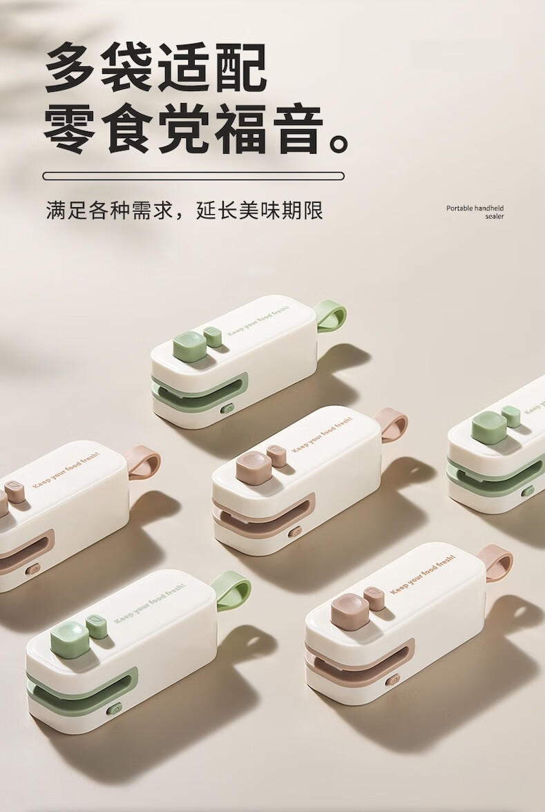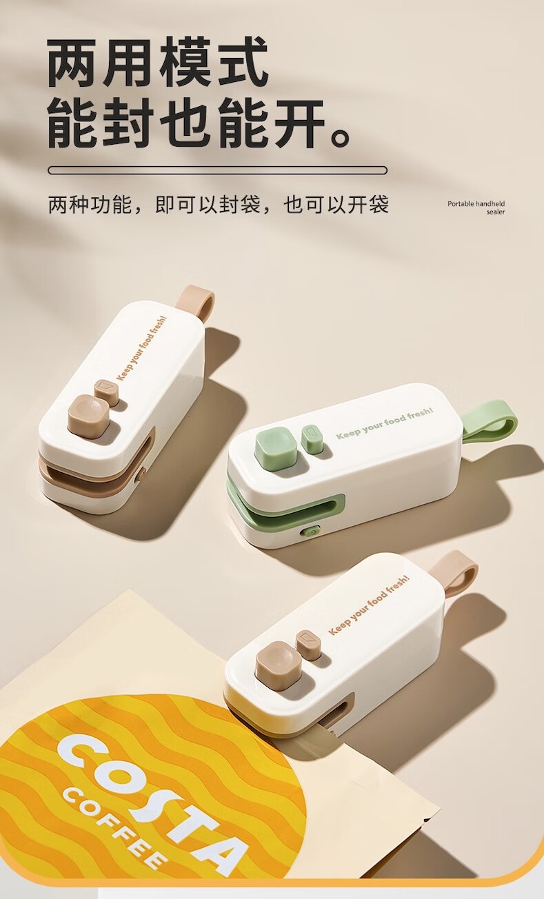 迷你封口机家用小型手压式袋子塑料袋手动式零食封口器手动密封器 奶咖白封口机