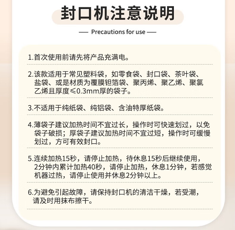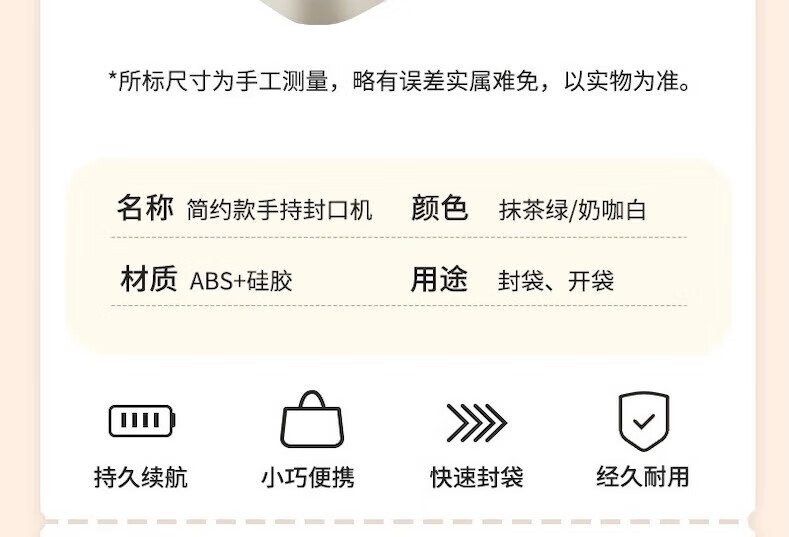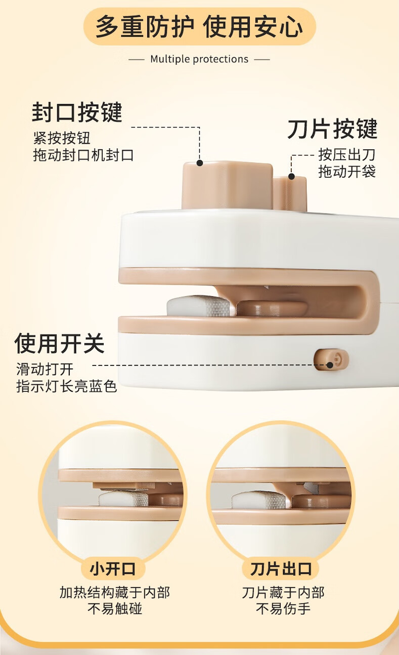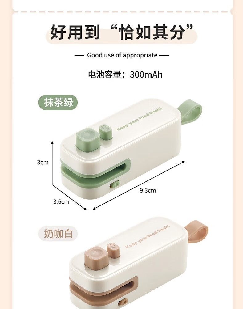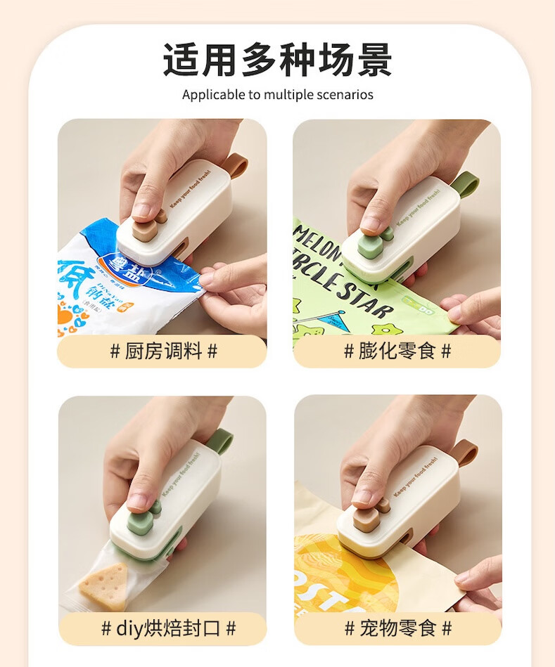 迷你封口机家用小型手压式袋子塑料袋手动式零食封口器手动密封器 奶咖白封口机