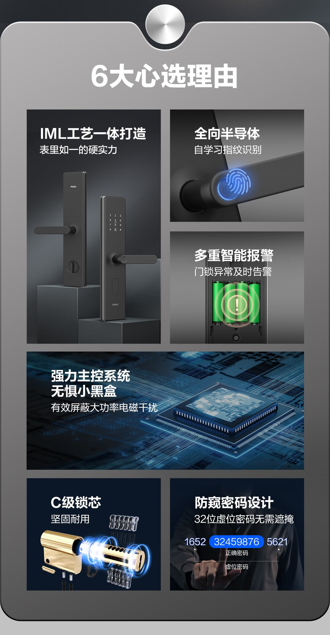 海尔智能门锁指纹锁密码锁智能锁入户门防盗门电子门锁L23