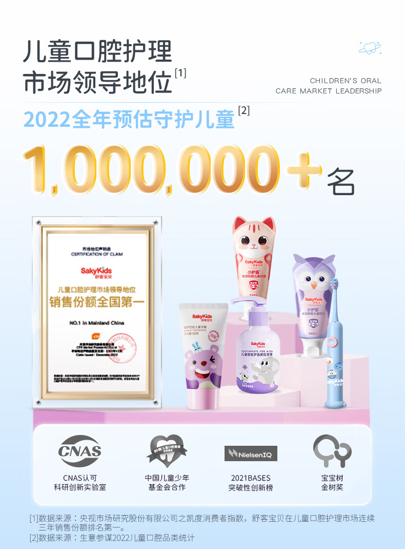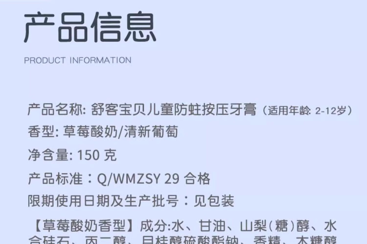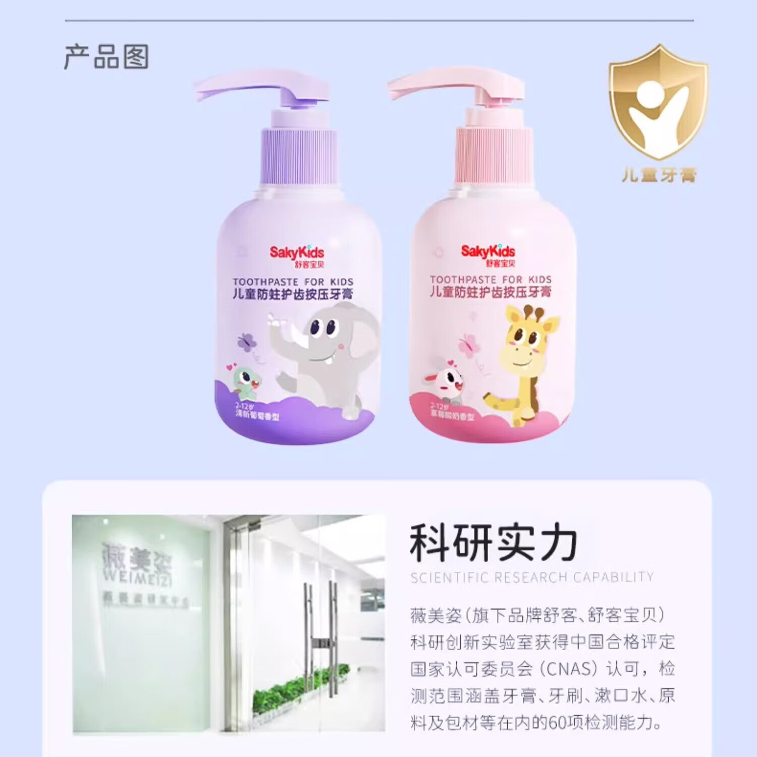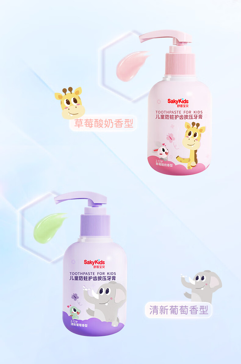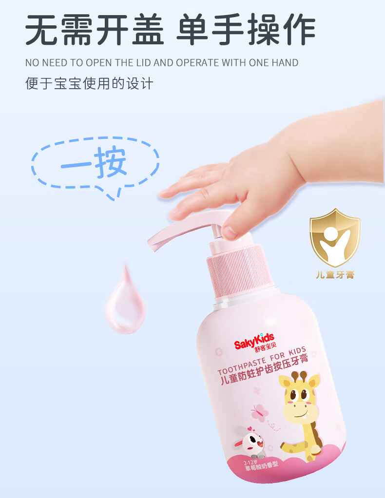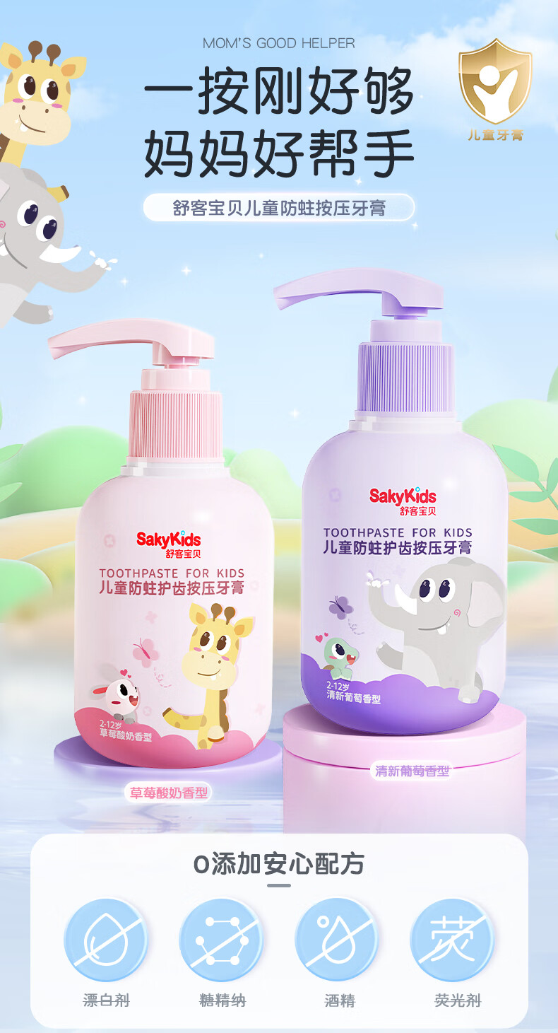 舒客【郭晶晶推荐】2-12岁儿童按压牙膏固齿防蛀宝宝换牙期温和不刺激 【第二支低至19.9】按压牙膏150g*2