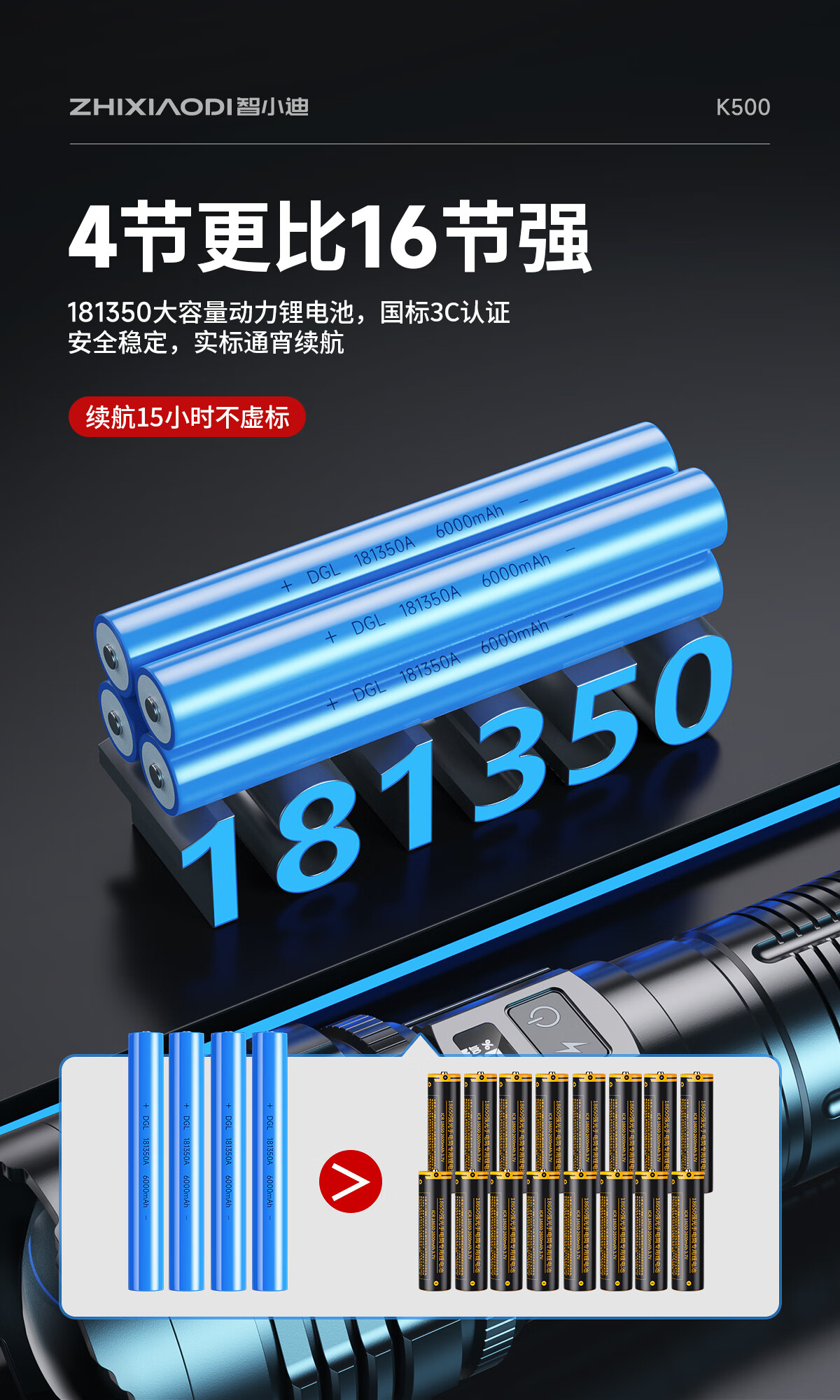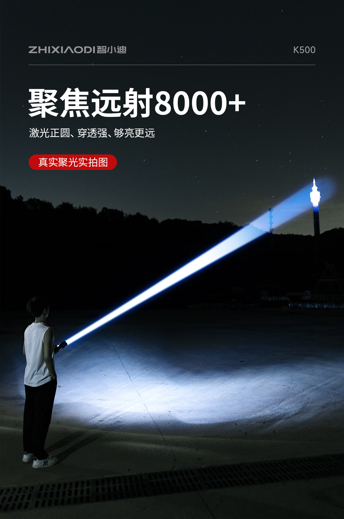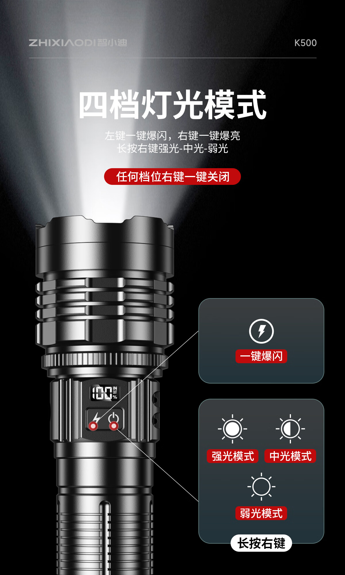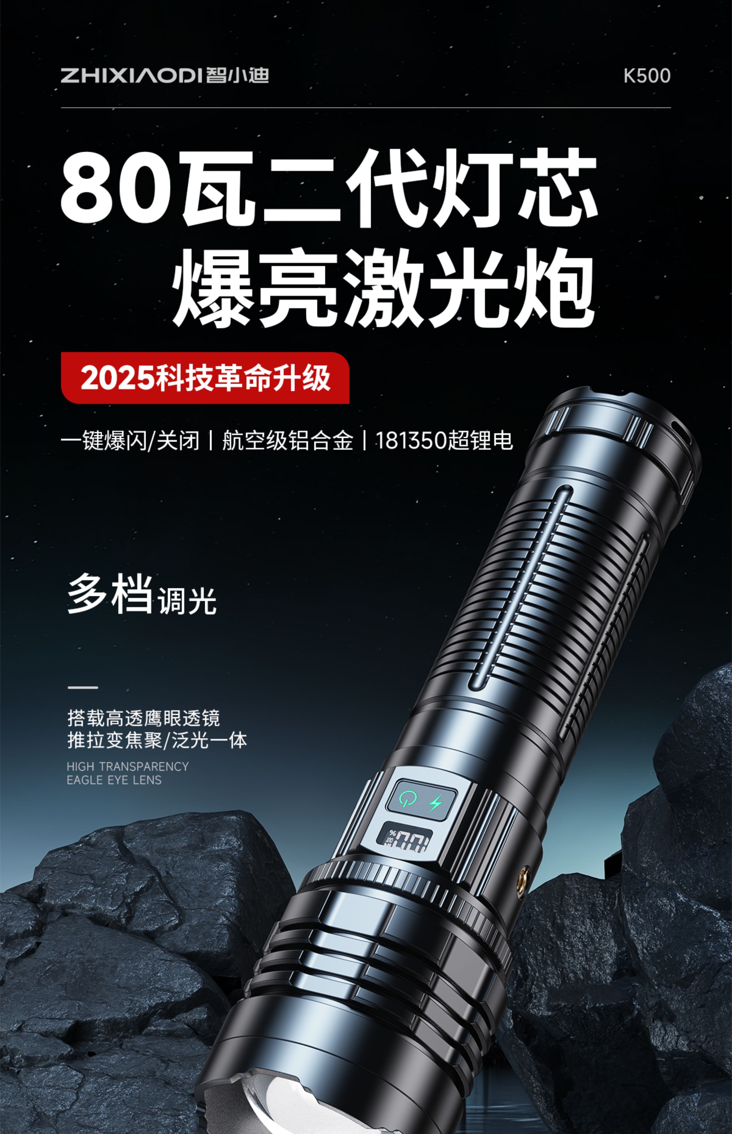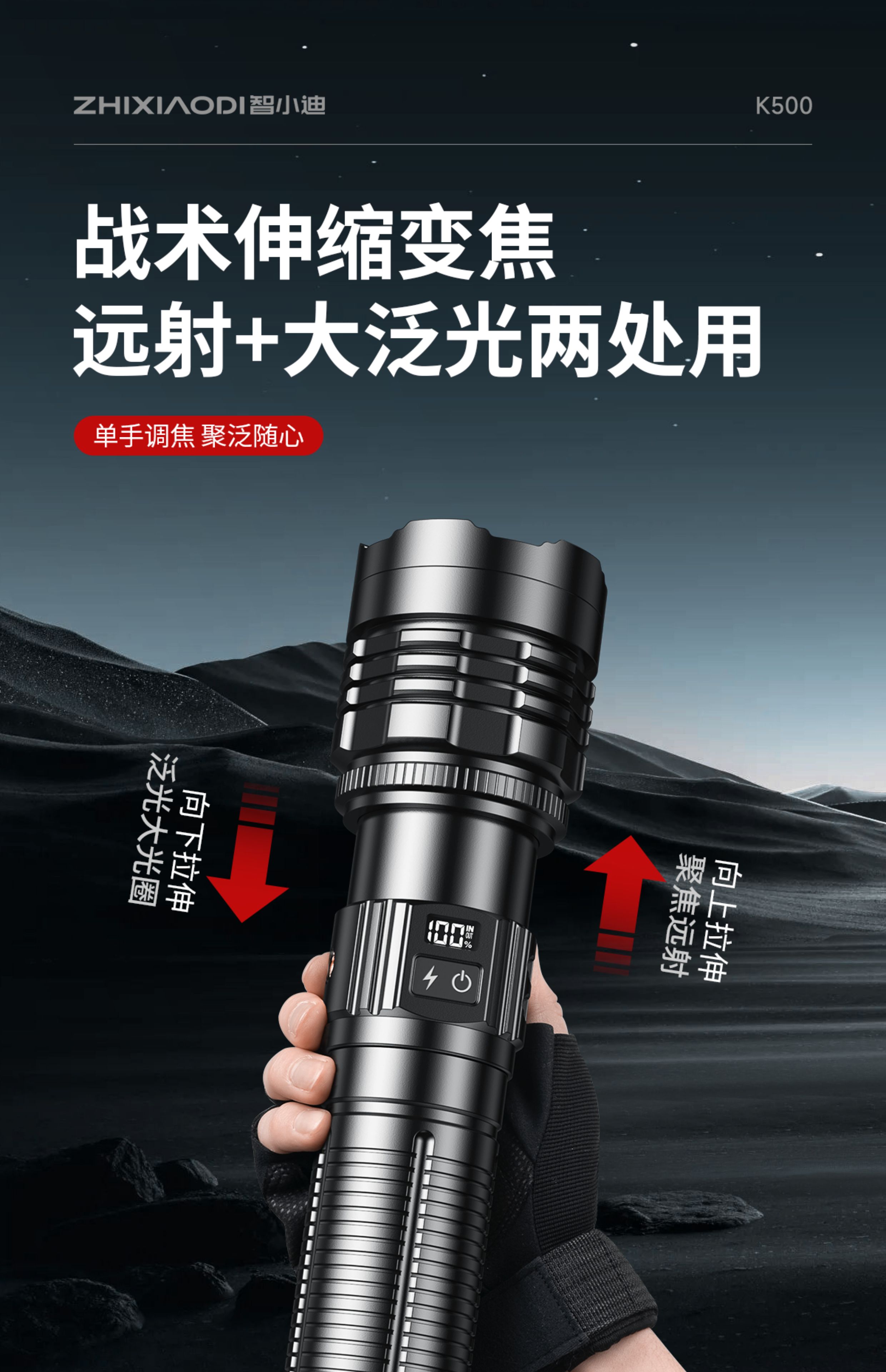 智小迪手电筒强光超亮充电户外长续航大容量激光炮战术超强光手电筒流明 【亮度天花板】长款+4锂电