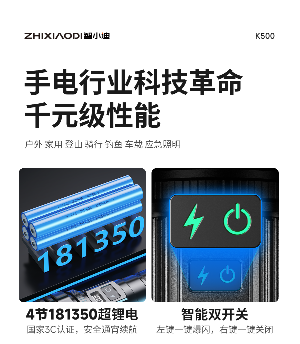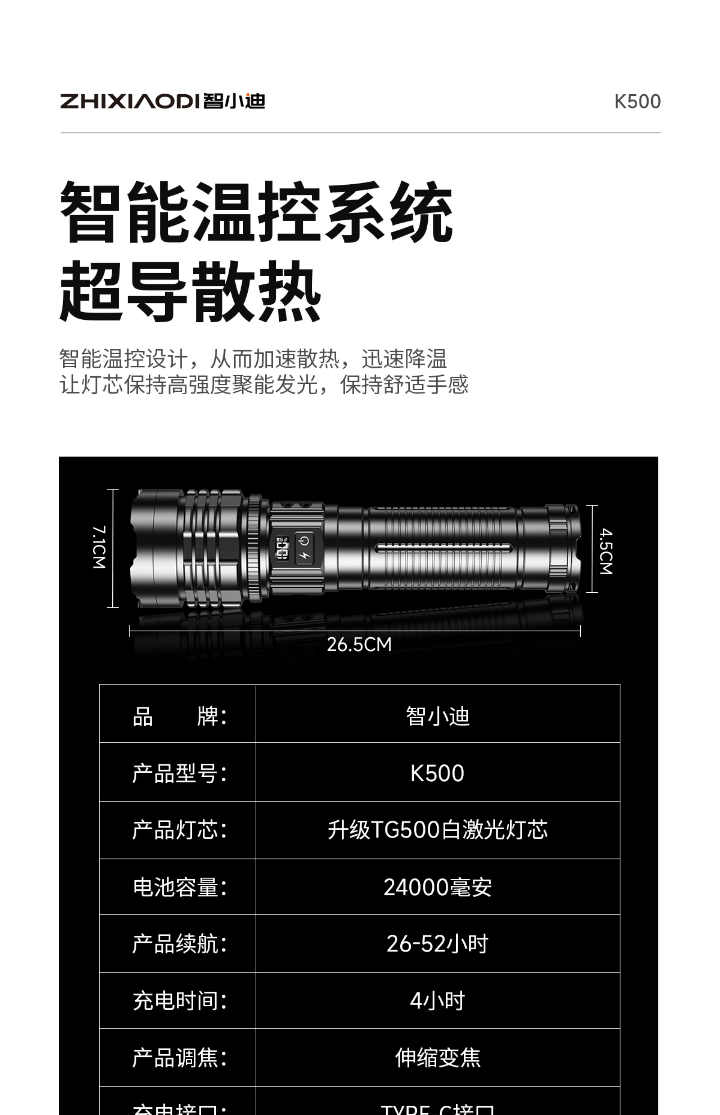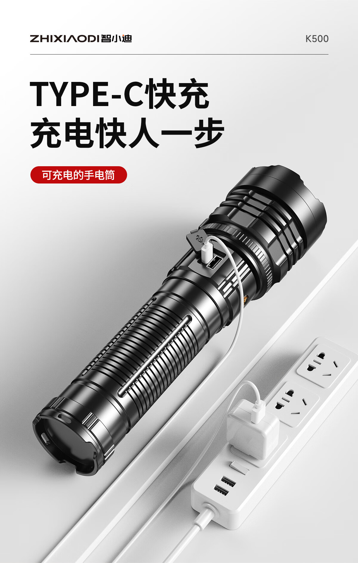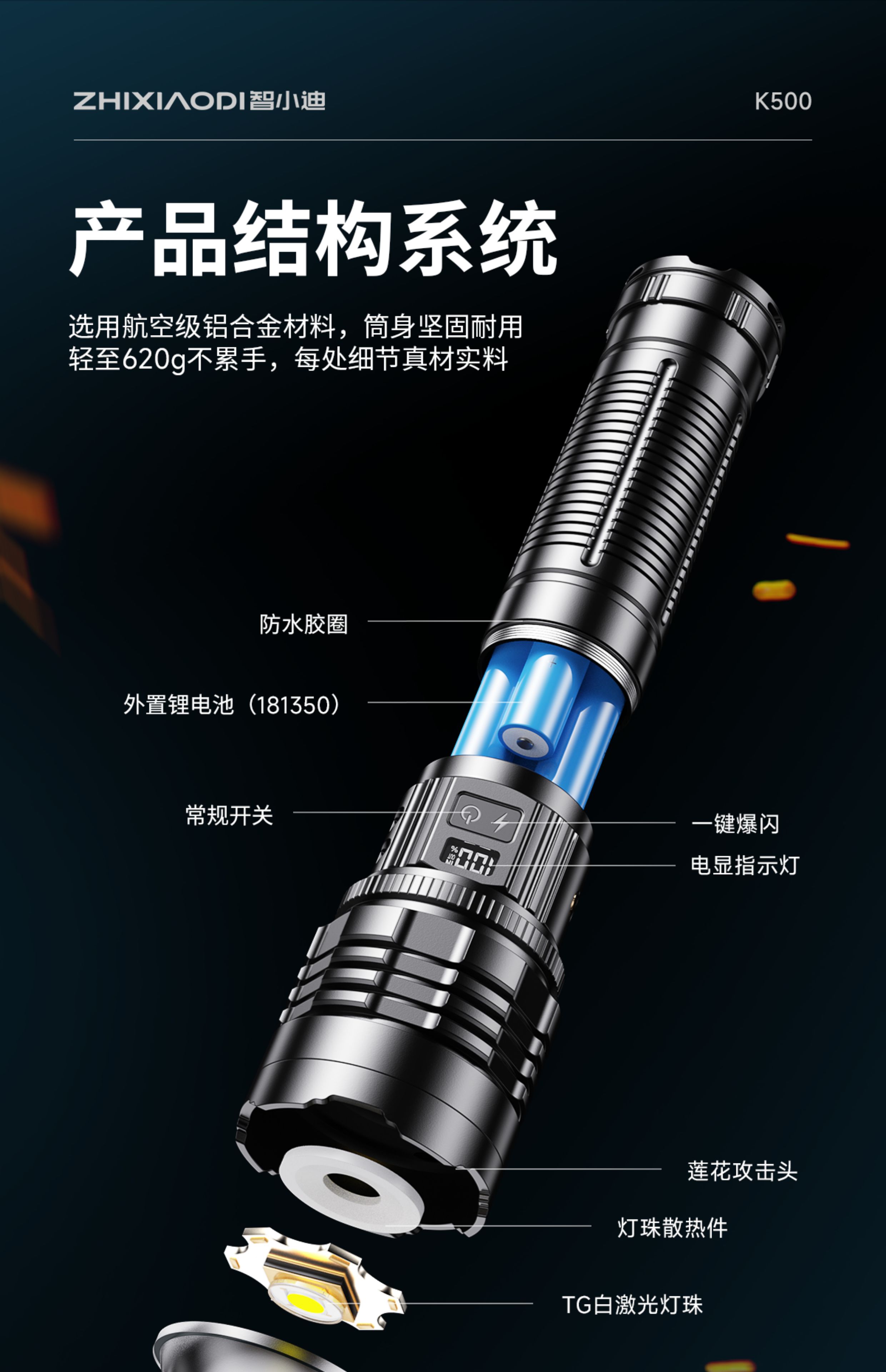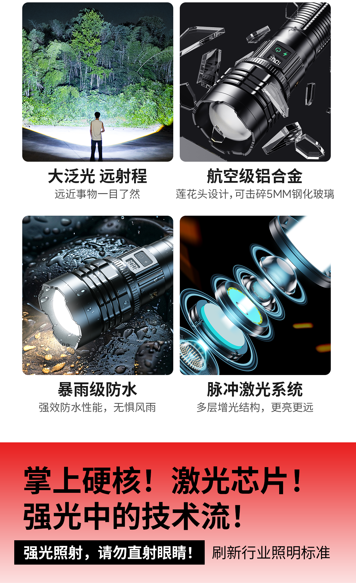 智小迪手电筒强光超亮充电户外长续航大容量激光炮战术超强光手电筒流明 【亮度天花板】长款+4锂电