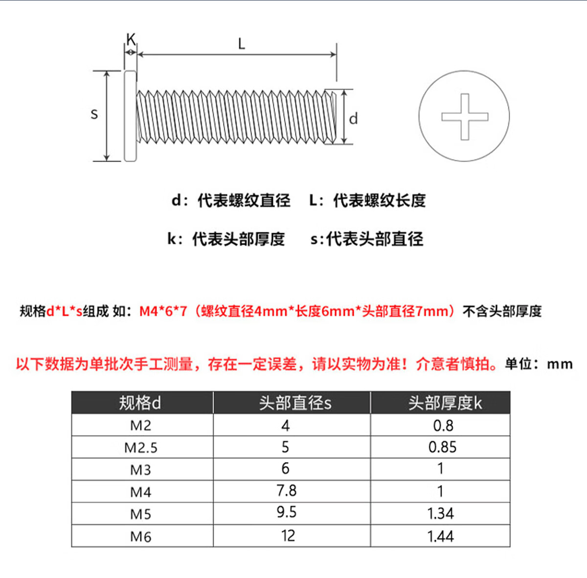 固万基304不锈钢薄头扁平头十字螺栓CM点胶防松动胶涂蓝胶螺丝钉M2M3-M8 M2x3x4(200只)