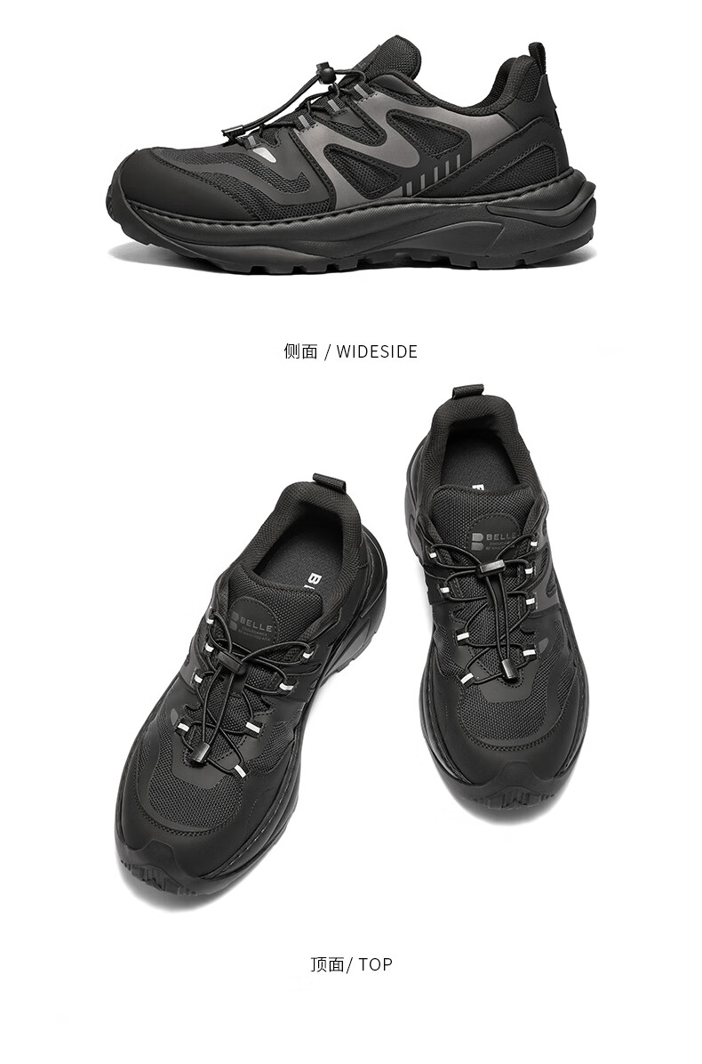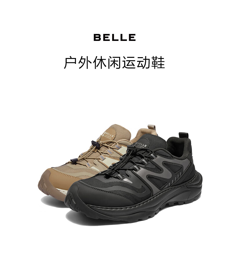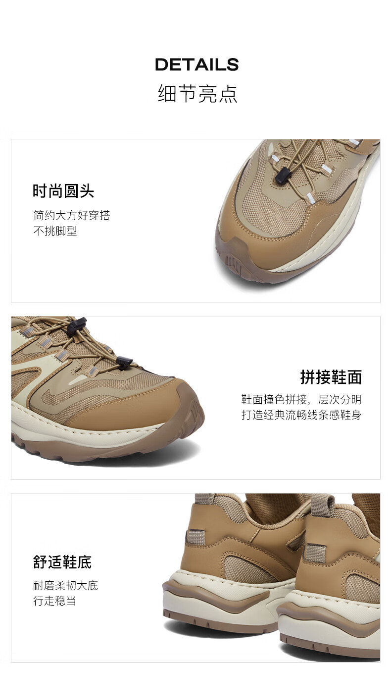 百丽网面拼接户外休闲鞋男鞋2025秋新厚底增高运动鞋A2157CM5 卡其色 38 (240mm)