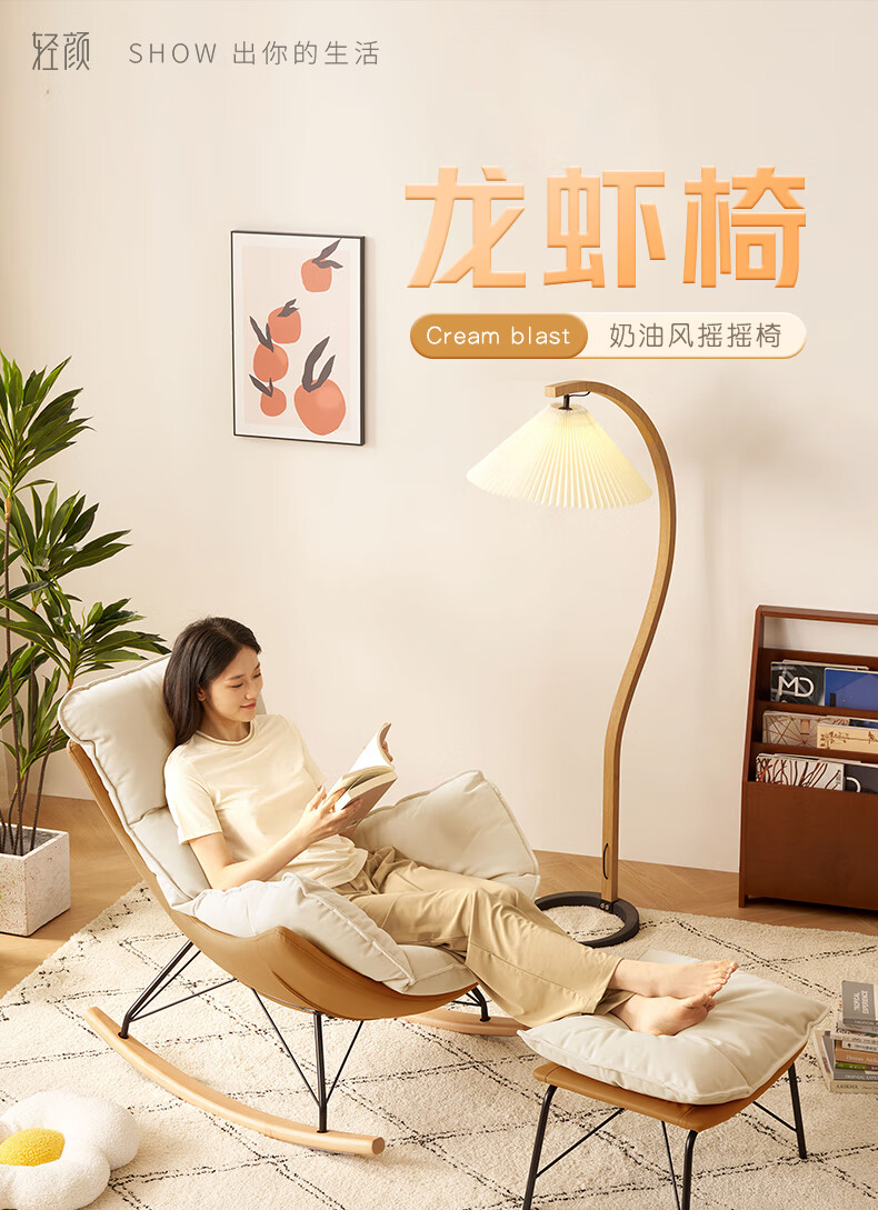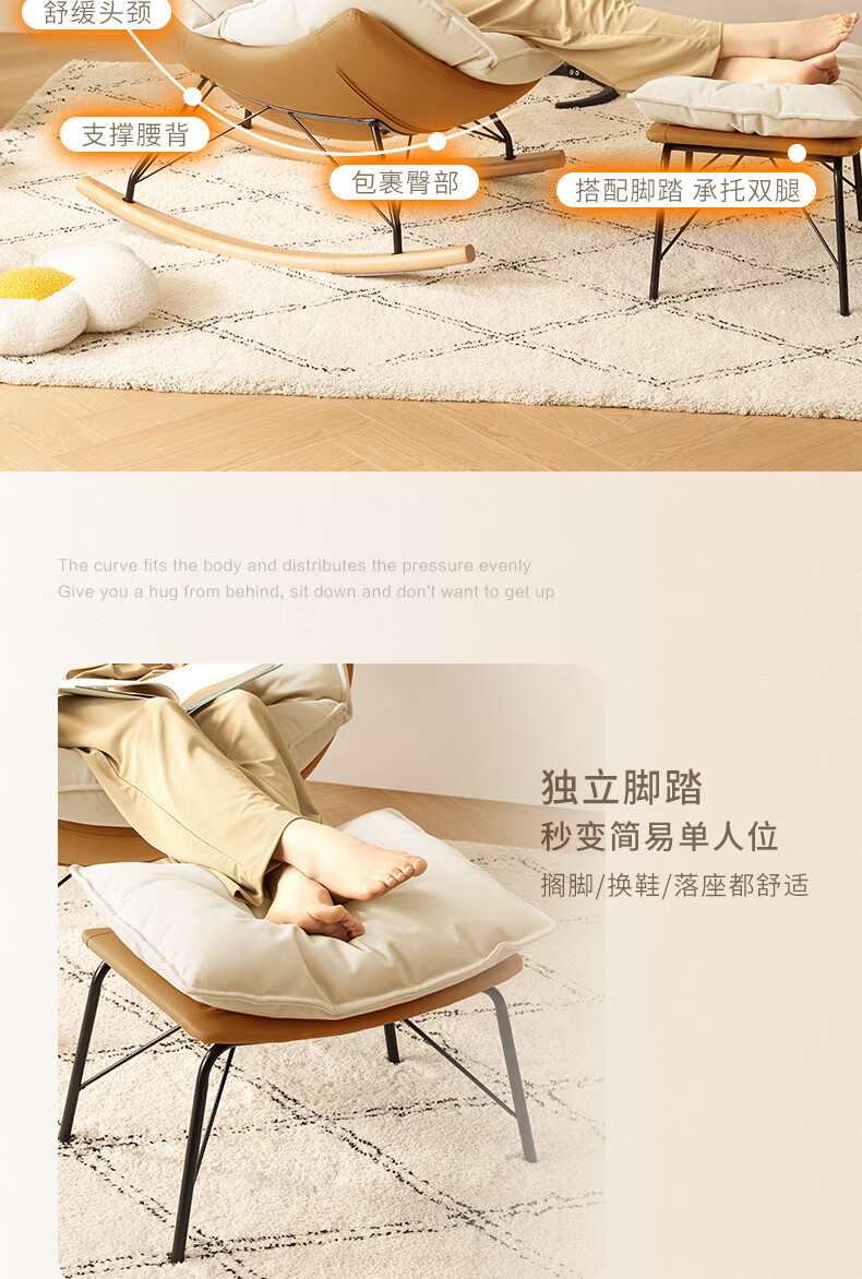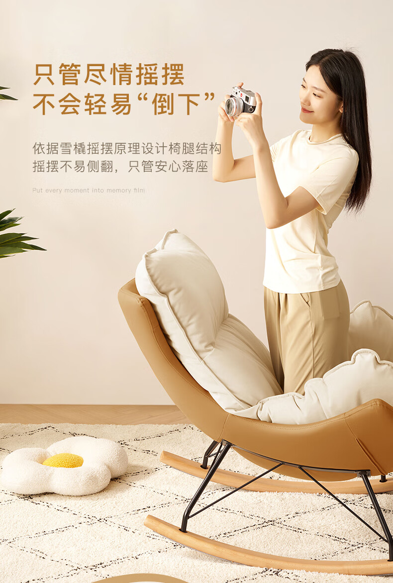 顾家家居(KUKA)现代简约新品绒布摇摇椅软靠包公仔棉舒适单椅DS3402 天鹅绒摇摇椅