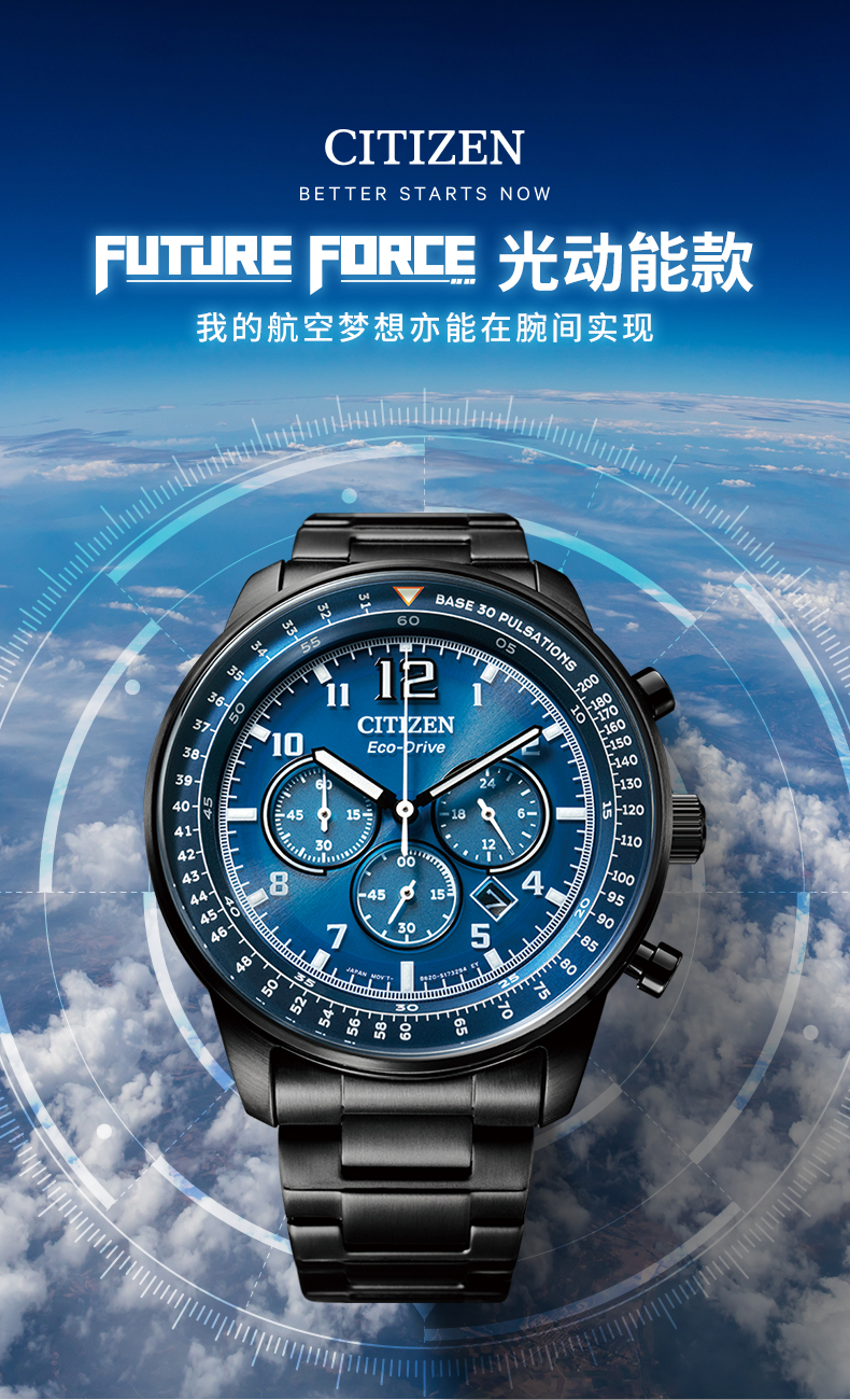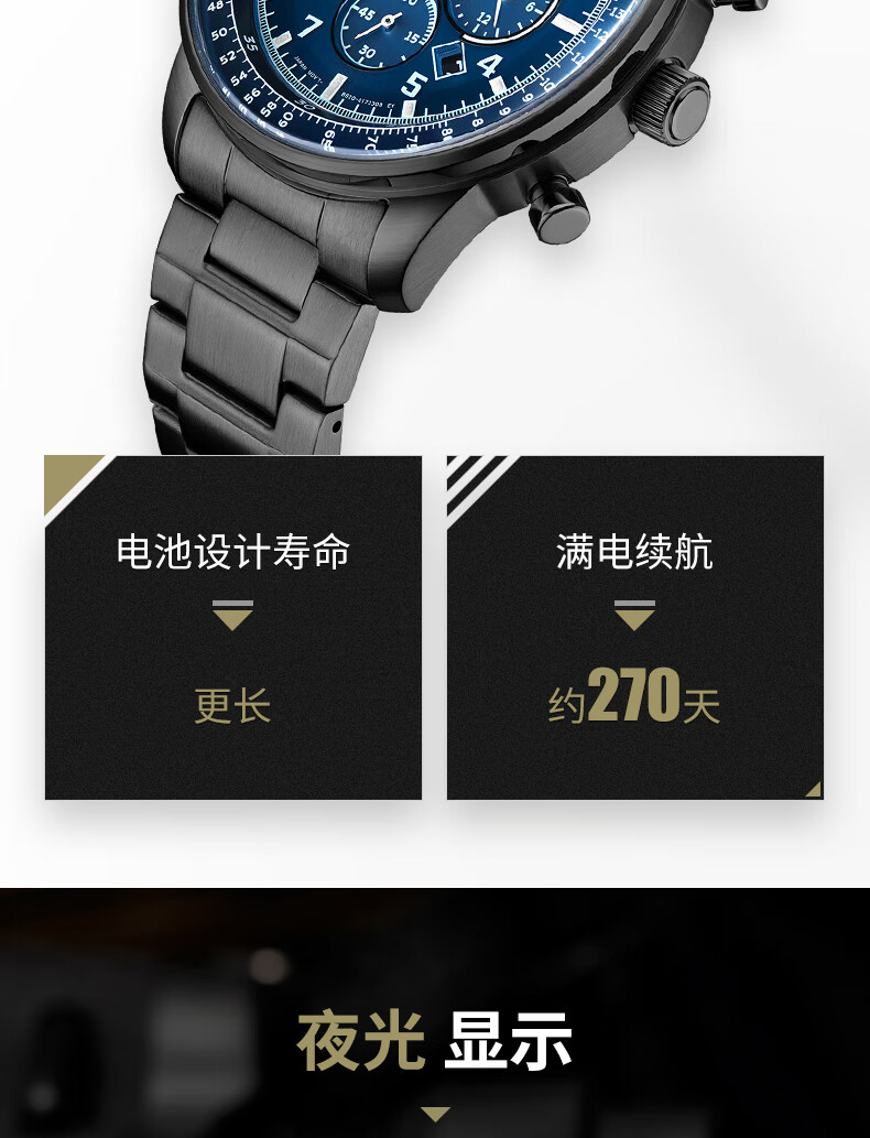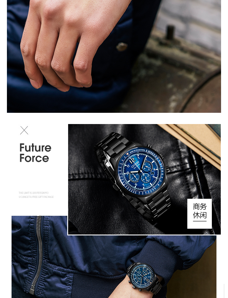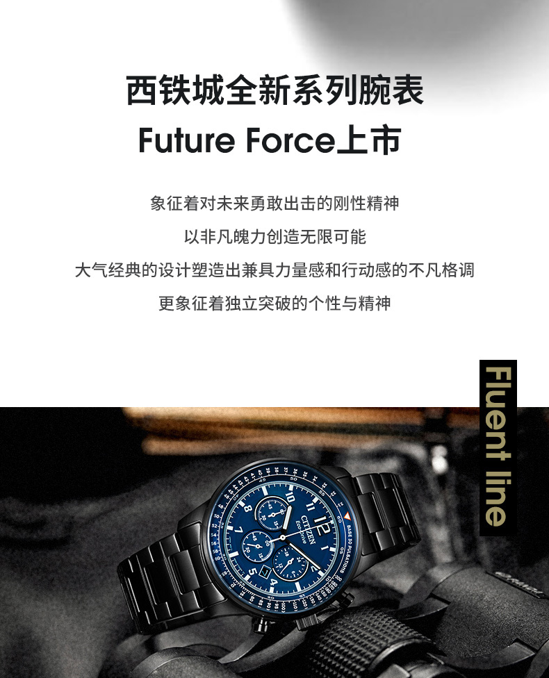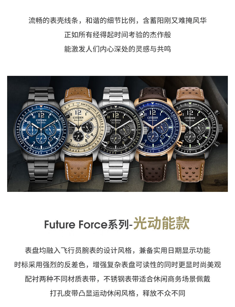 西铁城(CITIZEN)手表男日韩表FF系列光动能日显盘钢带商务送礼物男友CA4505-80L