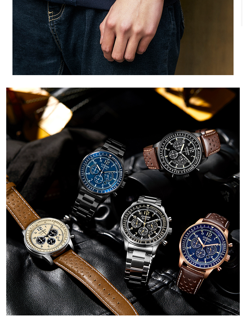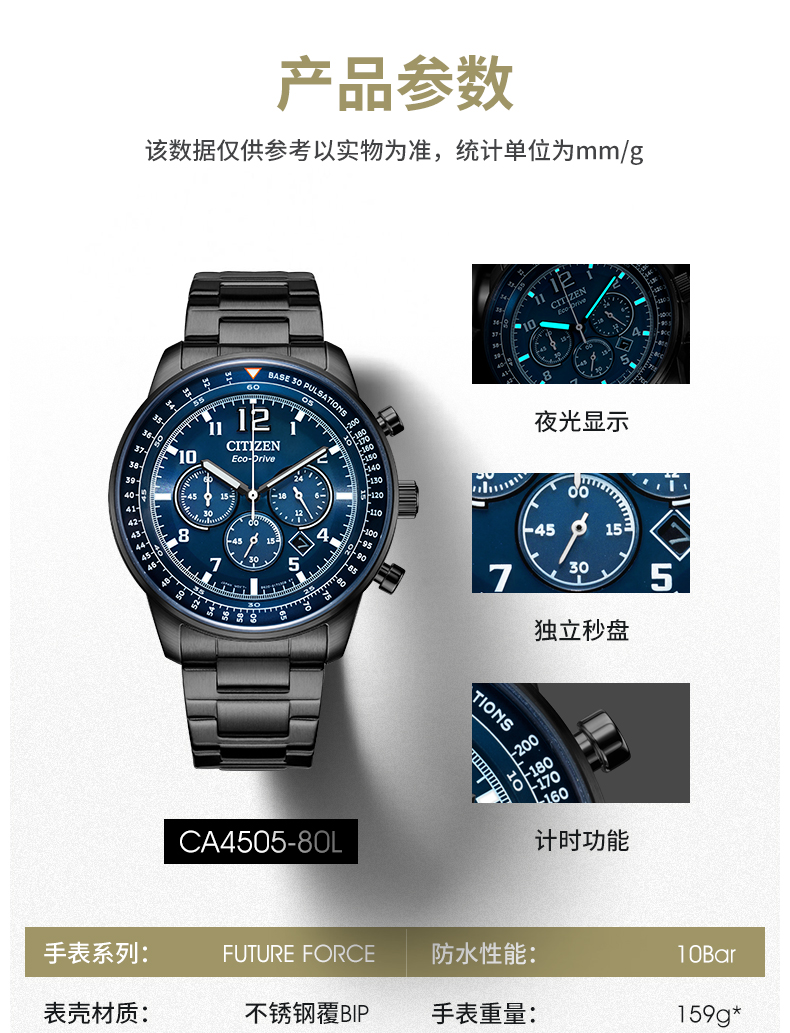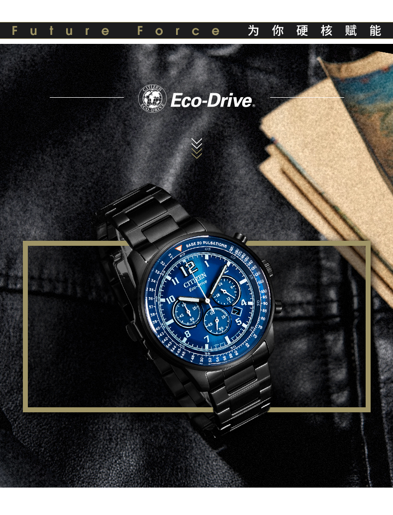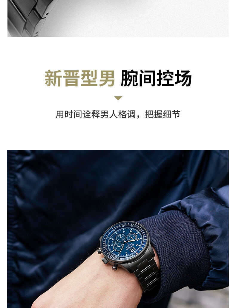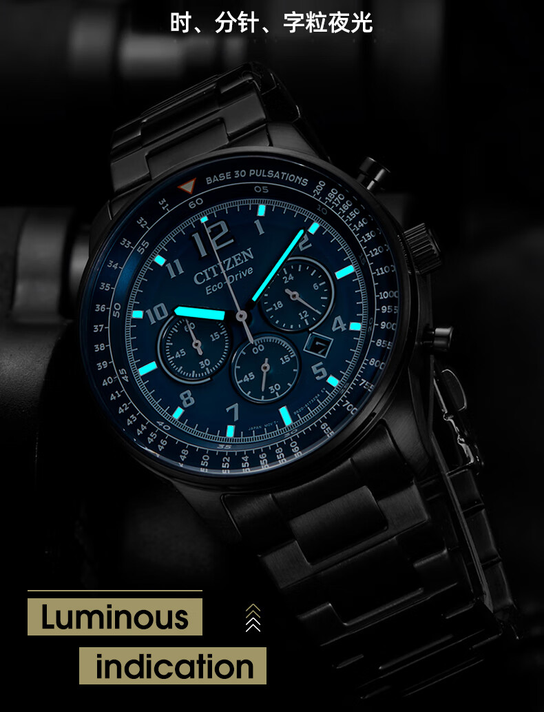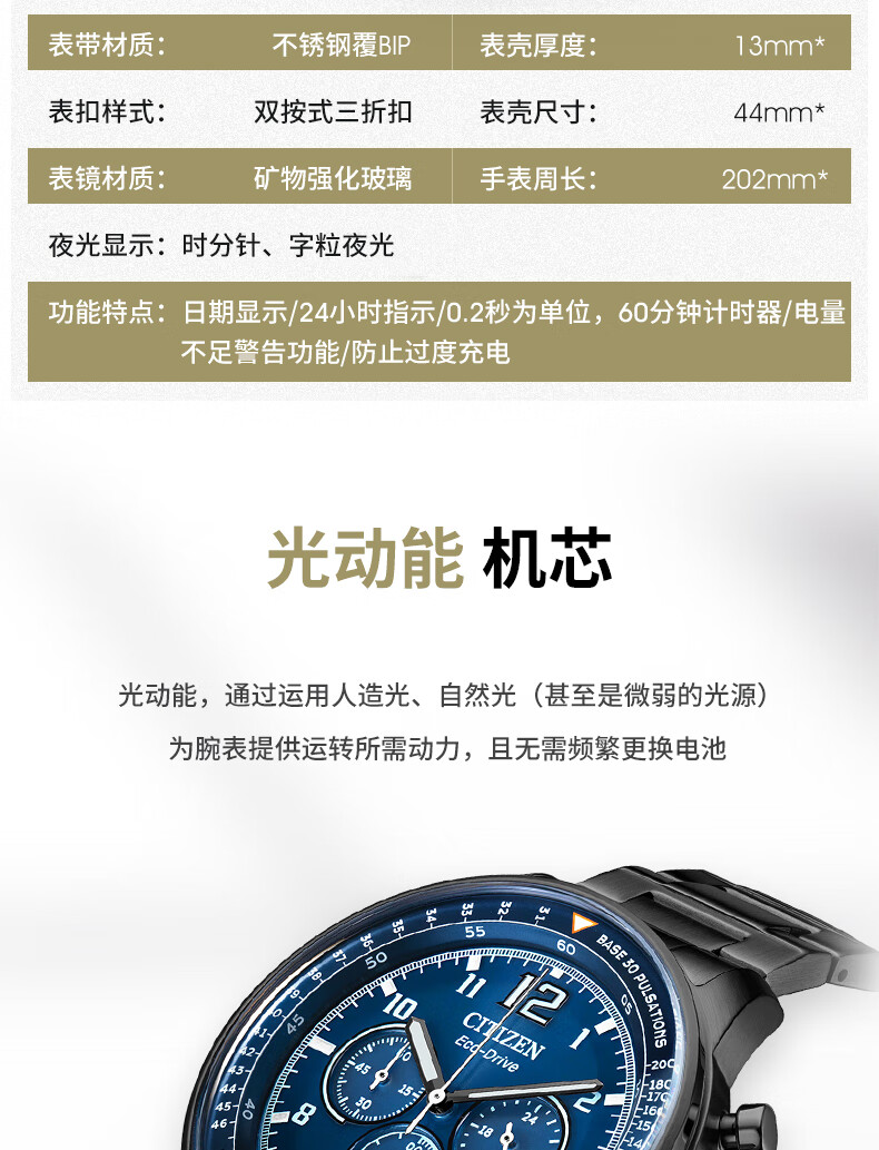 西铁城(CITIZEN)手表男日韩表FF系列光动能日显盘钢带商务送礼物男友CA4505-80L