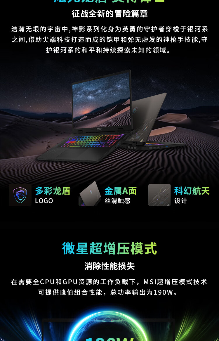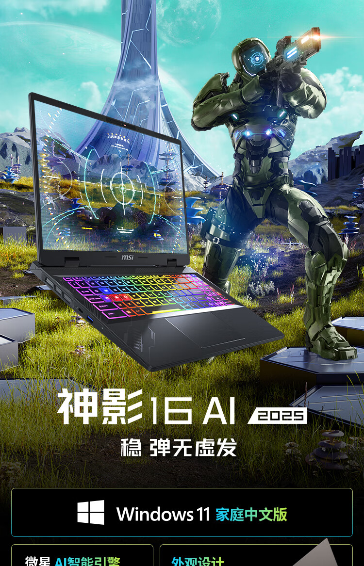 微星(MSI)神影16 AI 2025 国家补贴20% 16英寸游戏笔记本电脑(酷睿Ultra 9-275HX RTX5070 1TB 2.5K/240Hz)