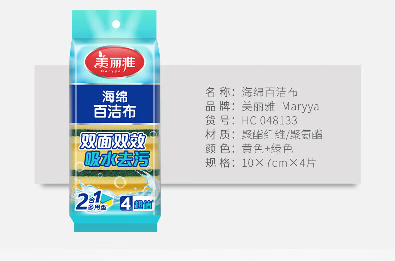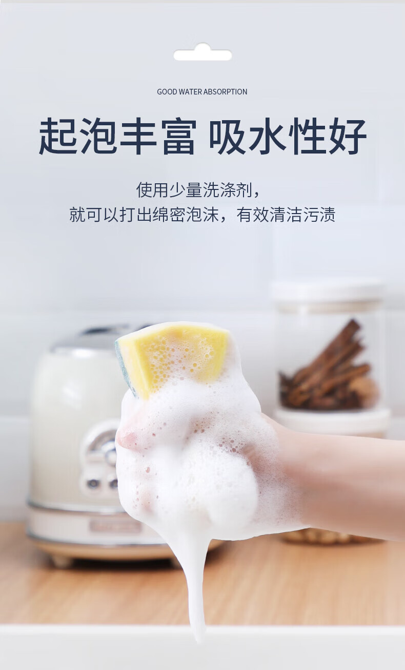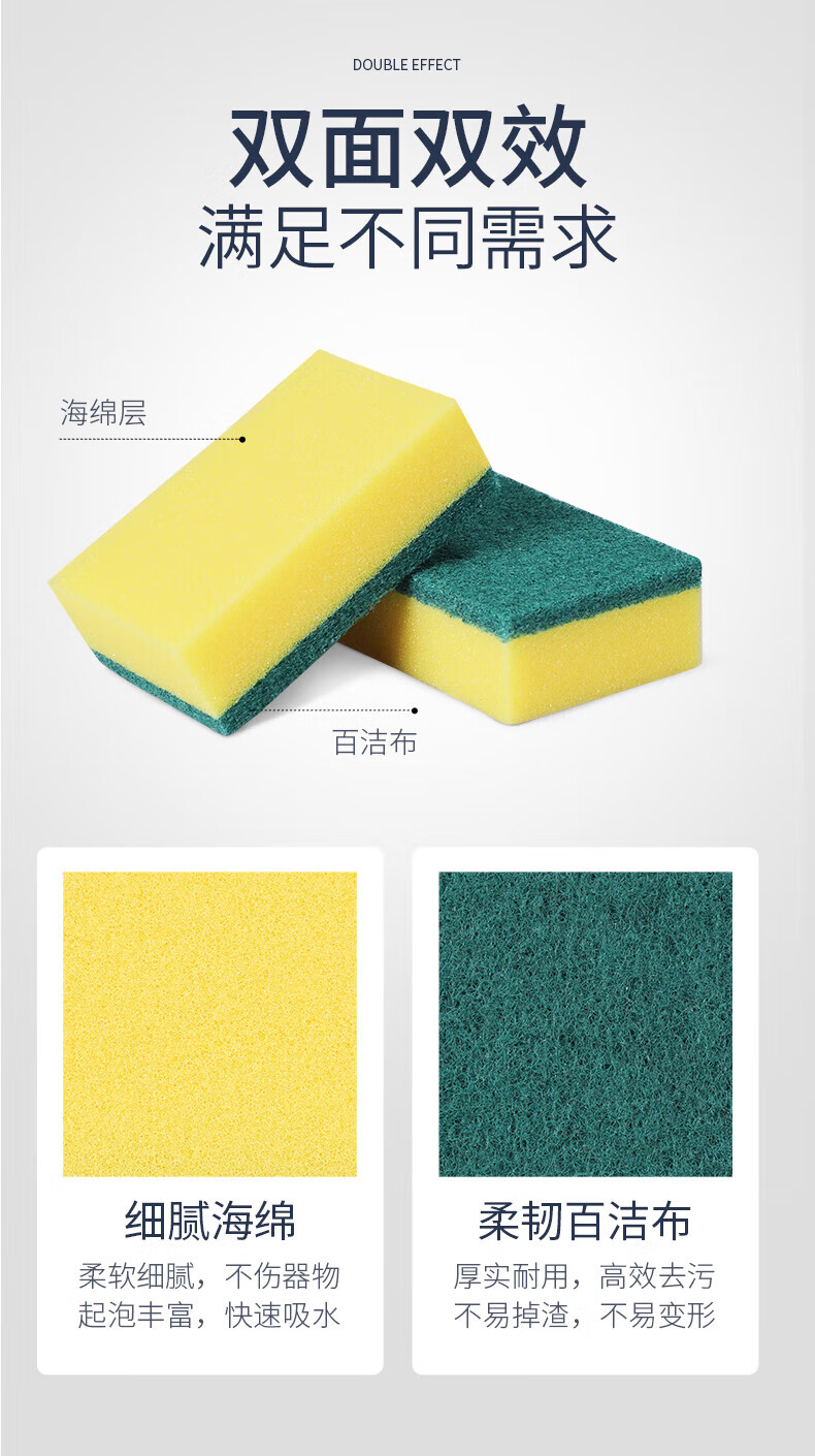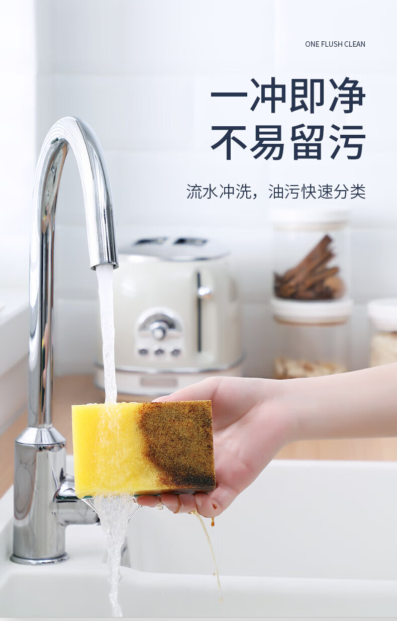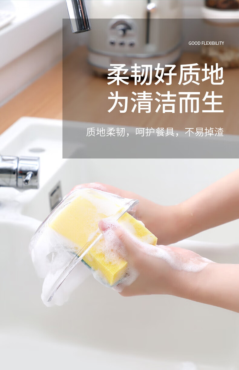 美丽雅海绵百洁布 多用途吸水抹布厨房洗碗布去污强吸油性抹布 U型4片