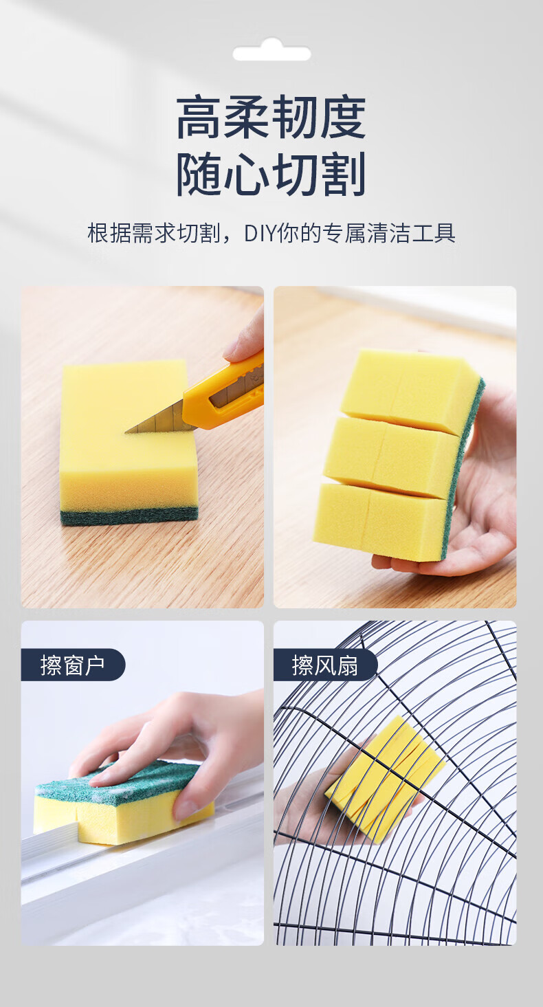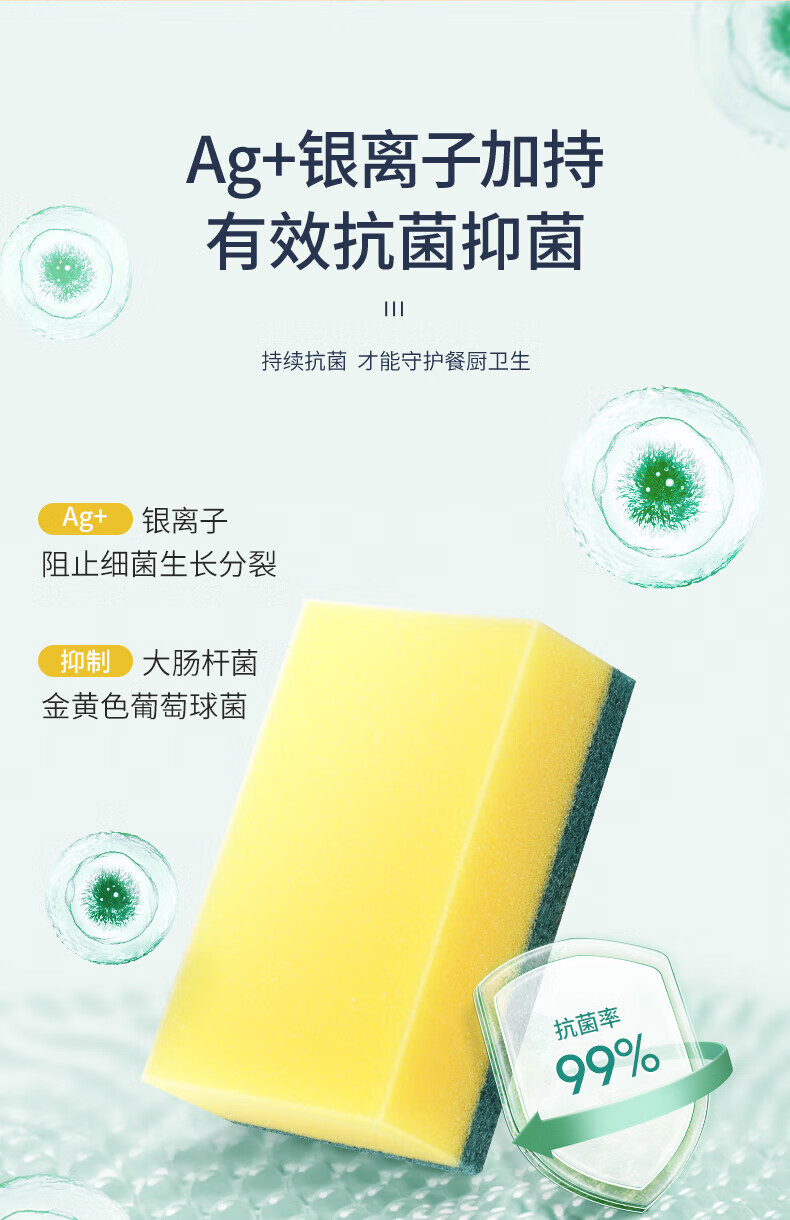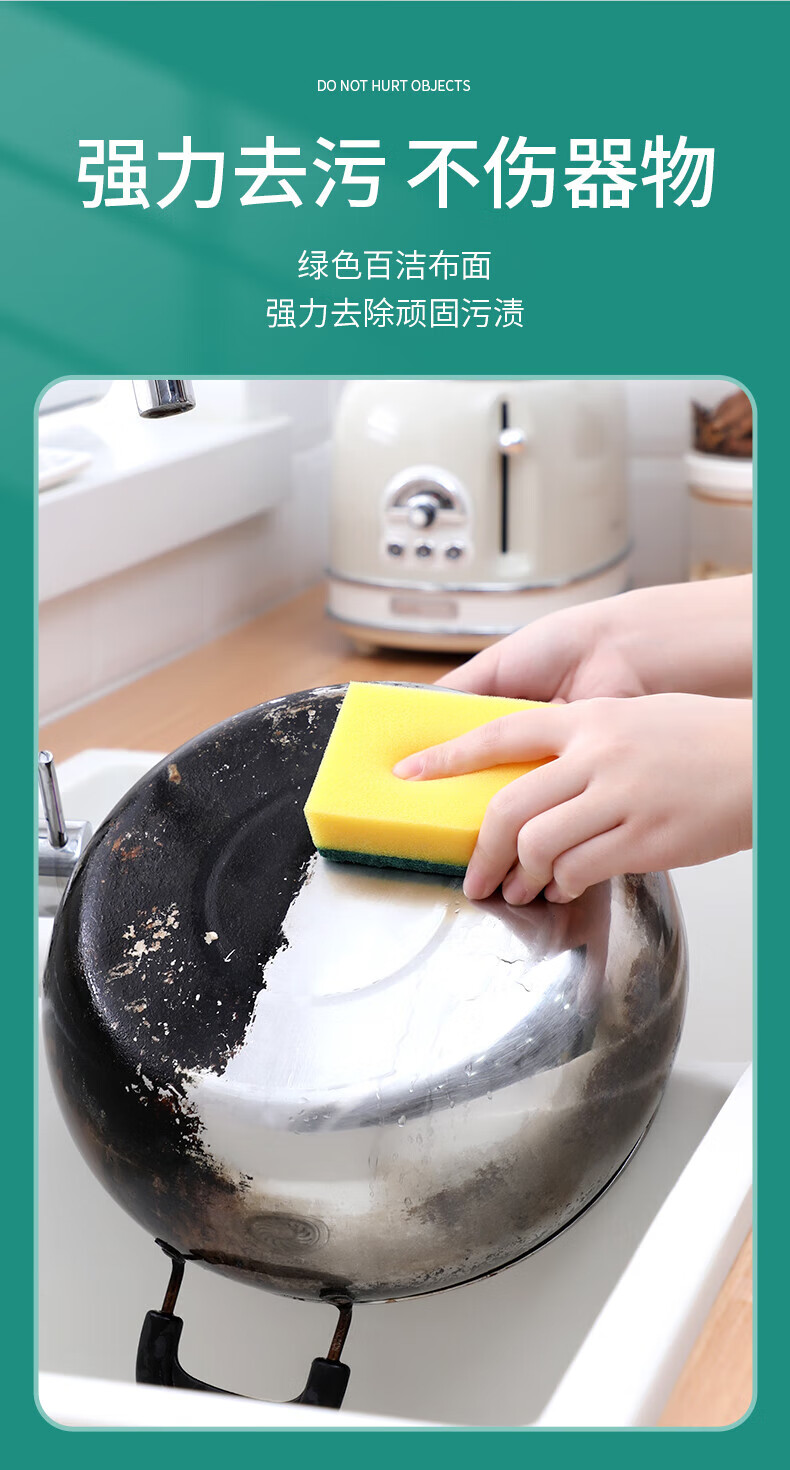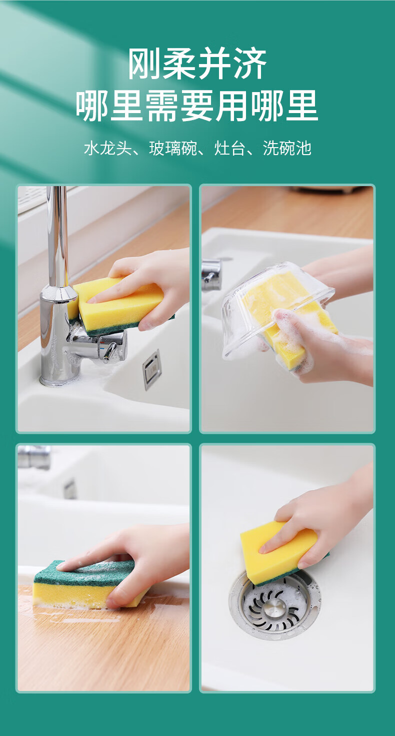 美丽雅海绵百洁布 多用途吸水抹布厨房洗碗布去污强吸油性抹布 U型4片