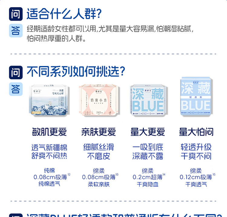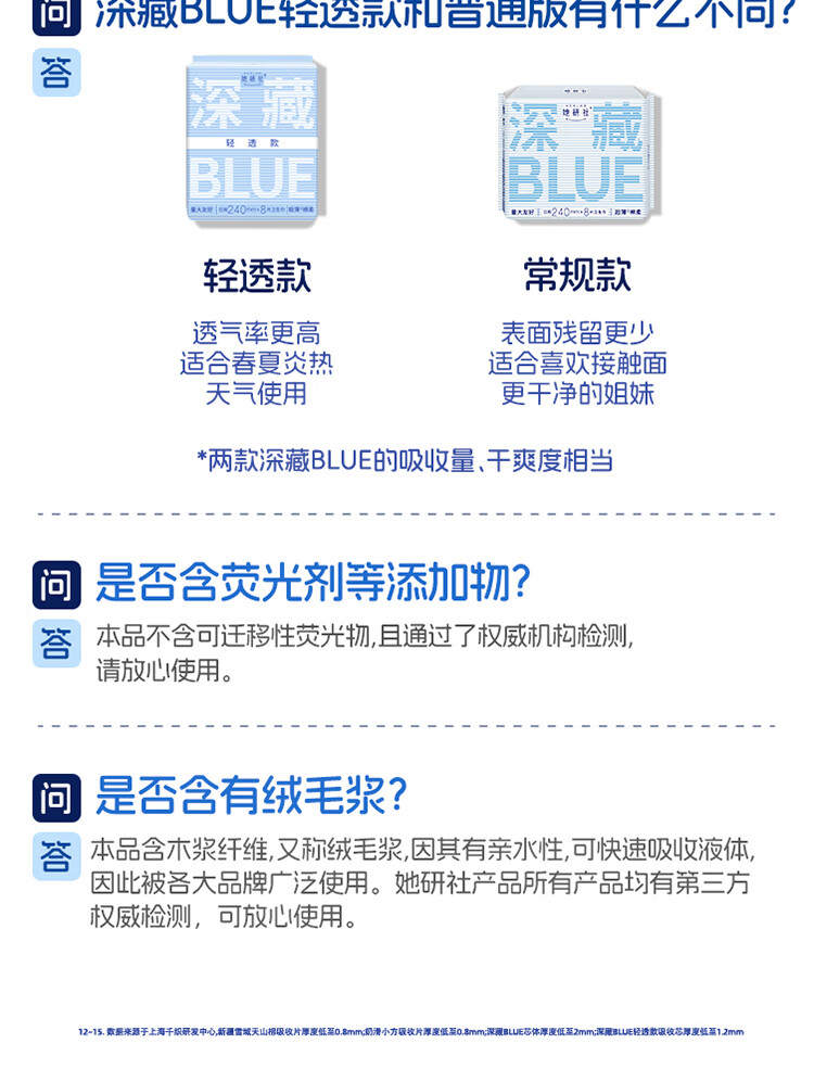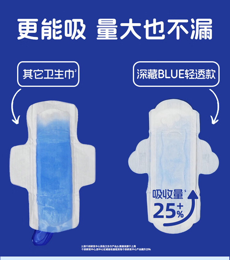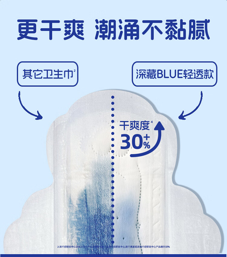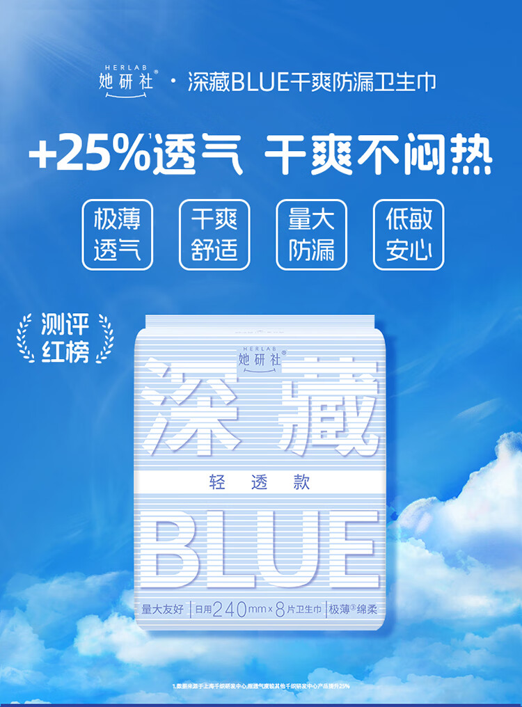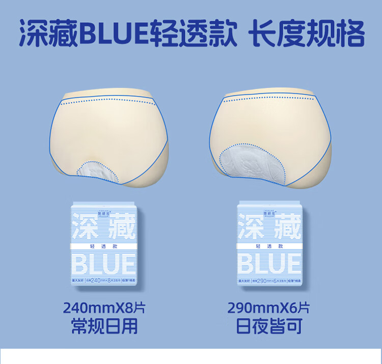 她研社日用卫生巾 深藏blue轻透版极薄无感干爽不粘细腻柔软透气姨妈巾 日用组合 240mm 32片