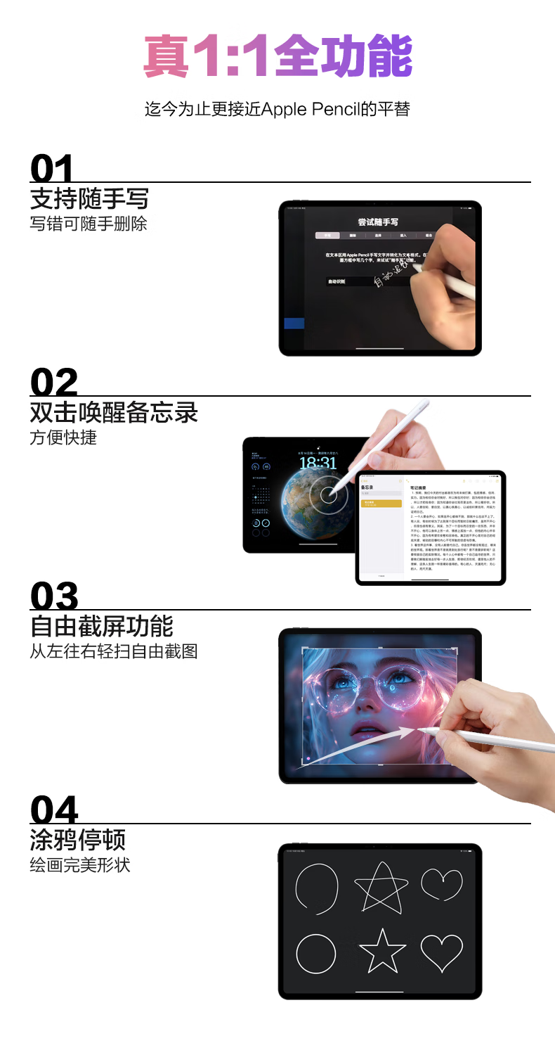 心趣【MFI认证】适用苹果电容笔apple pencil二代触控防误触一代ipad手写笔pro平板air4/5三代触屏绘画 官配三代【顶配版】 防误触不断触 倾斜压感
