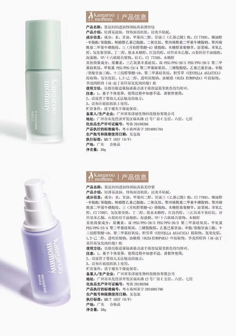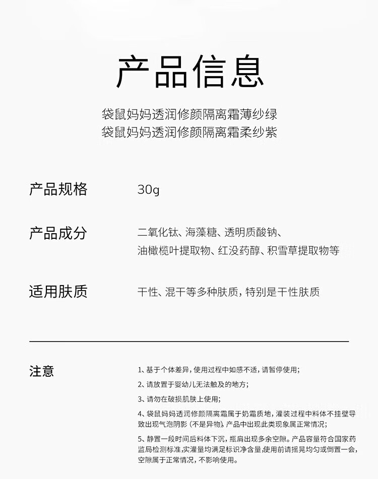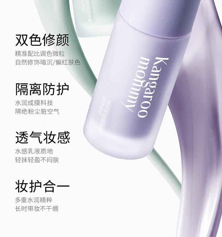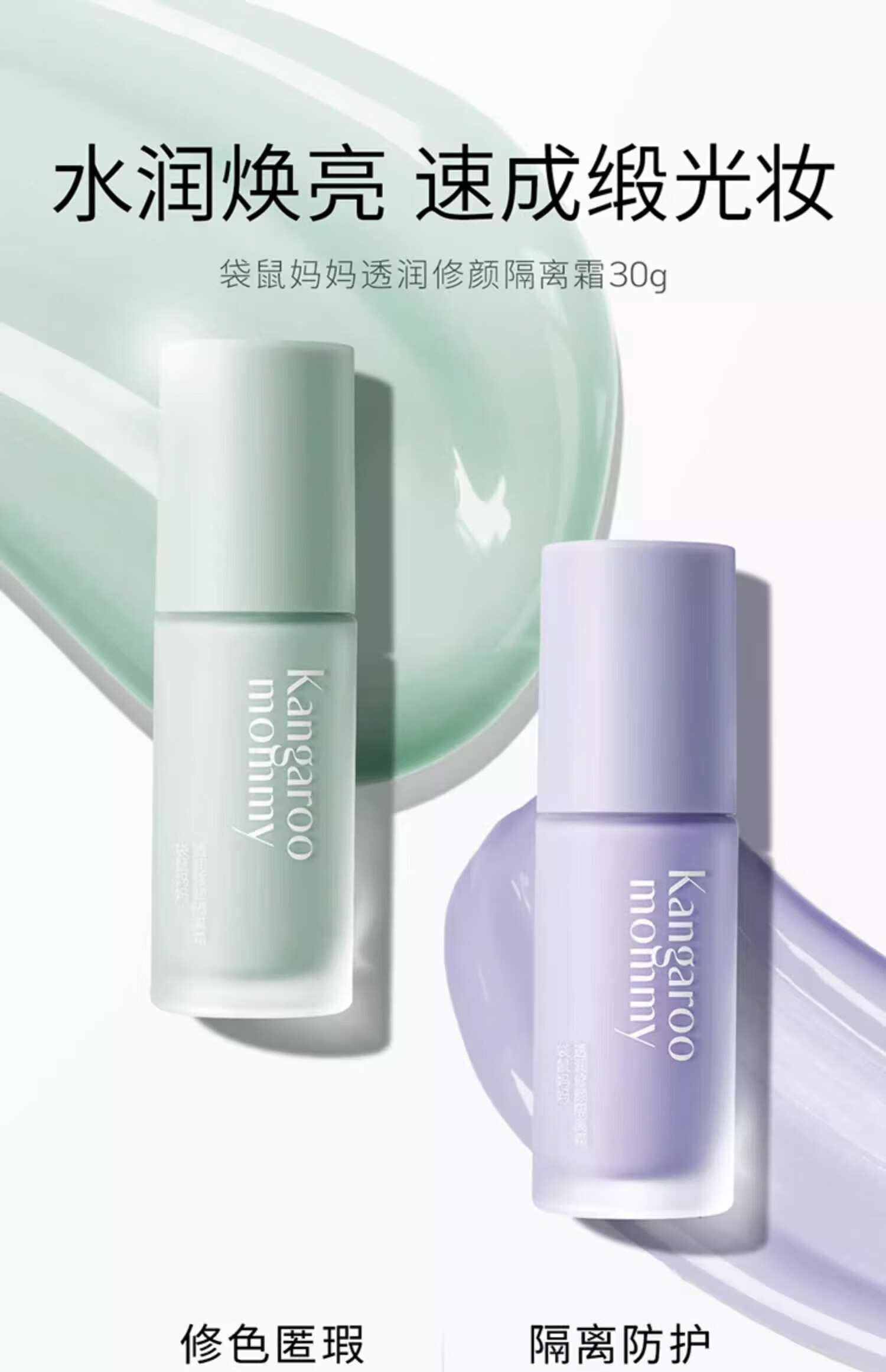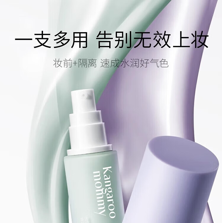 袋鼠妈妈(Kangaroo Mommy)准孕妇隔离霜遮瑕保湿隔离提亮肤色化妆品素颜修颜彩妆透润妆前透 【单瓶装】柔纱紫30g