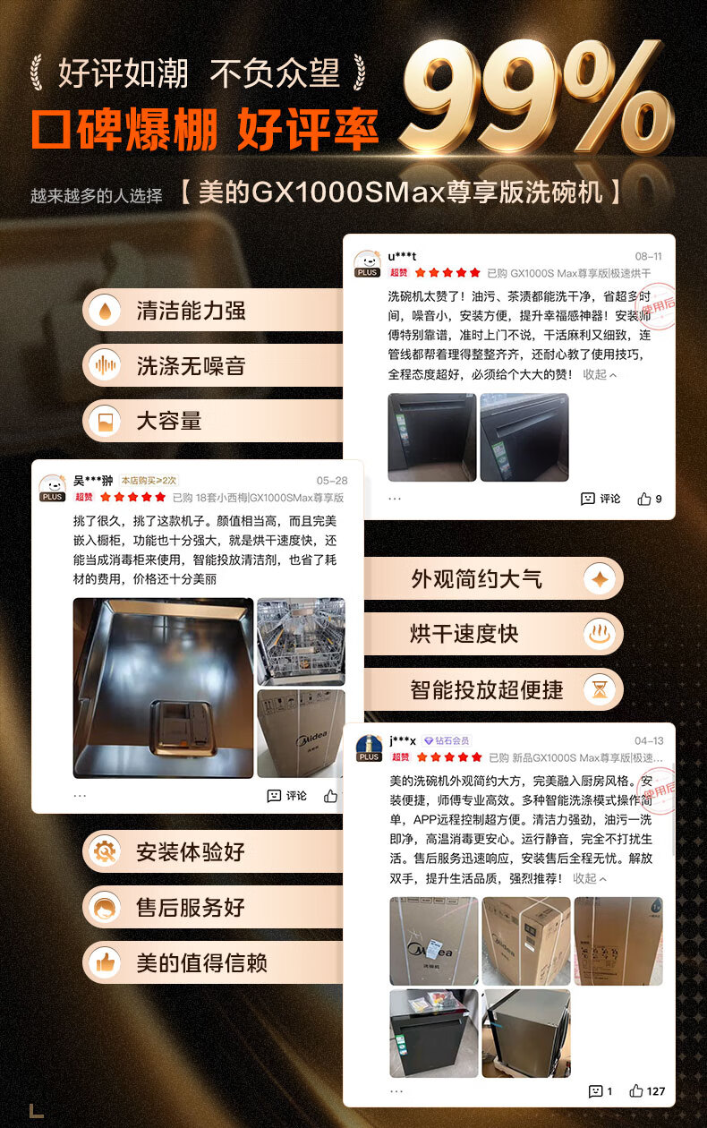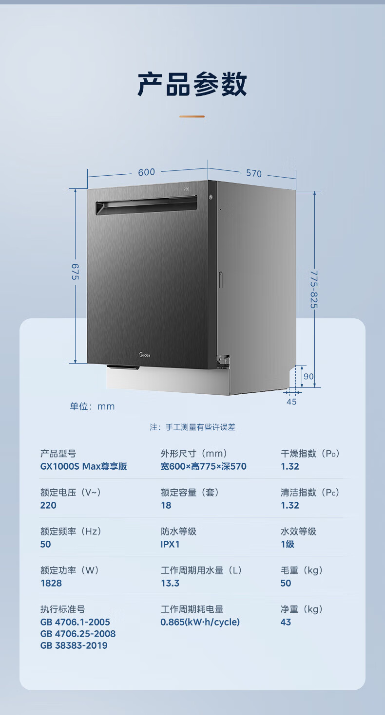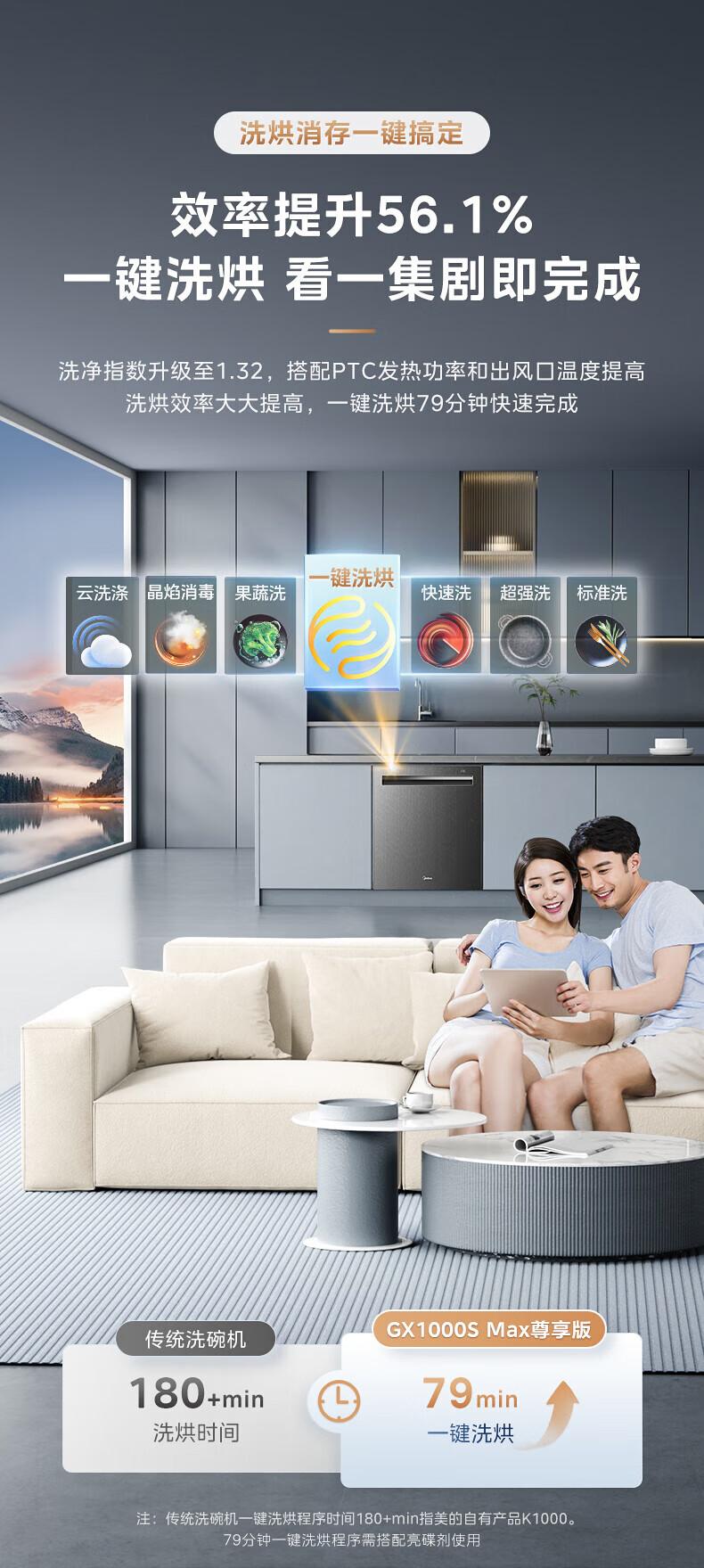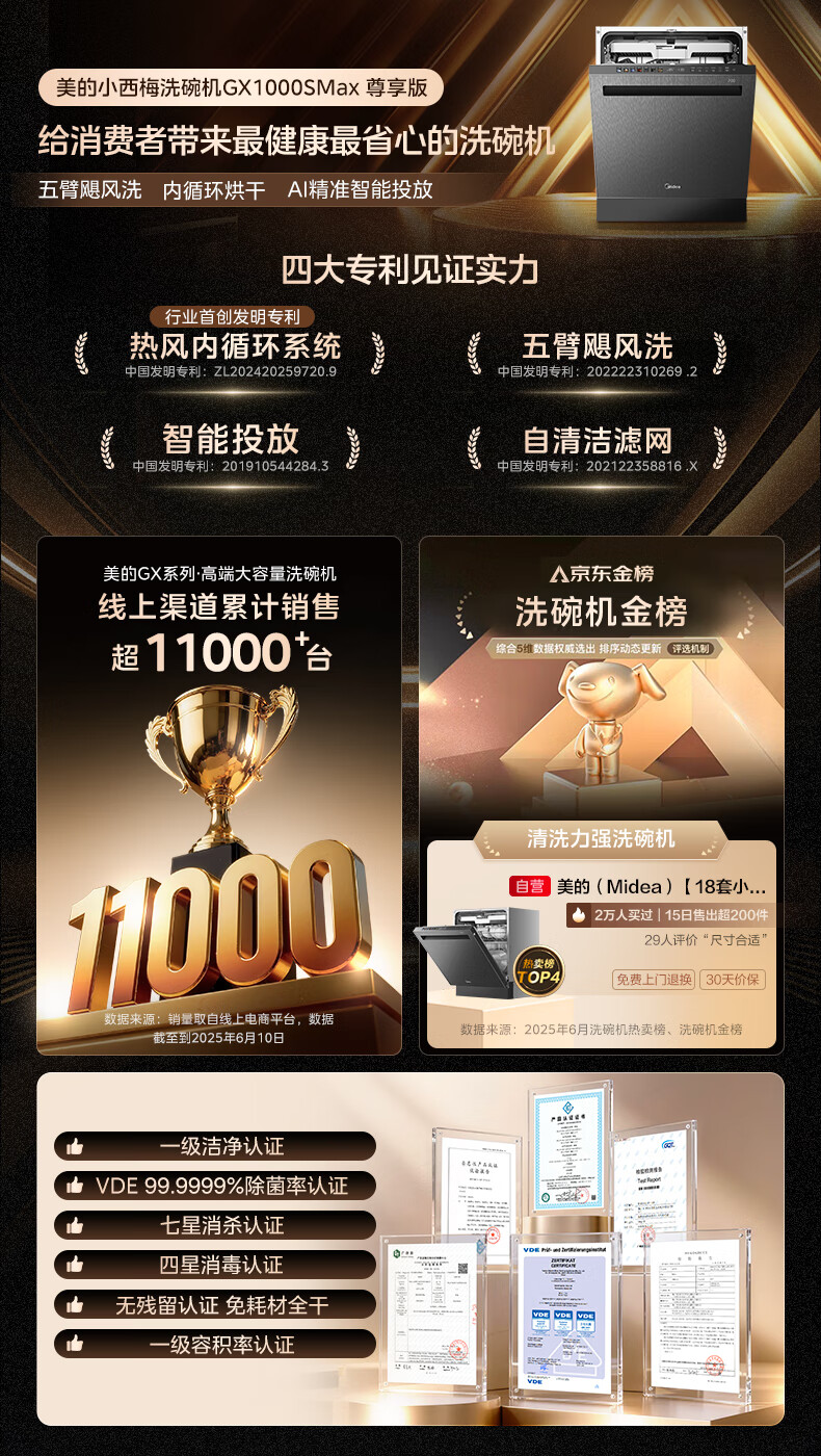 美的(Midea)【18套小西梅洗碗机】GX1000SMax尊享版嵌入式洗碗机智能投放变频五臂飓风洗内循环烘干洗消一体