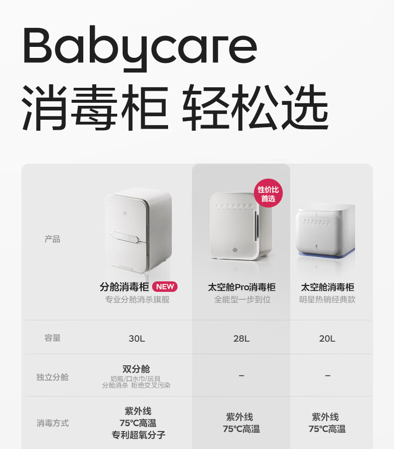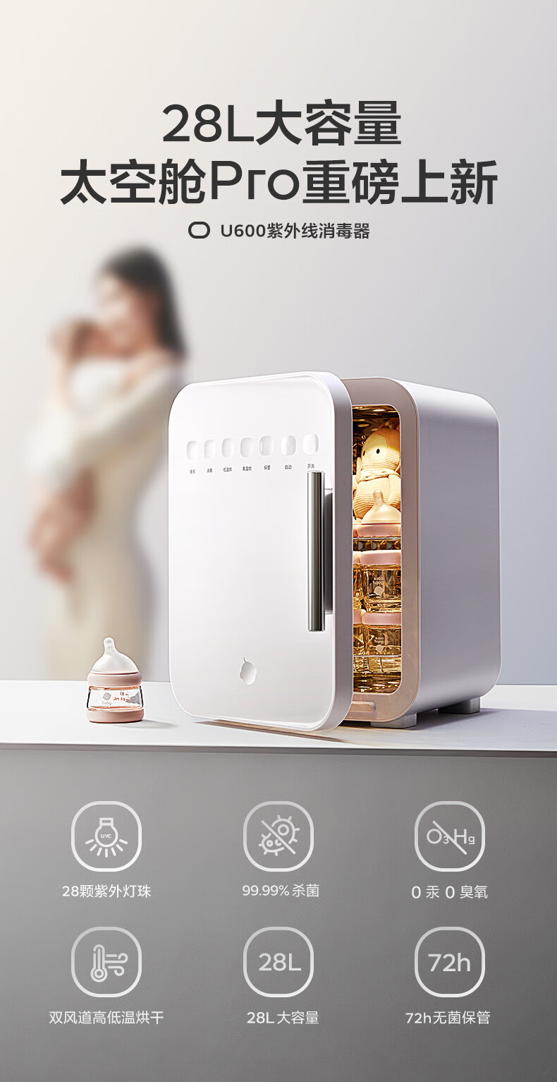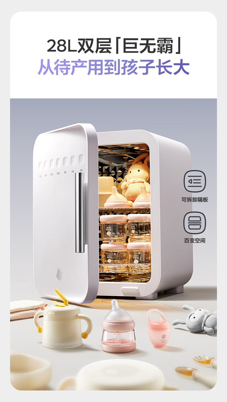 babycare消毒柜婴儿奶瓶消毒器烘干一体机紫外线消毒柜家用28颗灯珠+28L