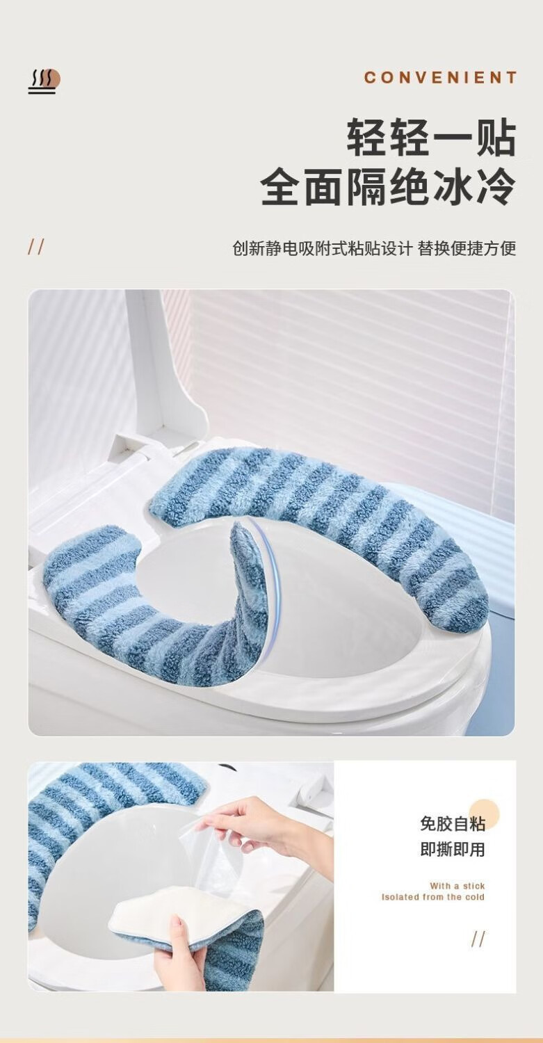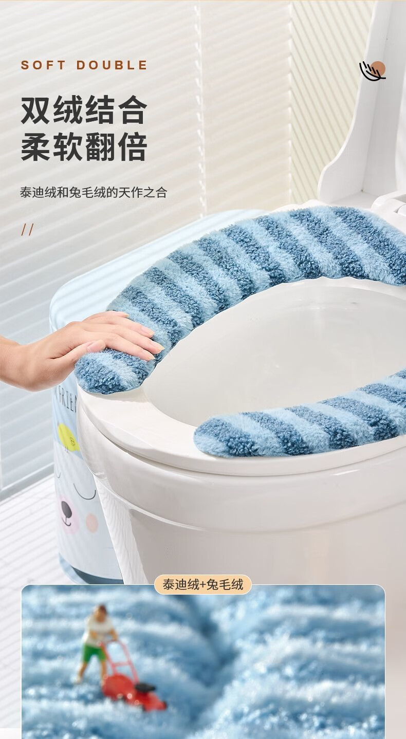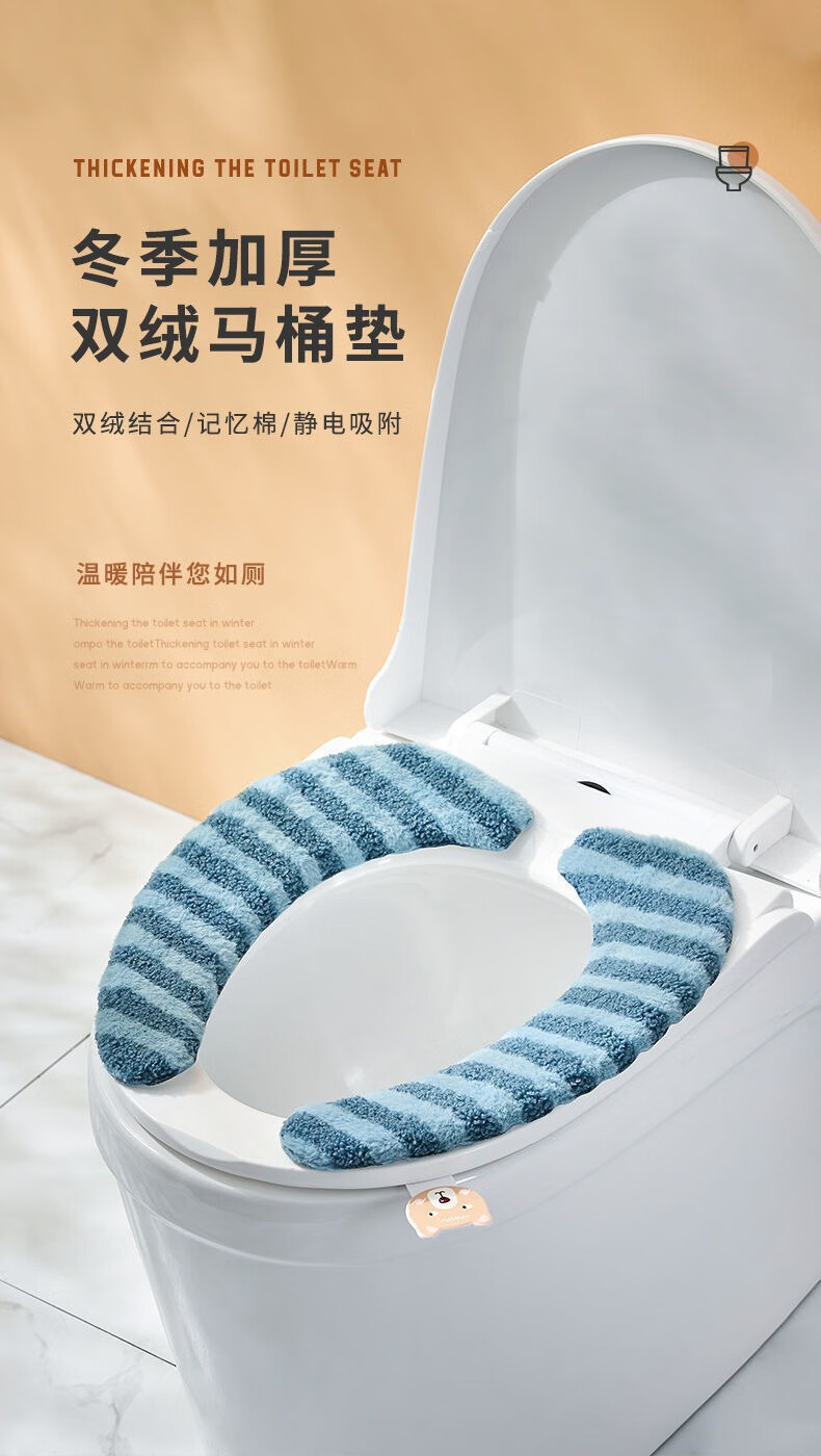 冬季马桶垫粘贴式加厚坐垫家用坐便套秋冬防水大号垫新款坐垫 条纹款加绒【1对装】蓝色+加厚