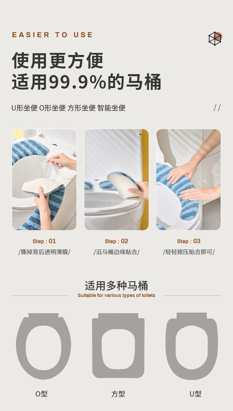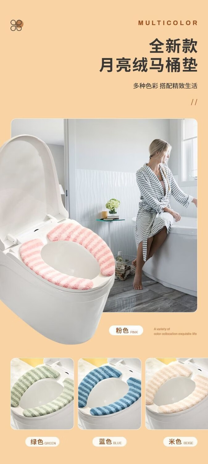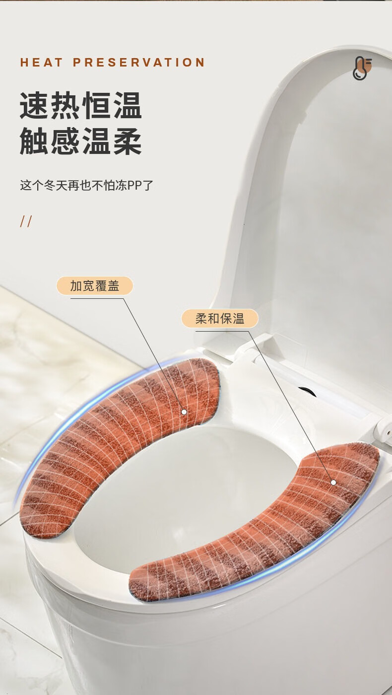 冬季马桶垫粘贴式加厚坐垫家用坐便套秋冬防水大号垫新款坐垫 条纹款加绒【1对装】蓝色+加厚