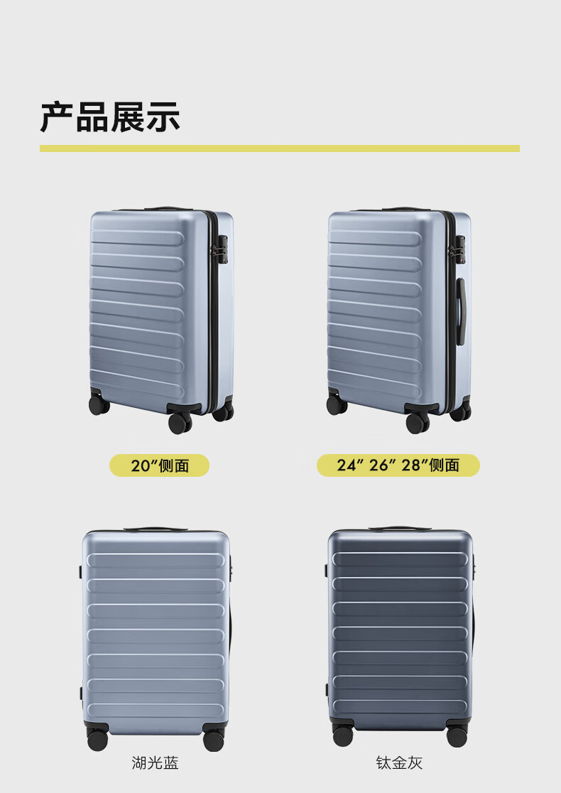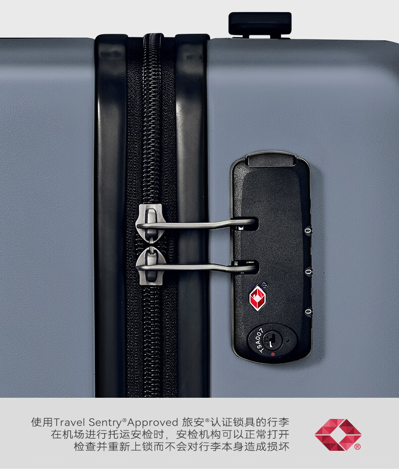 90分行李箱20英寸莱茵河经典款 拉杆箱登机旅行箱万向轮密码箱暗夜黑