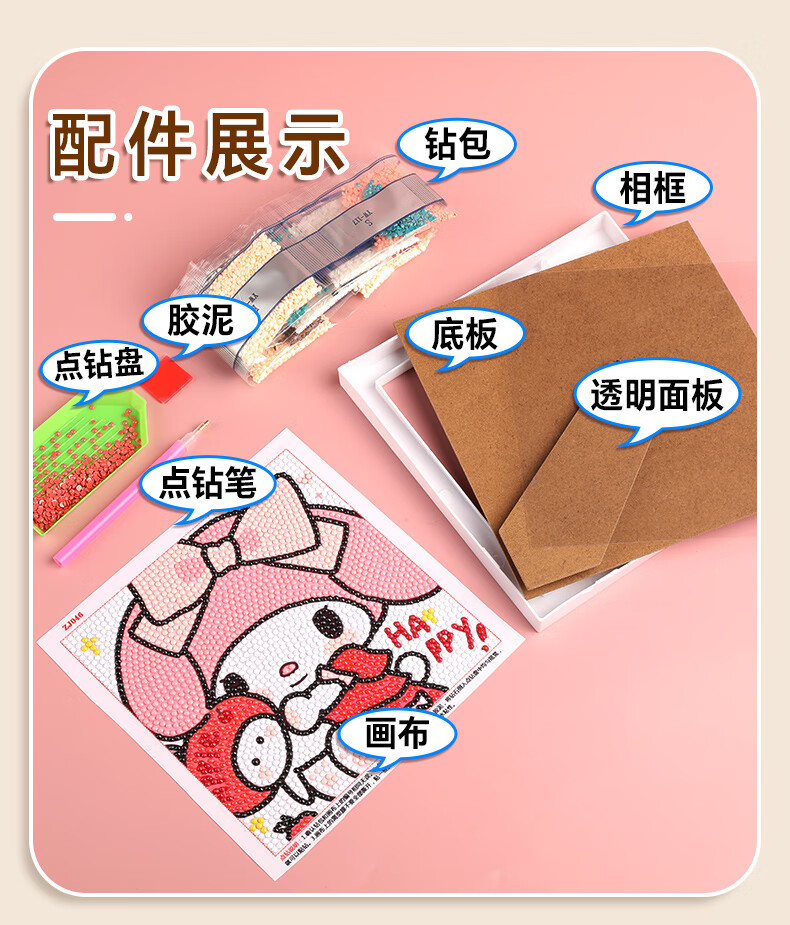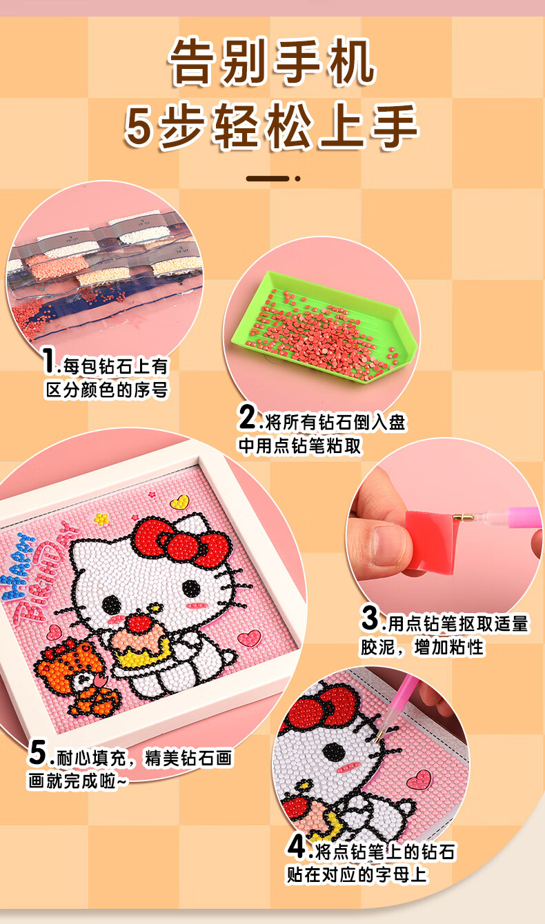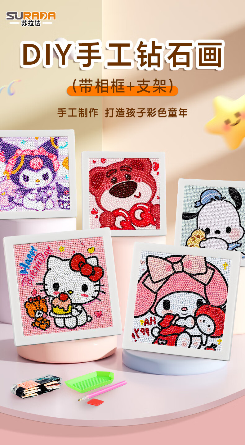 苏拉达(Surada)钻石画diy钻石画带相框钻石画手工自己贴儿童钻石画套装立体钻贴画钻石画KT猫材料包DIY521