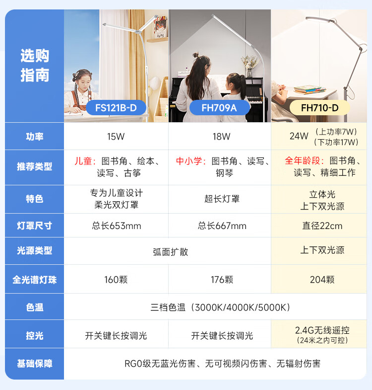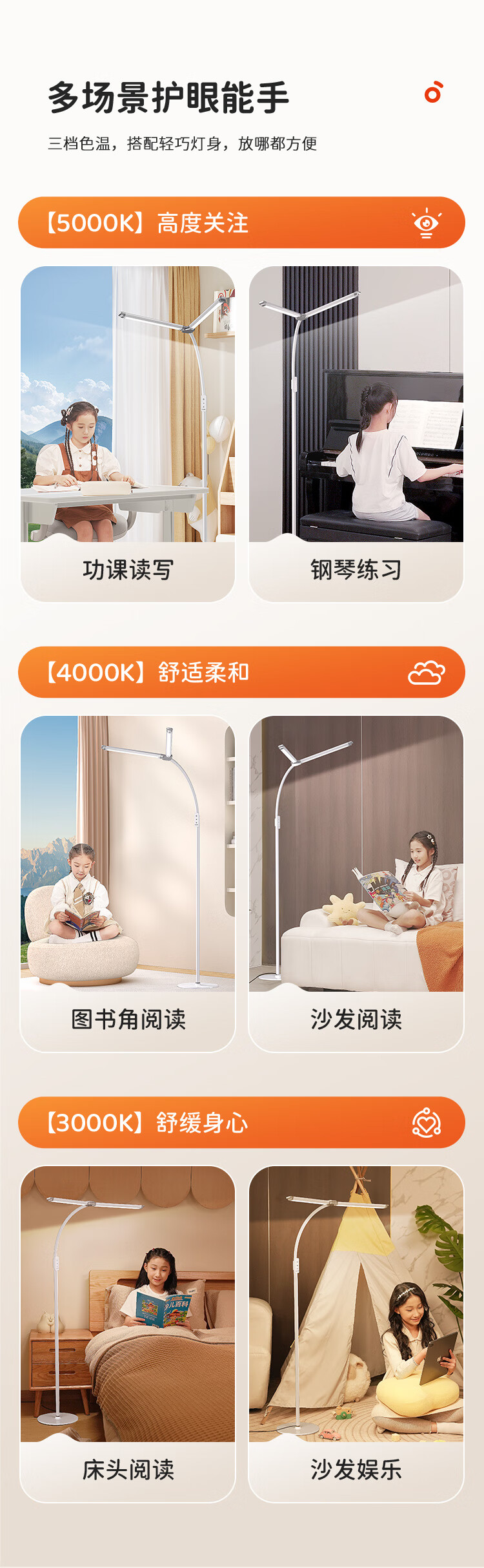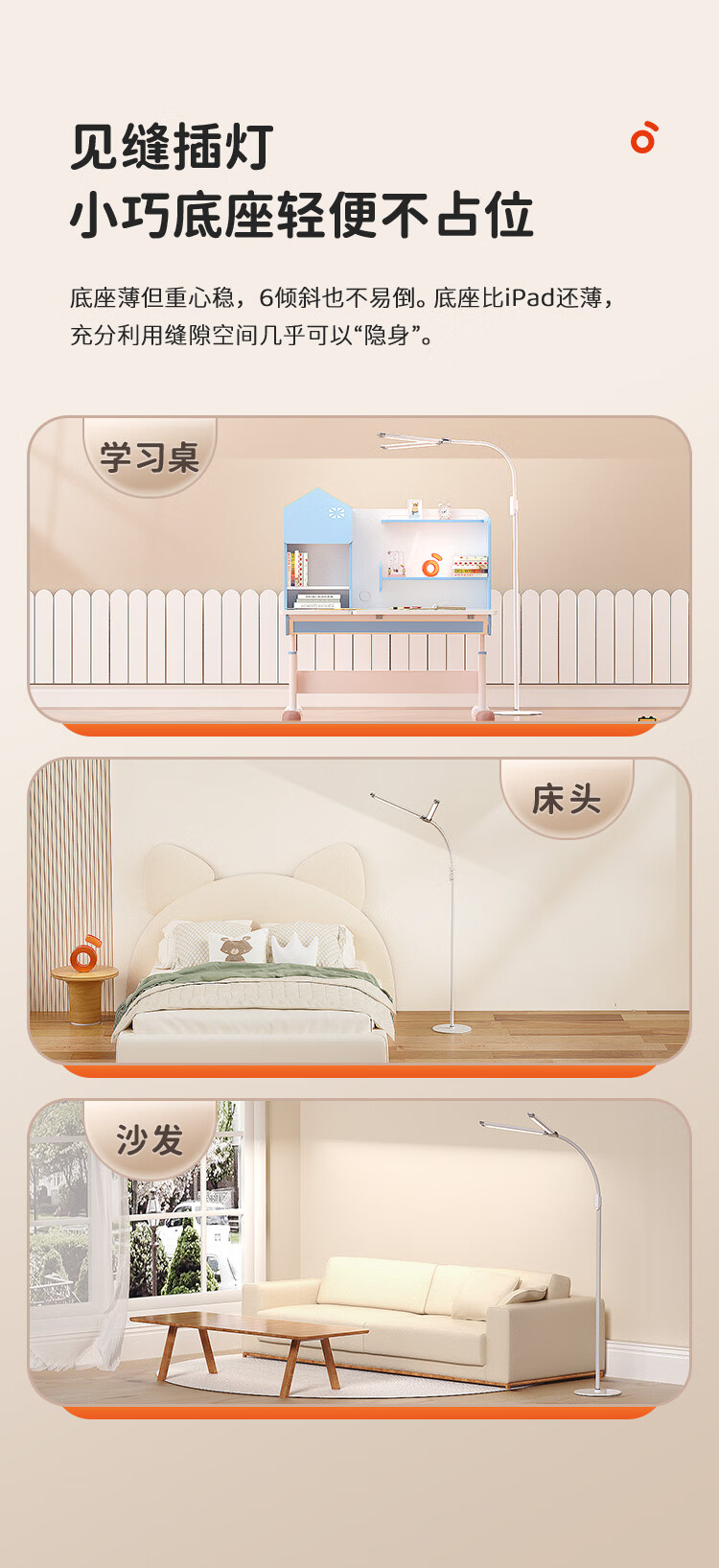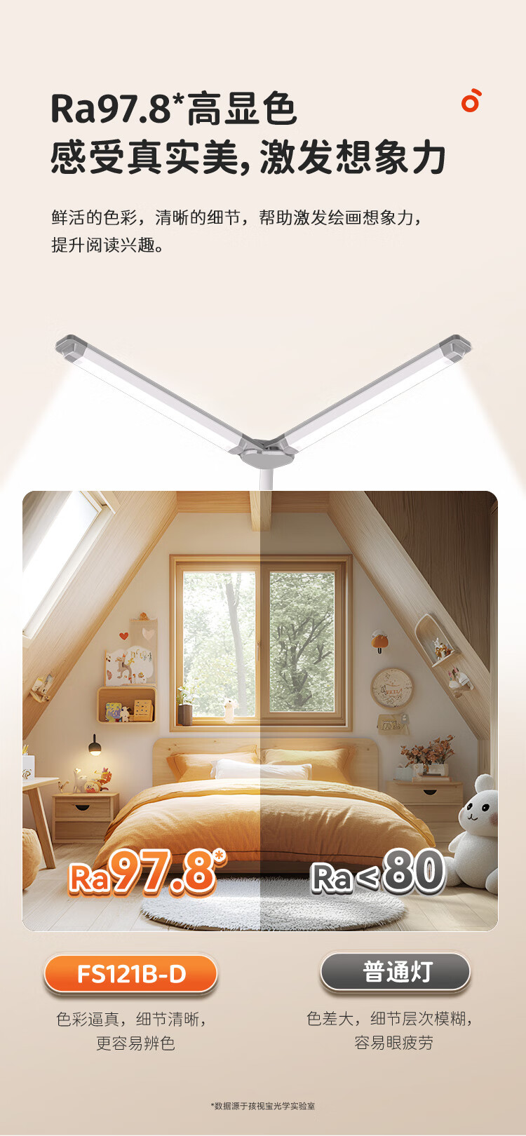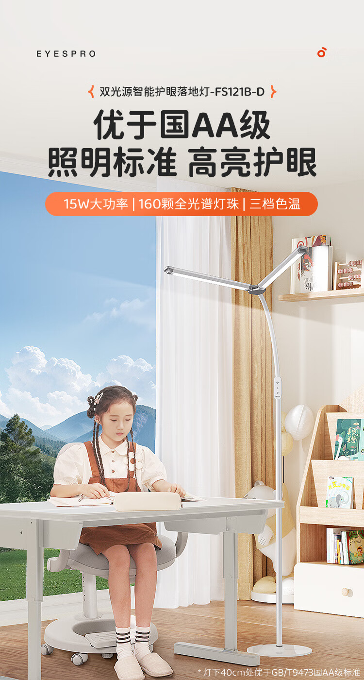 孩视宝全光谱led护眼落地台灯儿童学生钢琴灯客厅卧室立式阅读床头台灯 【超长66.7CM光源】FH709A