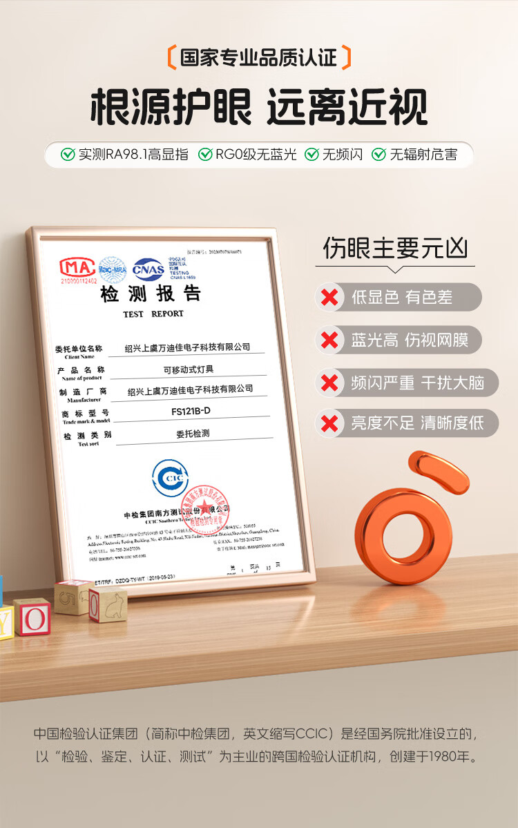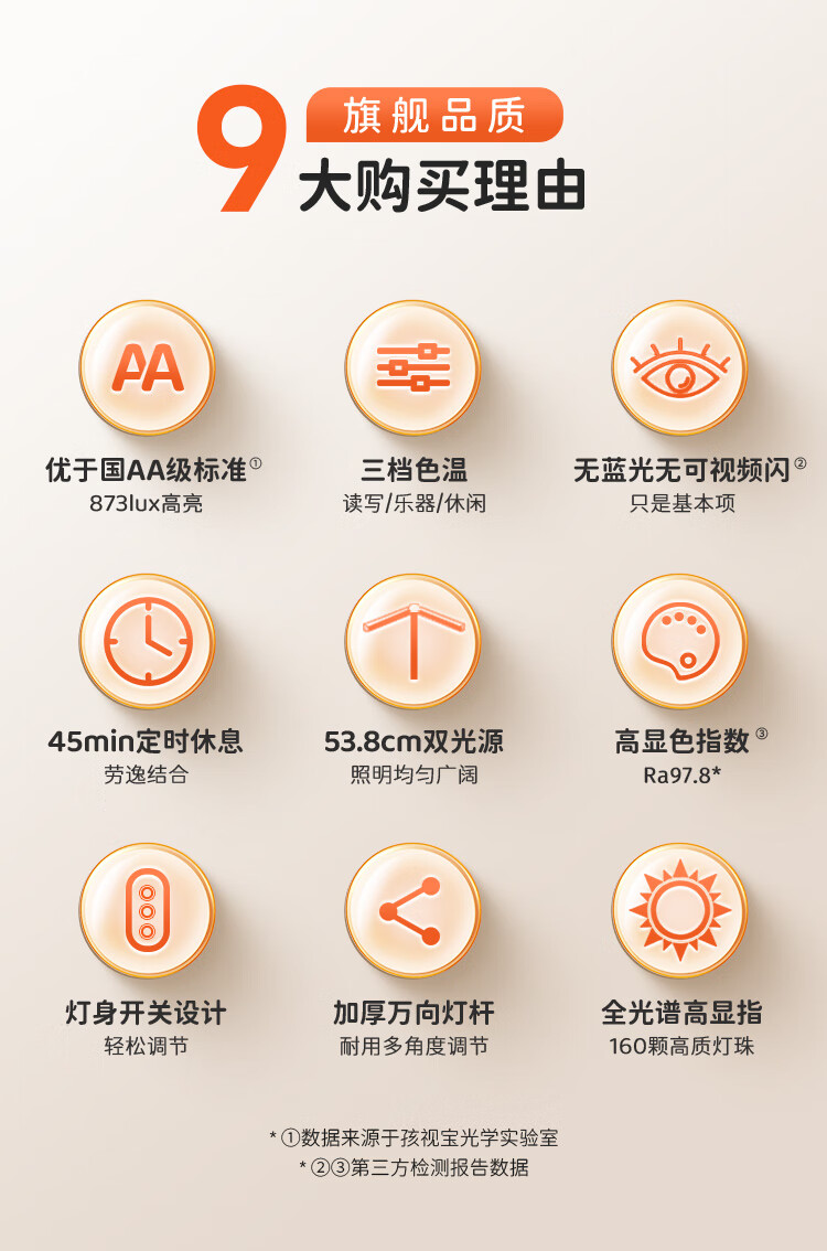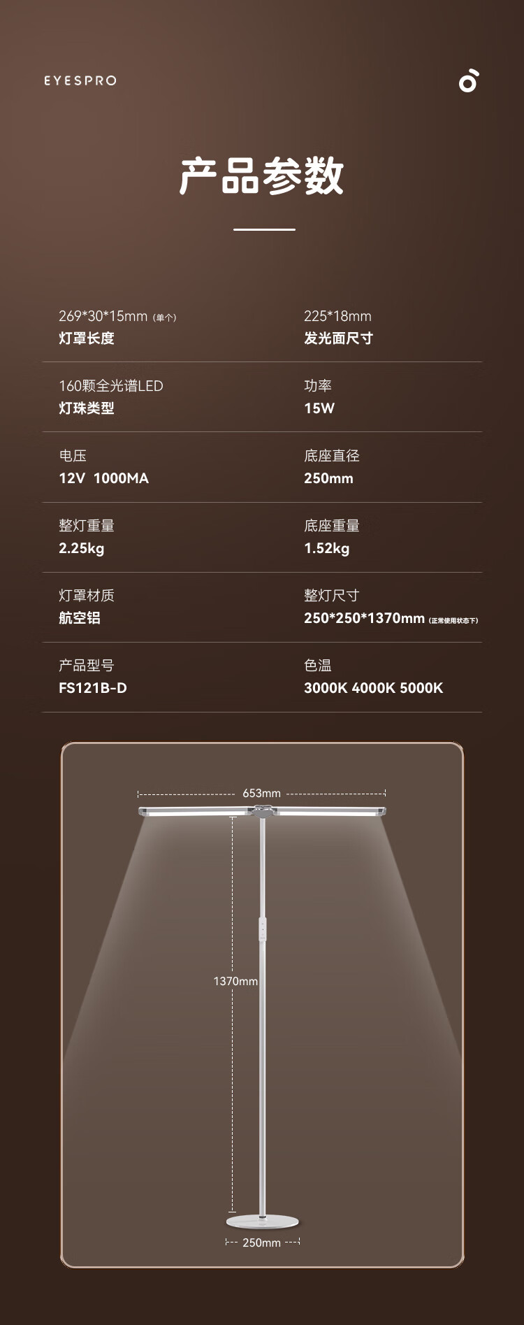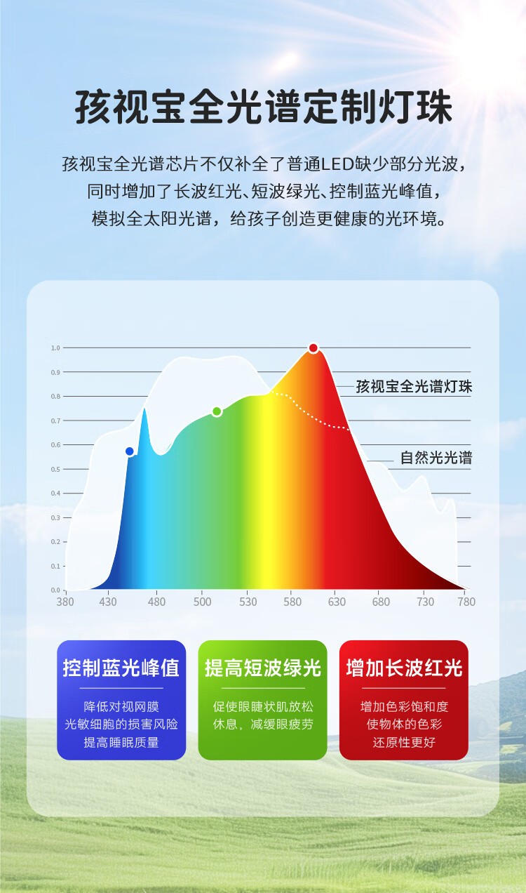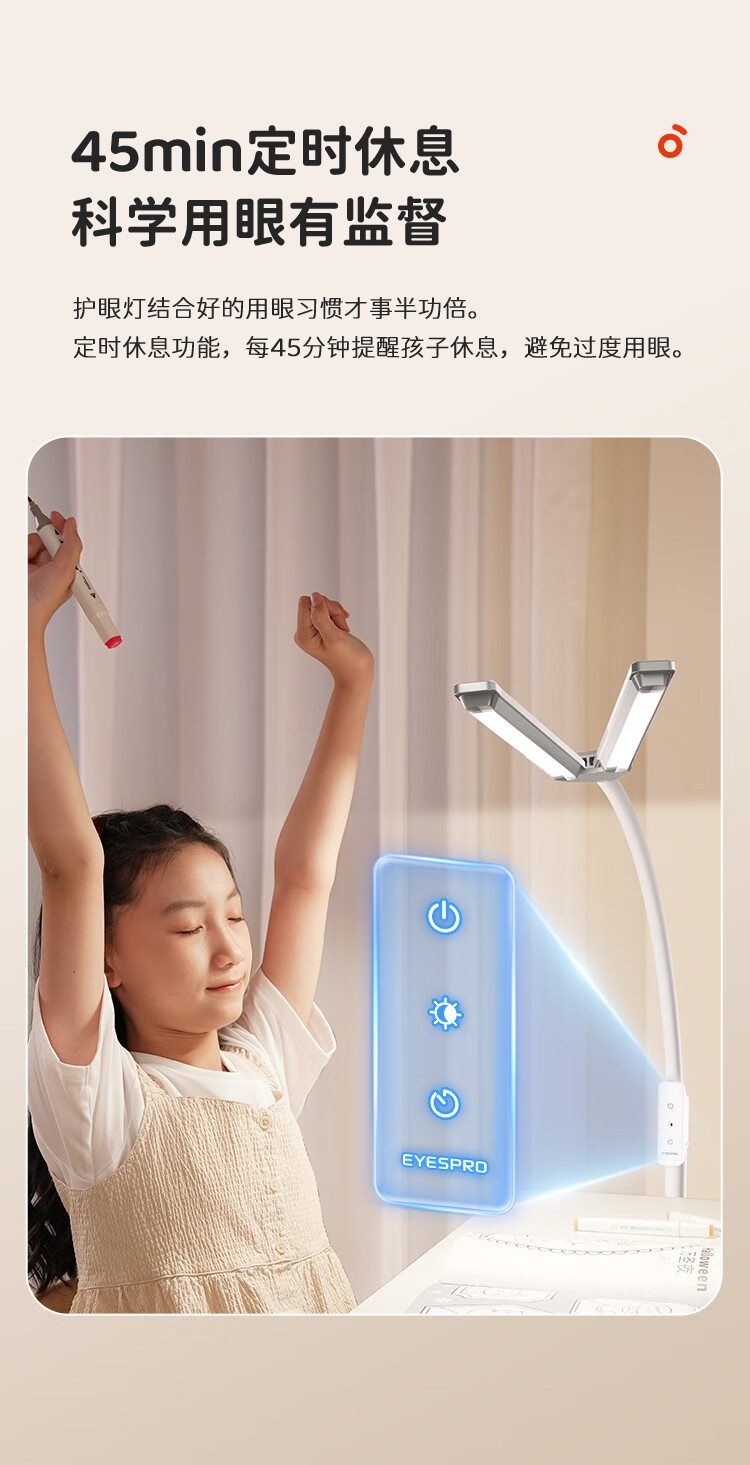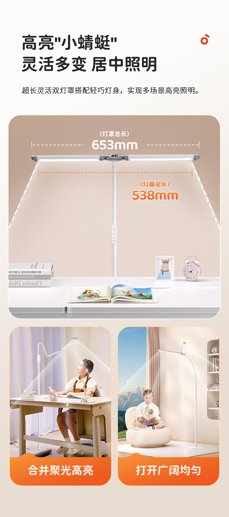 孩视宝全光谱led护眼落地台灯儿童学生钢琴灯客厅卧室立式阅读床头台灯 【超长66.7CM光源】FH709A