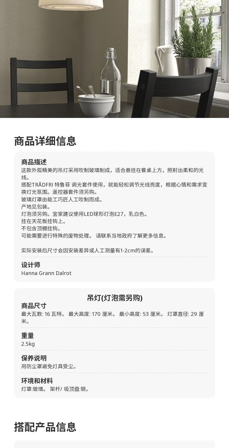 宜家(IKEA)MUDDERVERK姆德维克吊灯餐厅吊灯吧台岛台茶室餐桌灯具 吊灯(灯泡需另购)