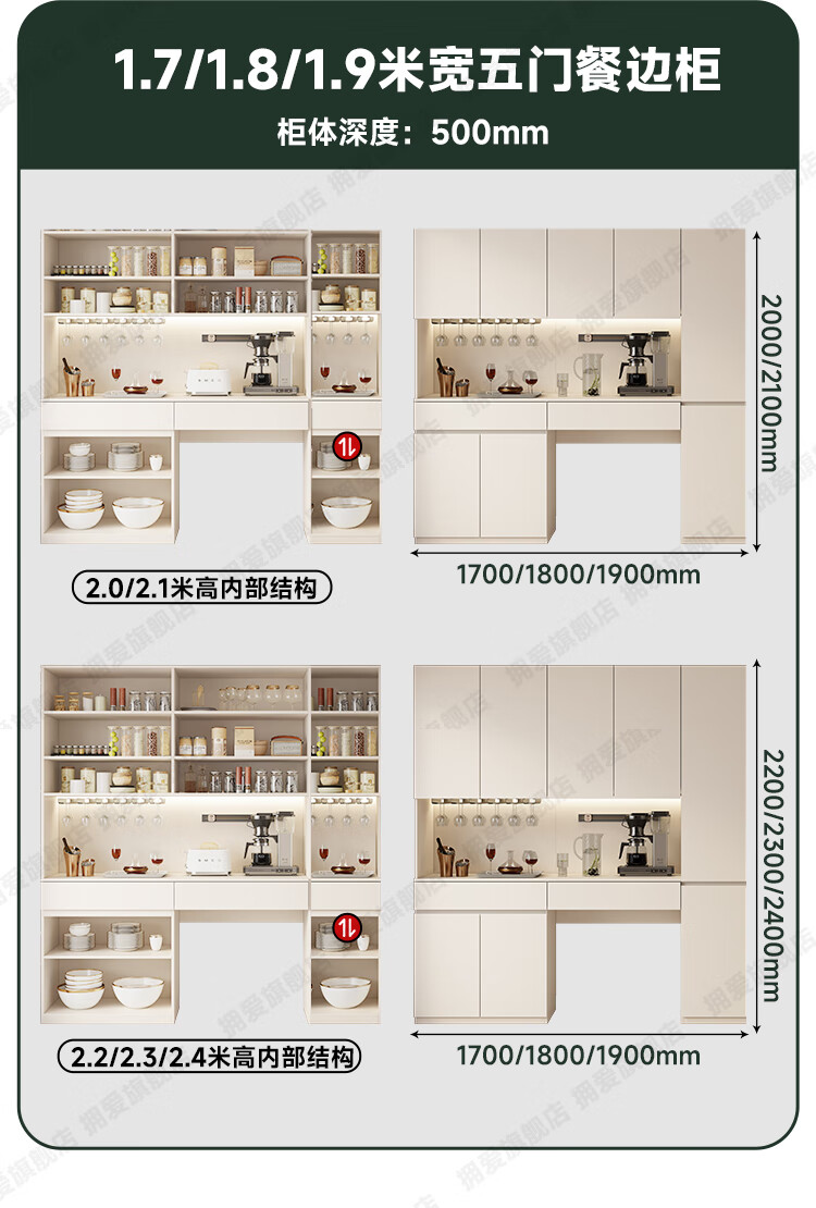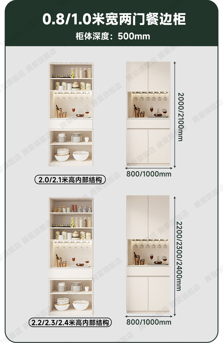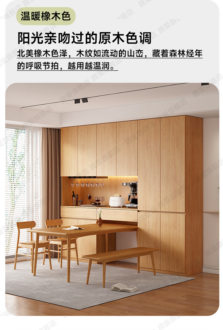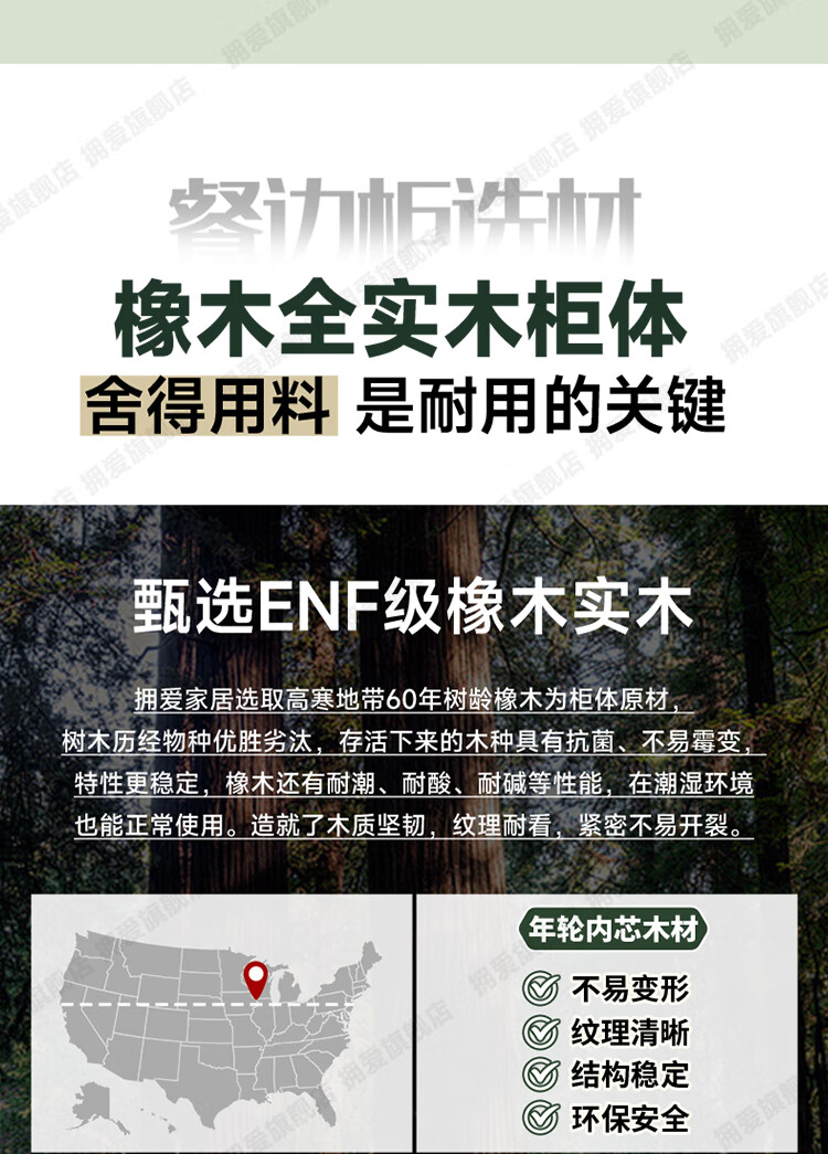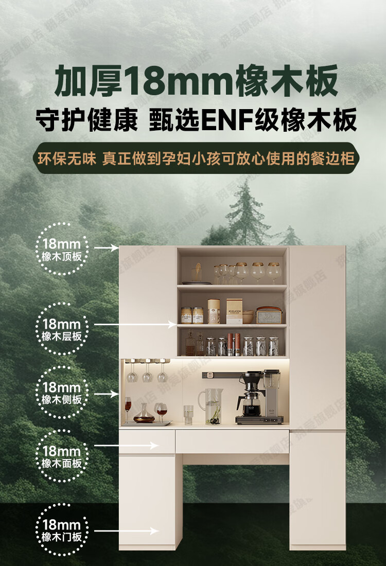 拥爱ENF母婴级定制实木餐边柜一体靠墙客厅茶水柜2025新款可嵌入餐桌 0.8*2.0米高【两门餐边柜】 ENF级全实木
