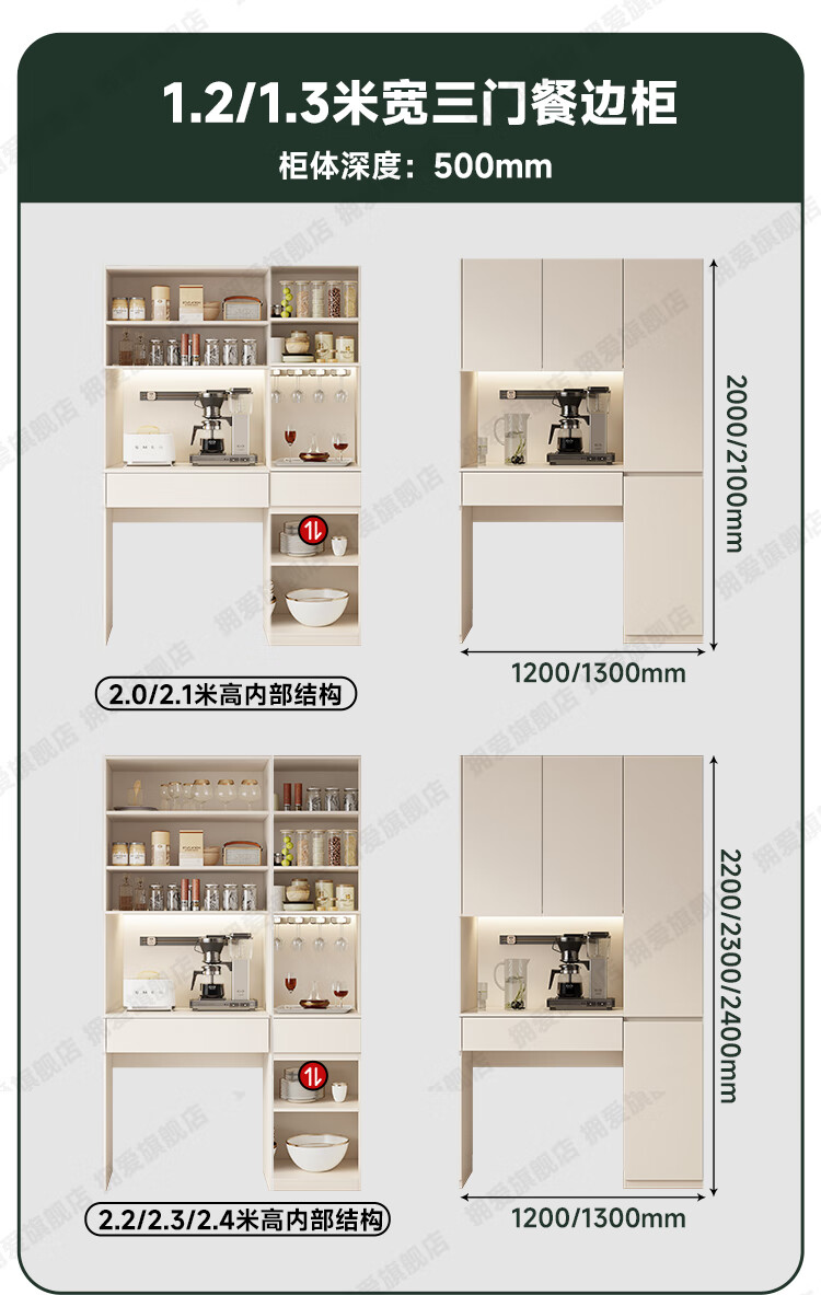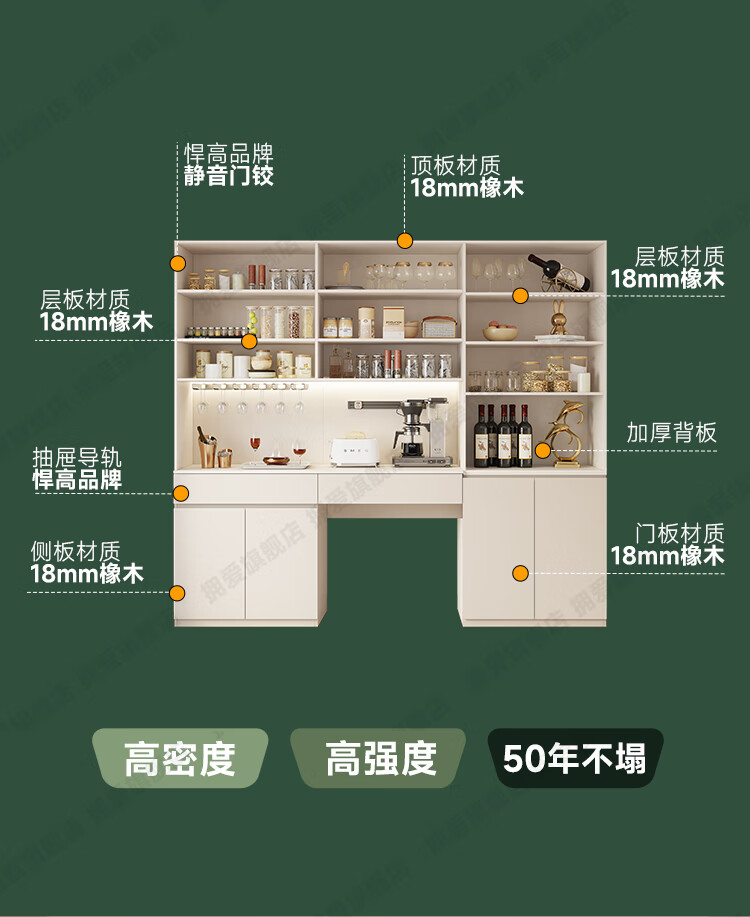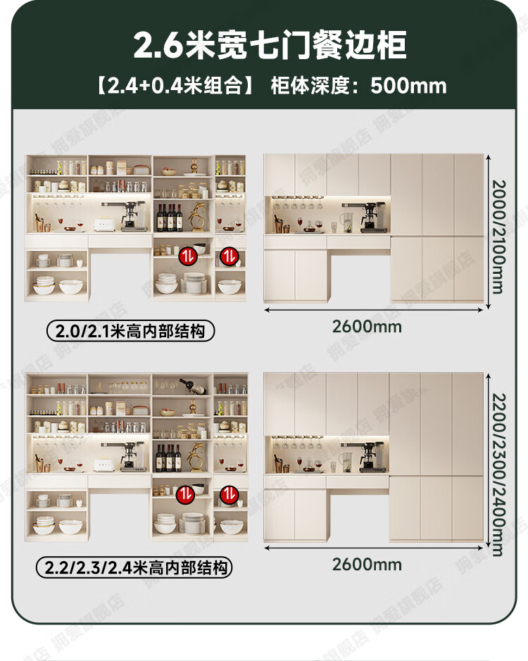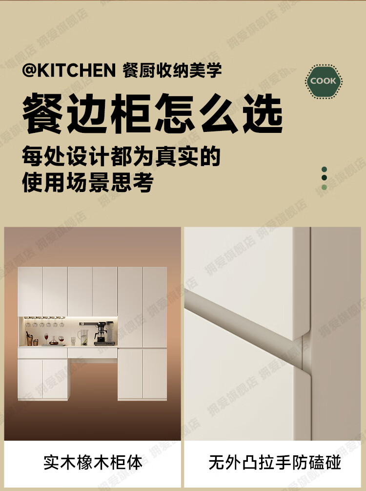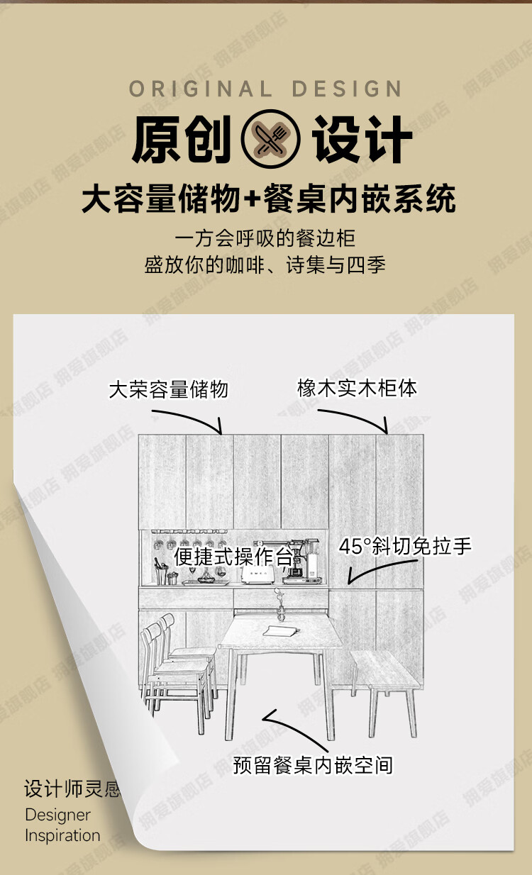拥爱ENF母婴级定制实木餐边柜一体靠墙客厅茶水柜2025新款可嵌入餐桌 0.8*2.0米高【两门餐边柜】 ENF级全实木