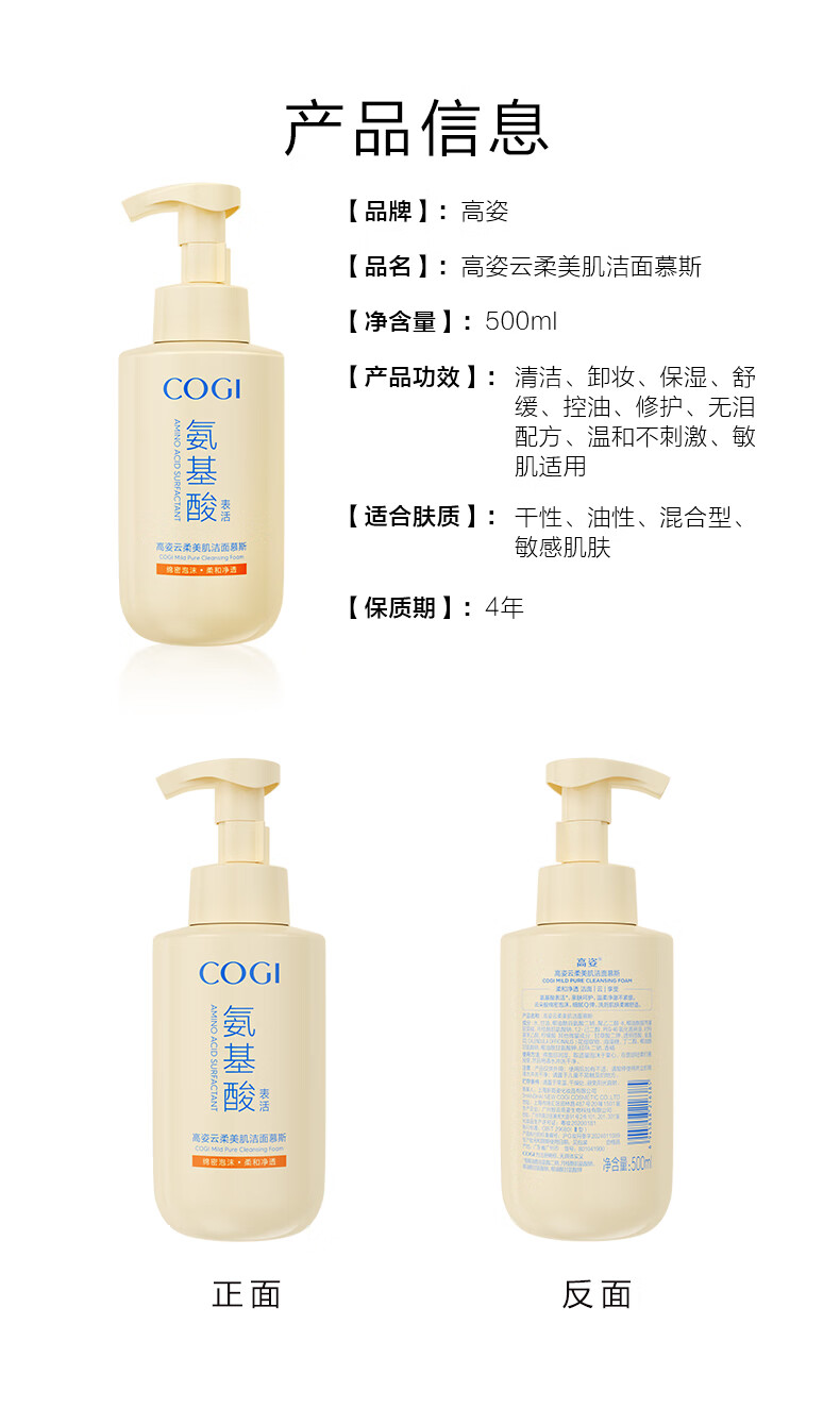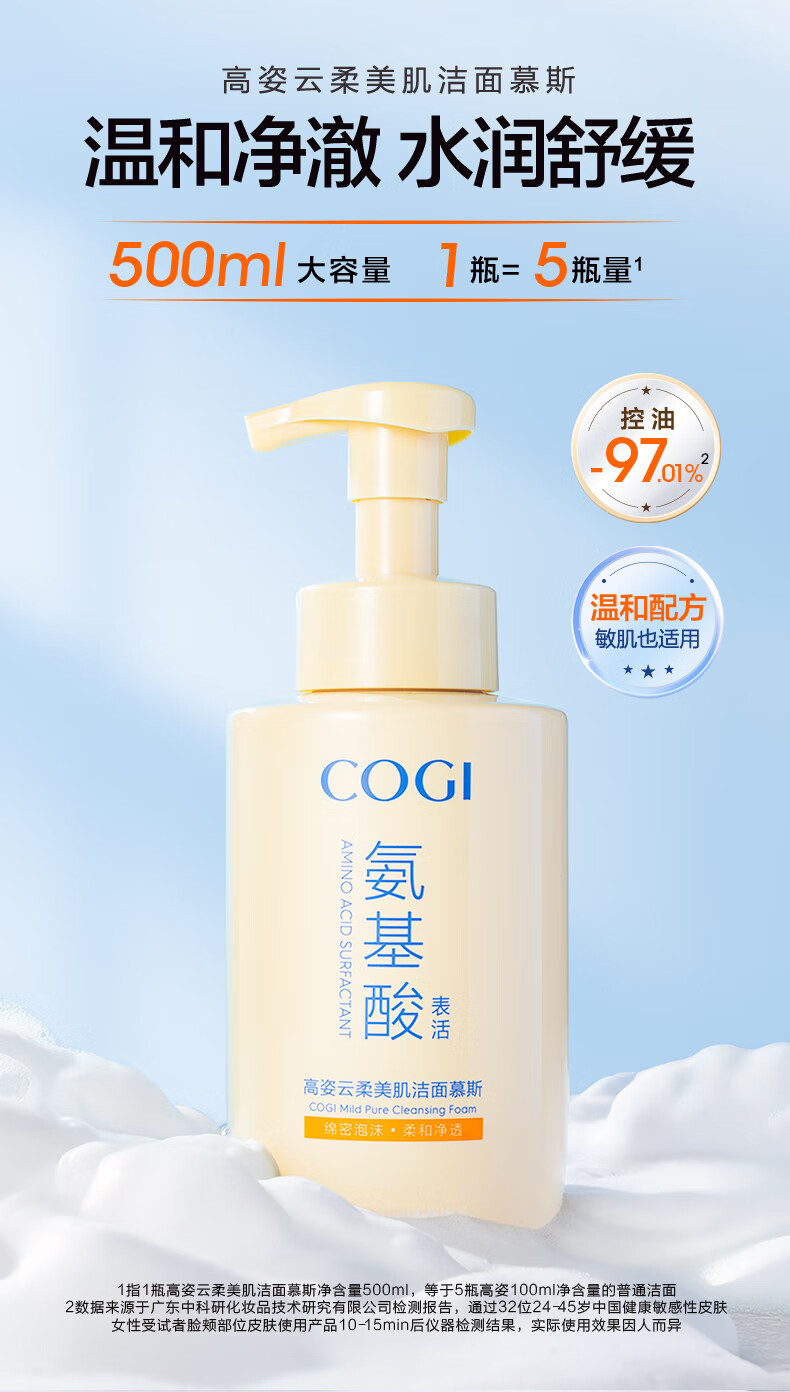 高姿【热门商品】洗面奶男女士氨基酸表活泡沫慕斯清洁毛孔控油柔和