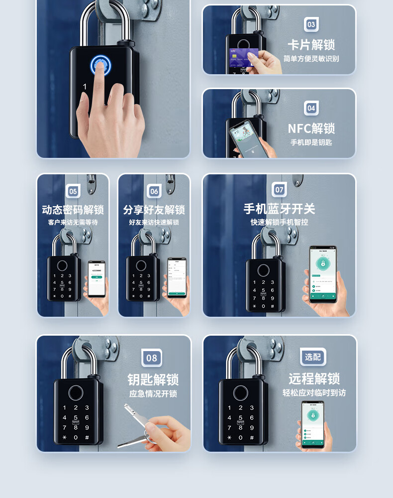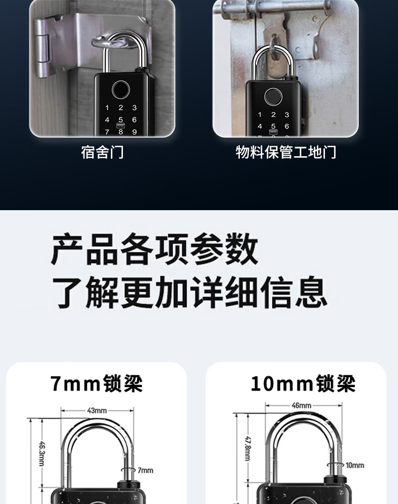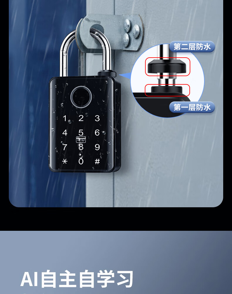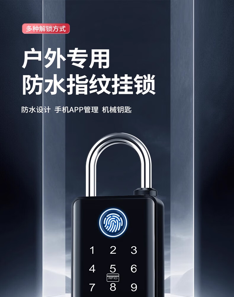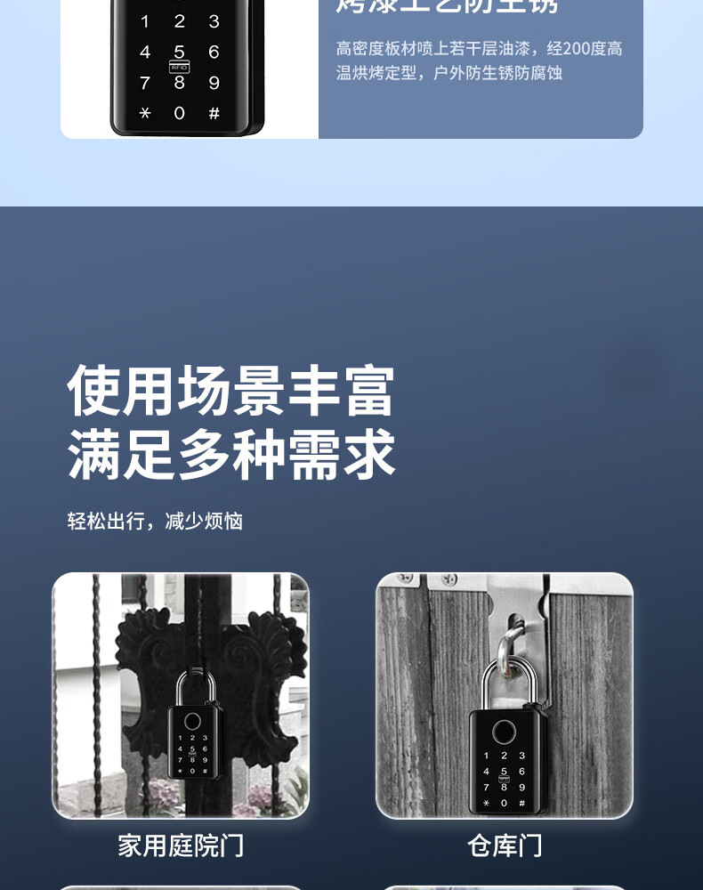 法雷斯顿 FALEISTON指纹密码挂锁户外防水远程庭院门智能锁仓库防盗大号电子锁带钥匙 10mm带钥匙联网版【指纹密码+手机+密码+NFC】远程开锁
