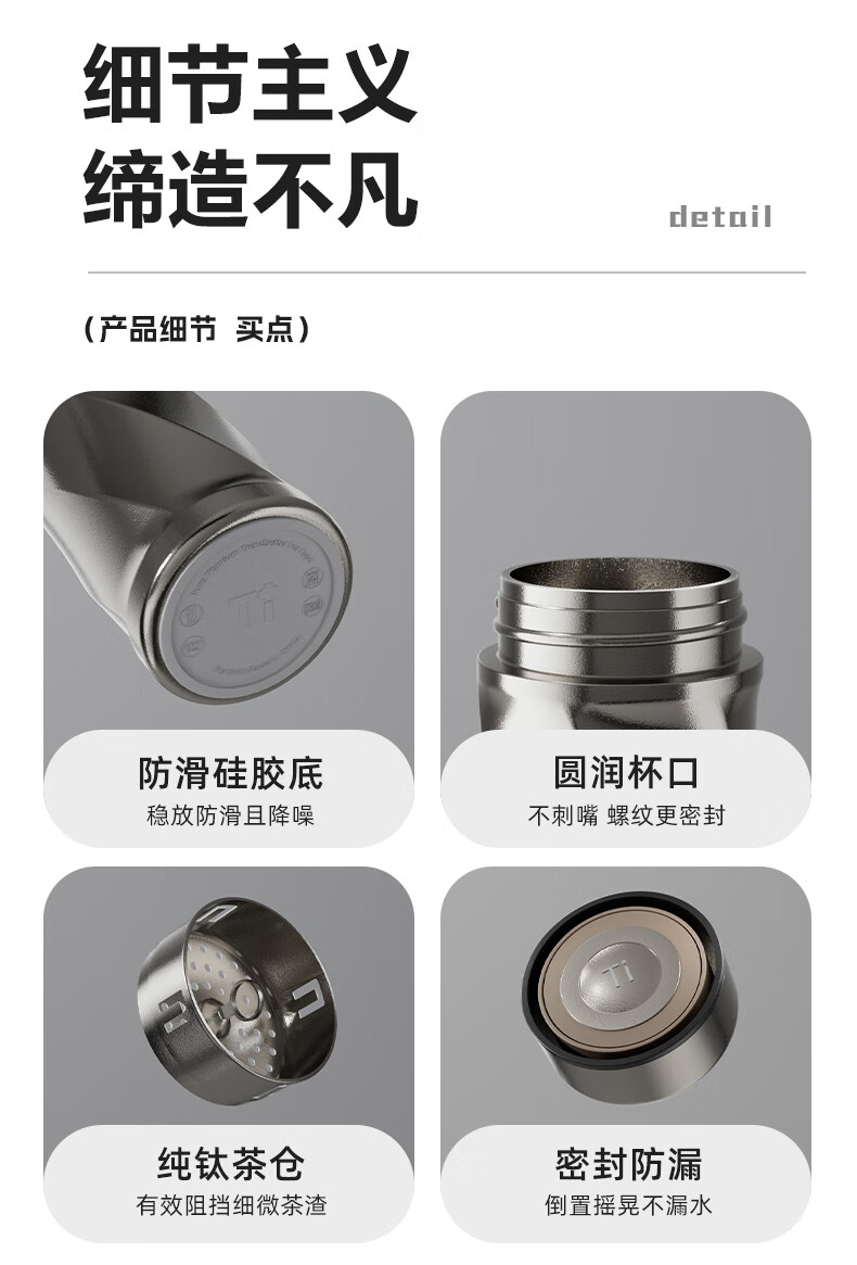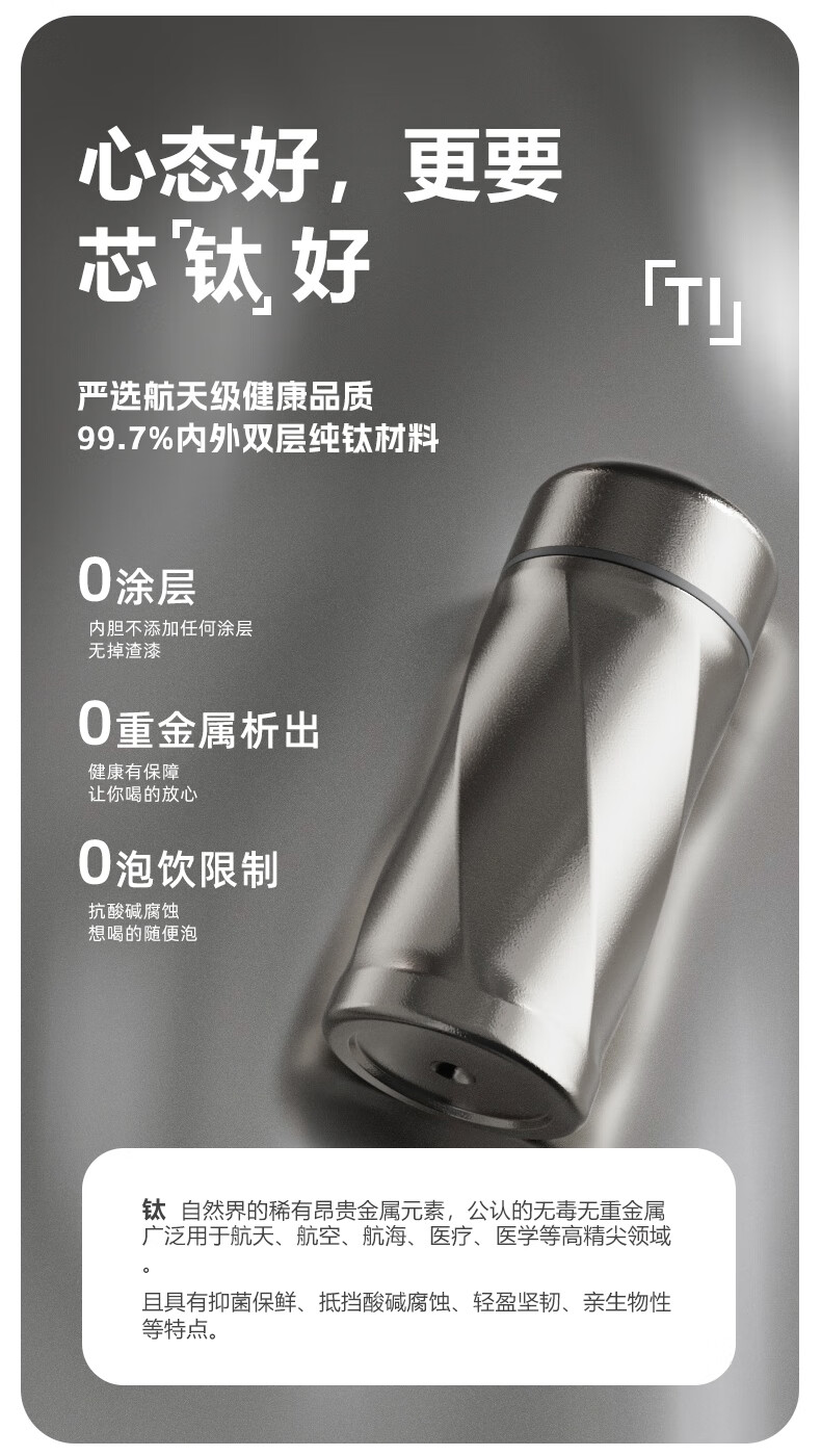 大卡纯钛保温杯便携水杯小巧口袋杯户外小容量迷你钛杯茶杯 皓月银200ml