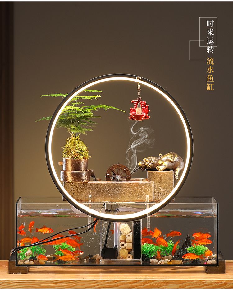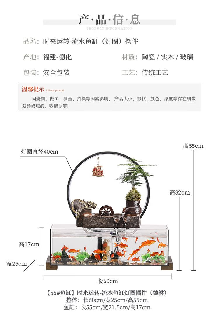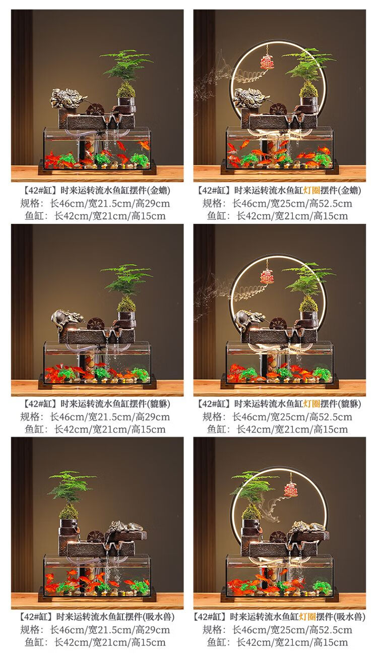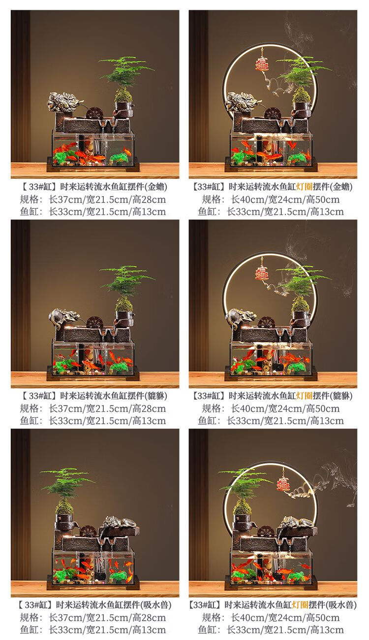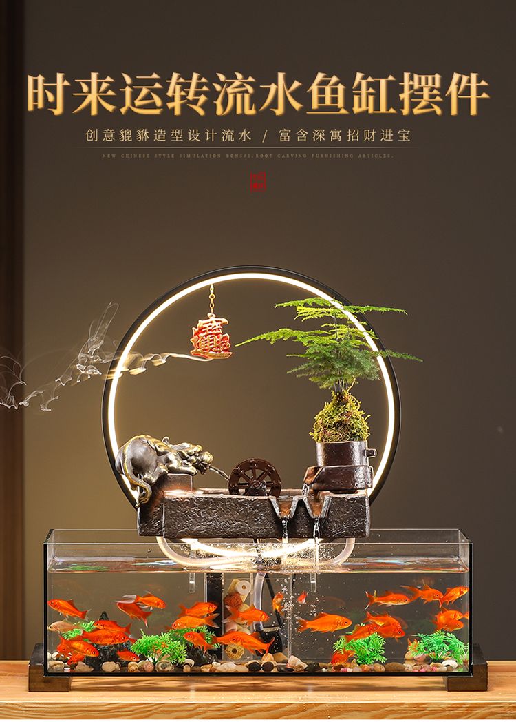 OYKTN流水金鱼缸摆件循环玻璃景观客厅办公室桌面小型乔迁开业礼品 33#鱼缸流水摆件-小号貔貅