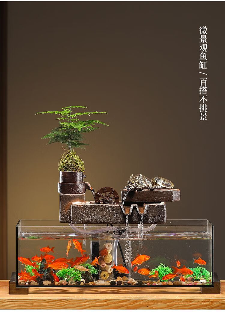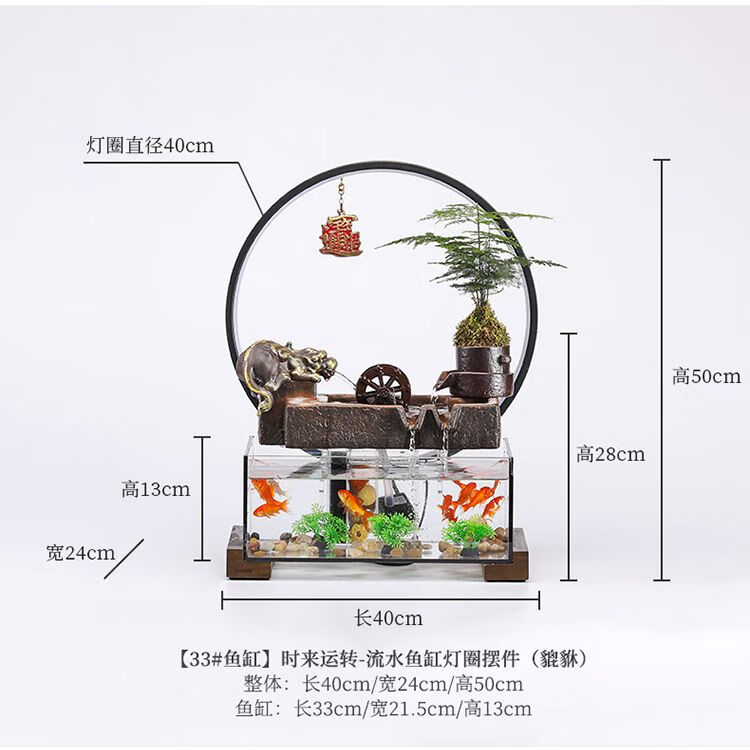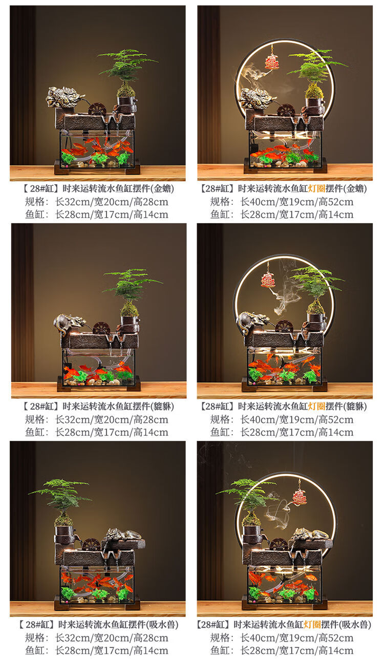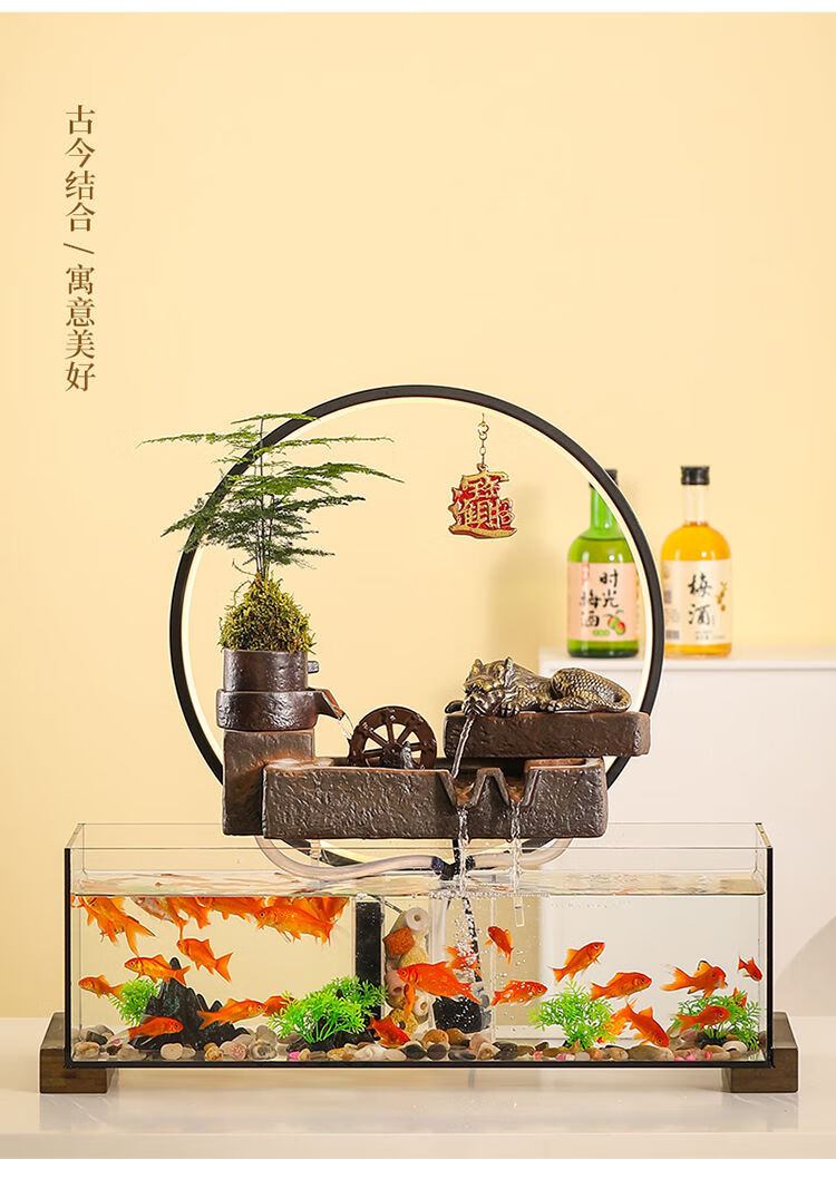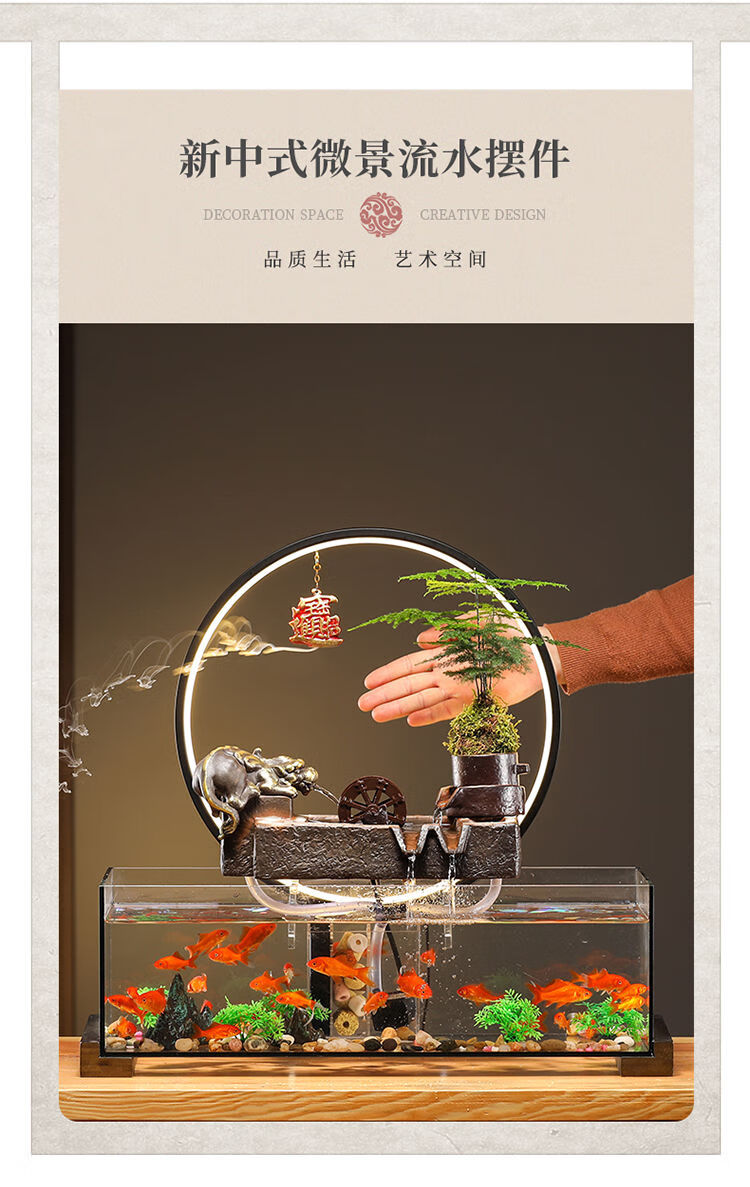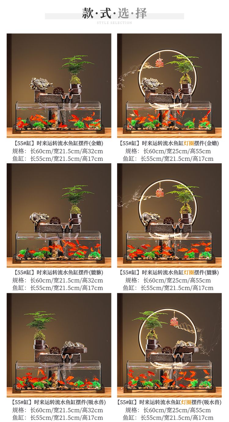 OYKTN流水金鱼缸摆件循环玻璃景观客厅办公室桌面小型乔迁开业礼品 33#鱼缸流水摆件-小号貔貅