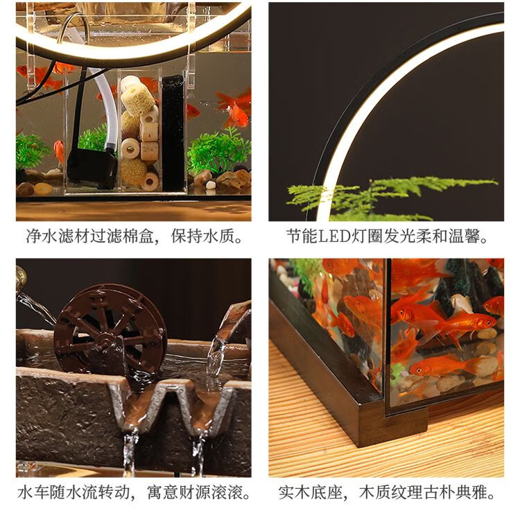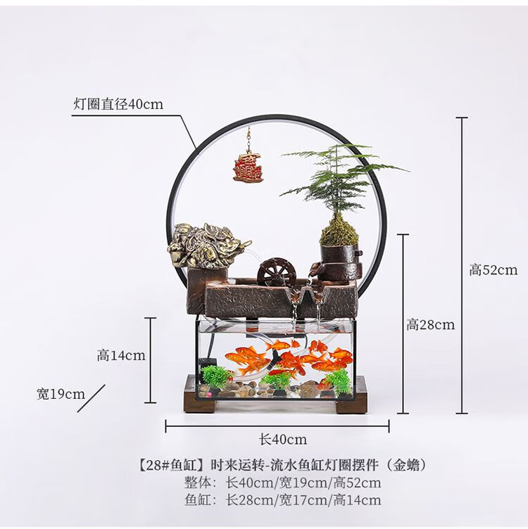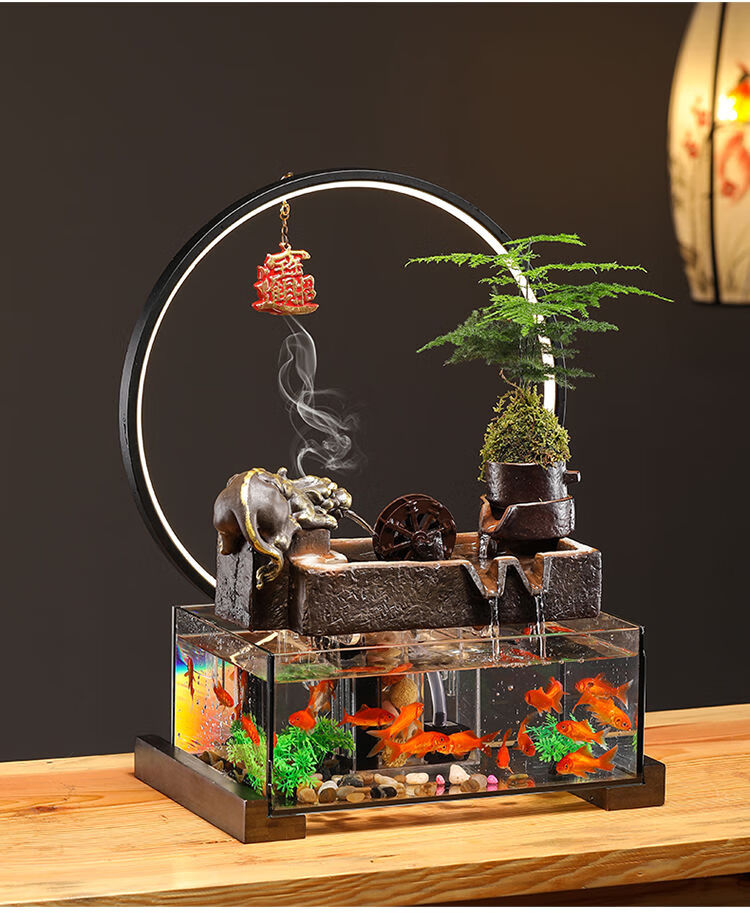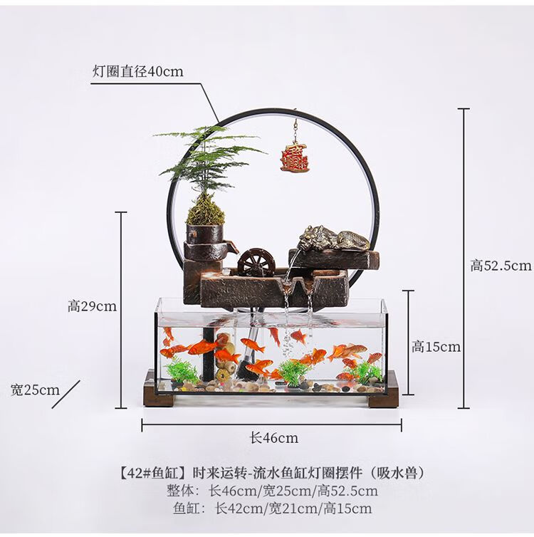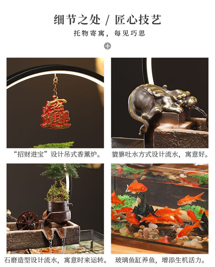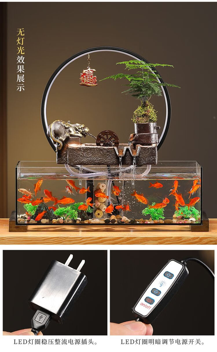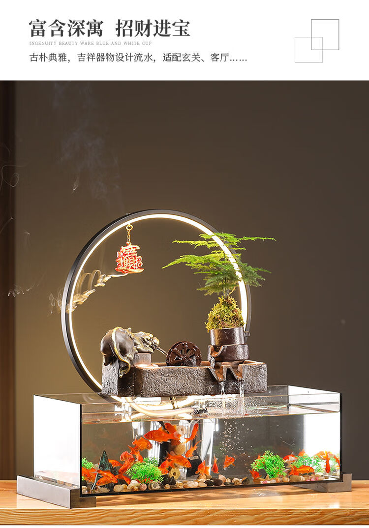 OYKTN流水金鱼缸摆件循环玻璃景观客厅办公室桌面小型乔迁开业礼品 33#鱼缸流水摆件-小号貔貅