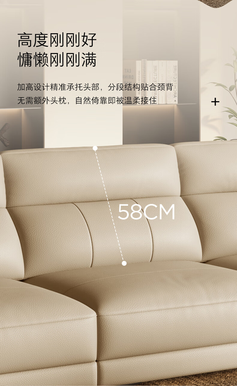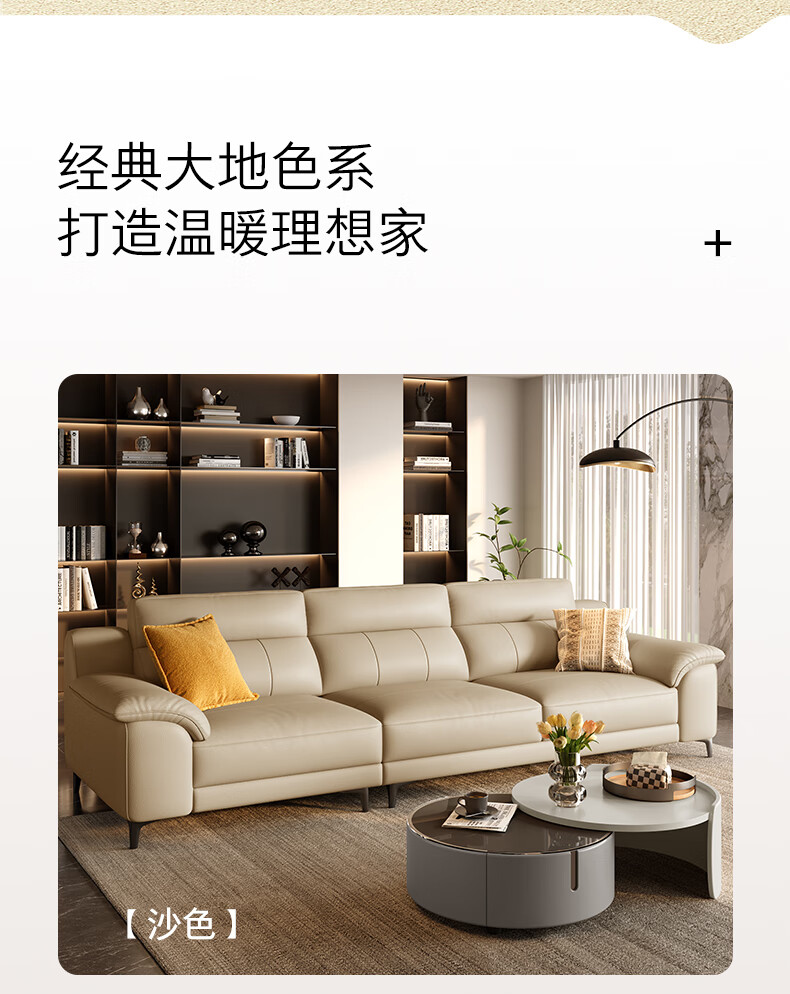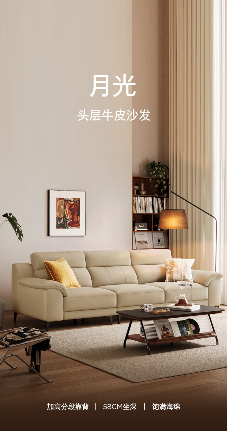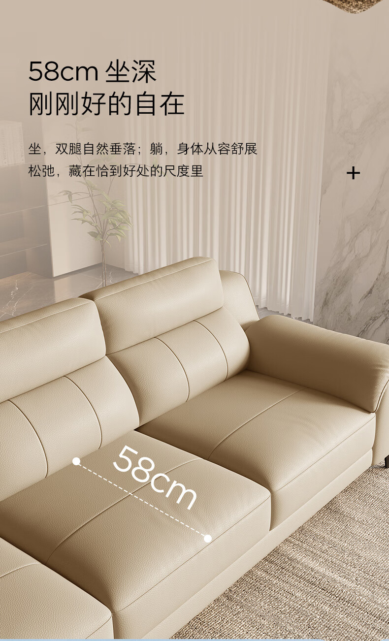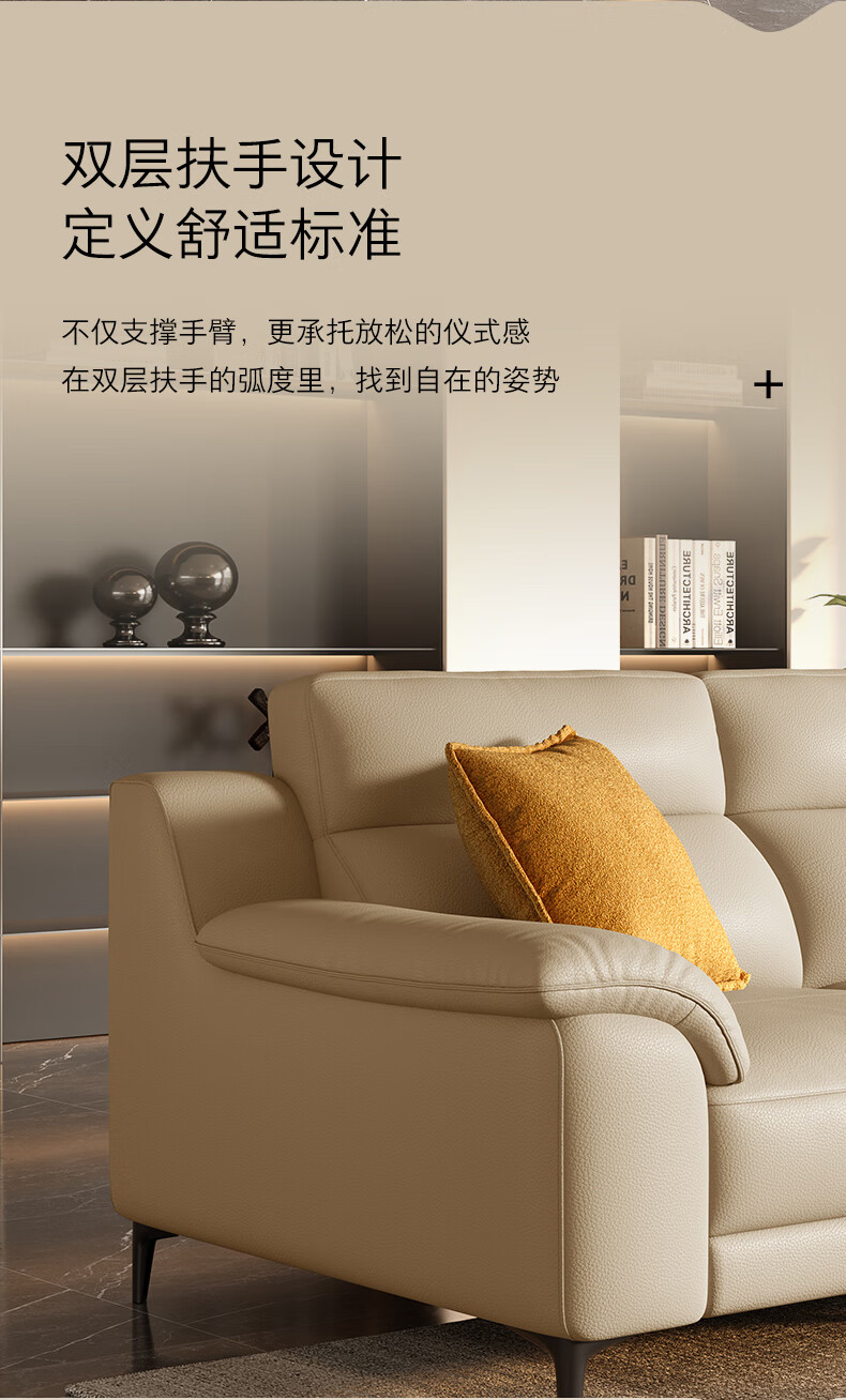 顾家家居(KUKA)现代简约真皮沙发双层扶手大坐深客厅沙发1596 沙色三人位2.8m