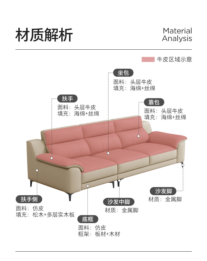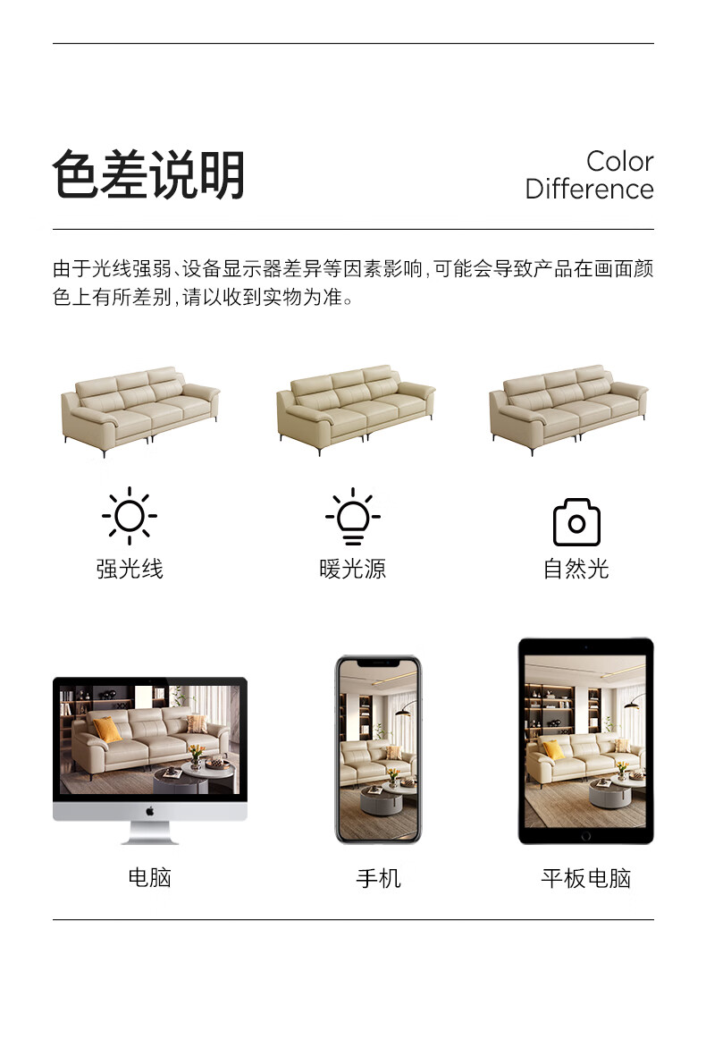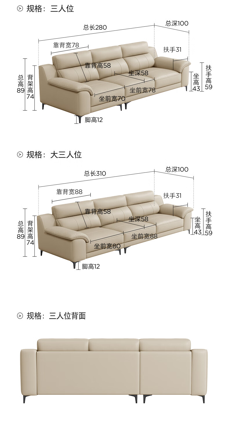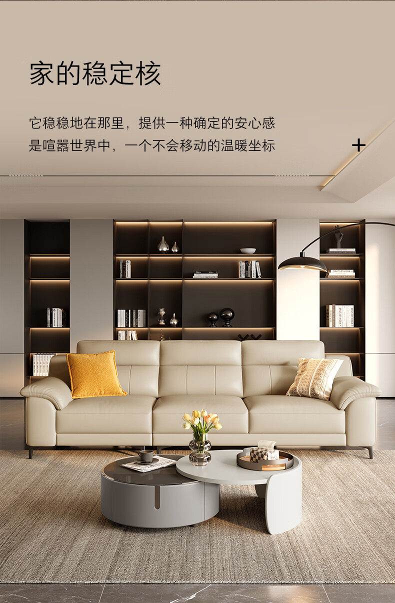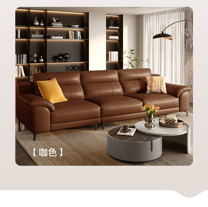 顾家家居(KUKA)现代简约真皮沙发双层扶手大坐深客厅沙发1596 沙色三人位2.8m