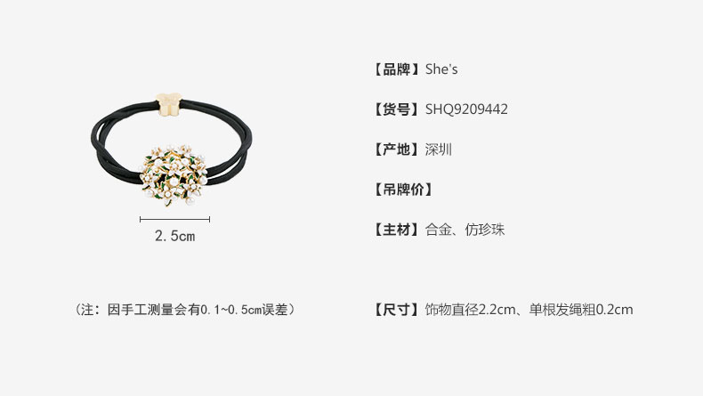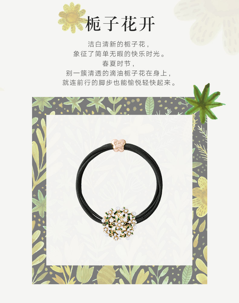 She's茜子栀子花朵撞色滴油橡皮筋发绳小清新发圈头绳生日礼物送女友