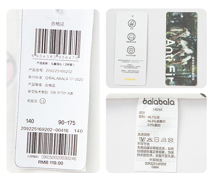 巴拉巴拉儿童背心无袖打底吊带男女童睡衣两件装【迪士尼IP】209225169202