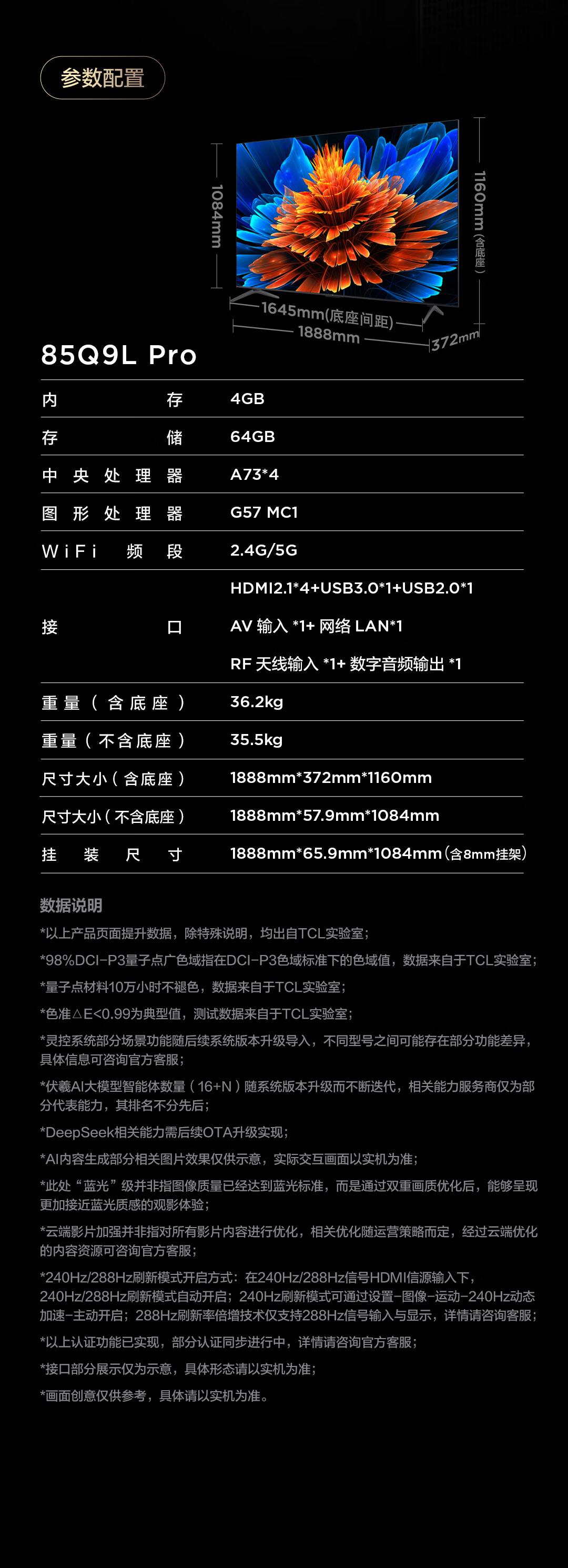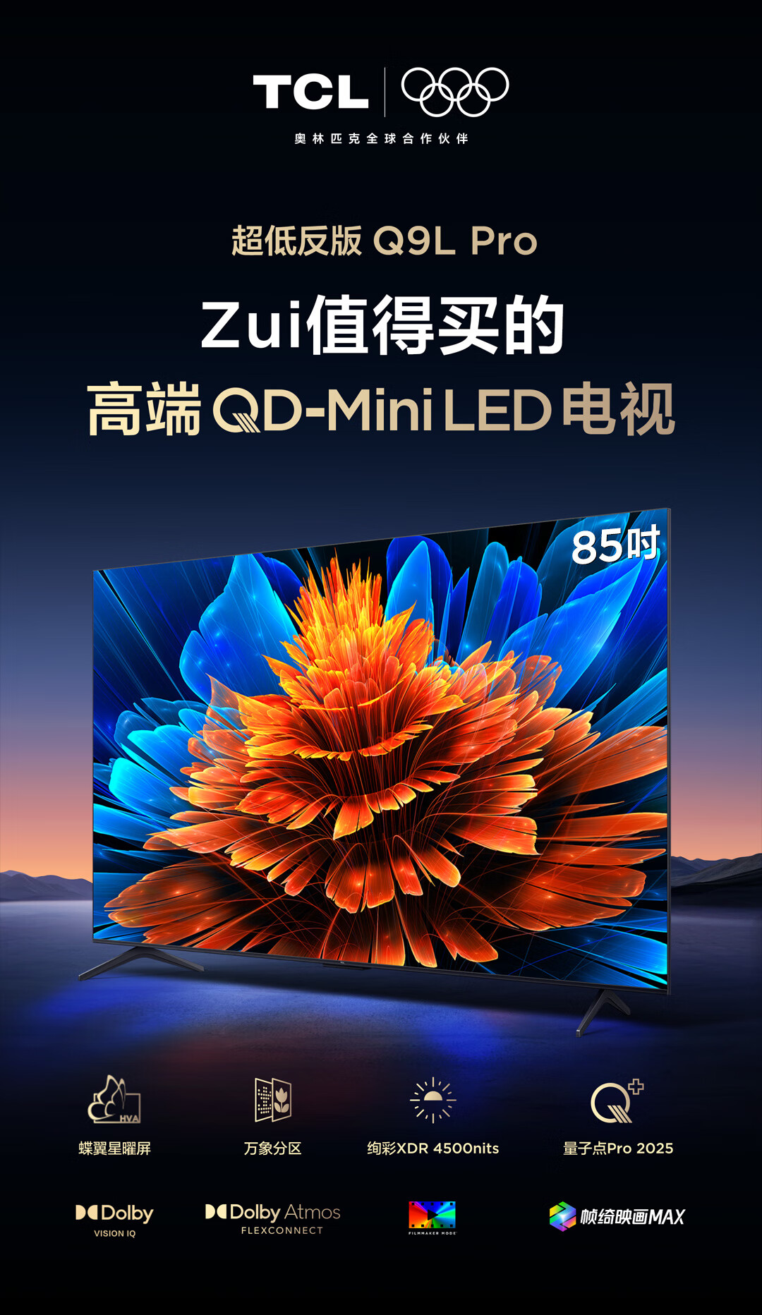 TCL电视 85Q9L Pro 85英寸 QD-Mini LED 蝶翼星曜屏 万象分区 绚彩XDR 超薄 国家补贴