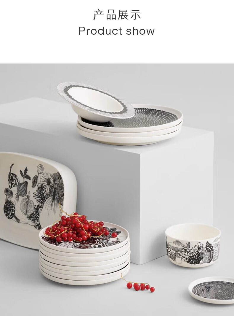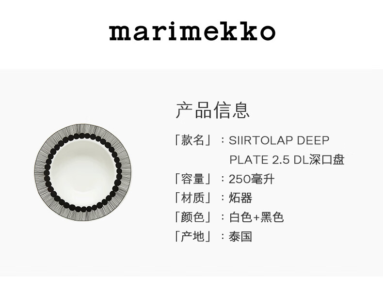 marimekko【热销补货】2025秋冬新品高颜值北欧风家用印花深口盘 白色、黑色