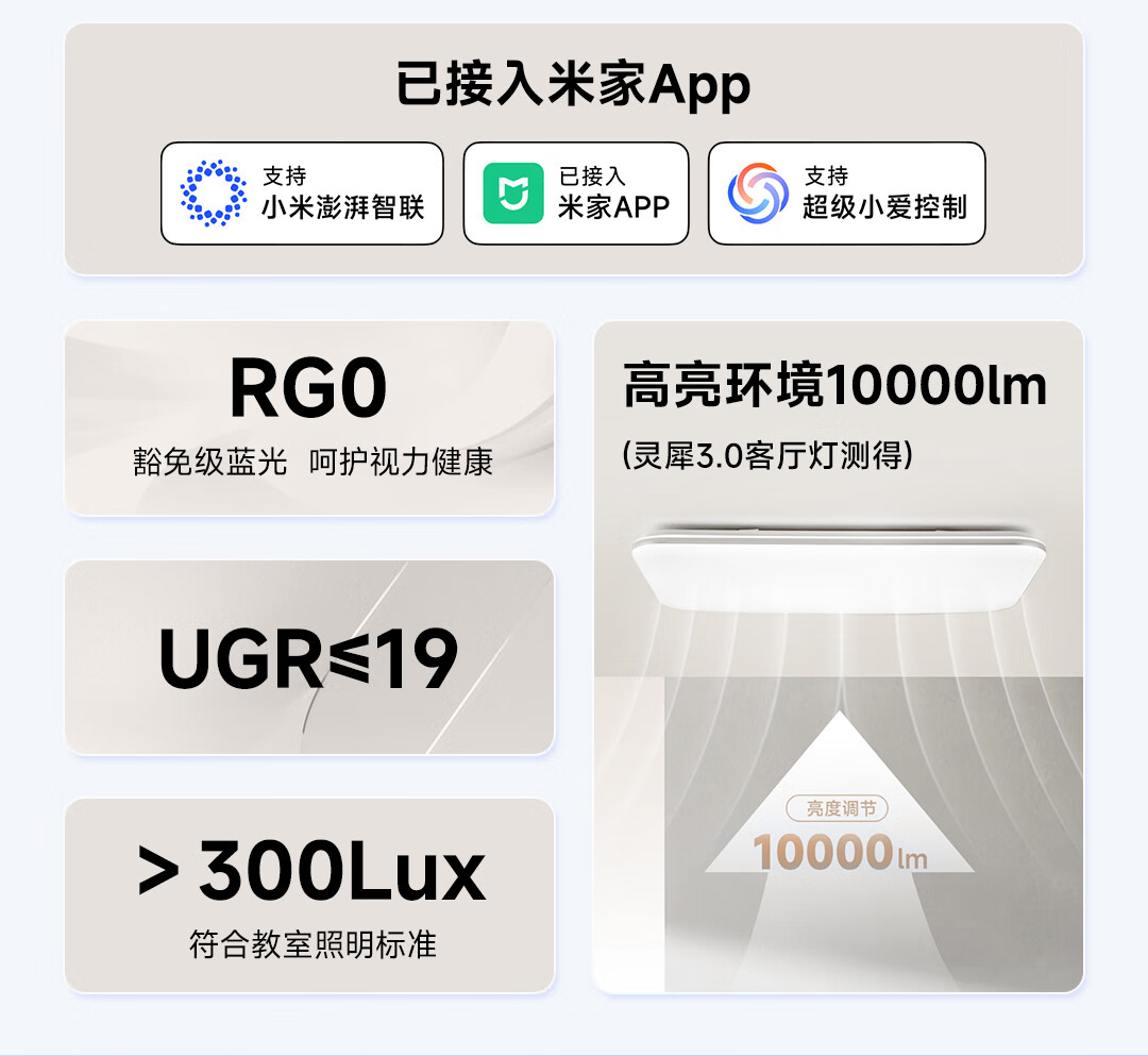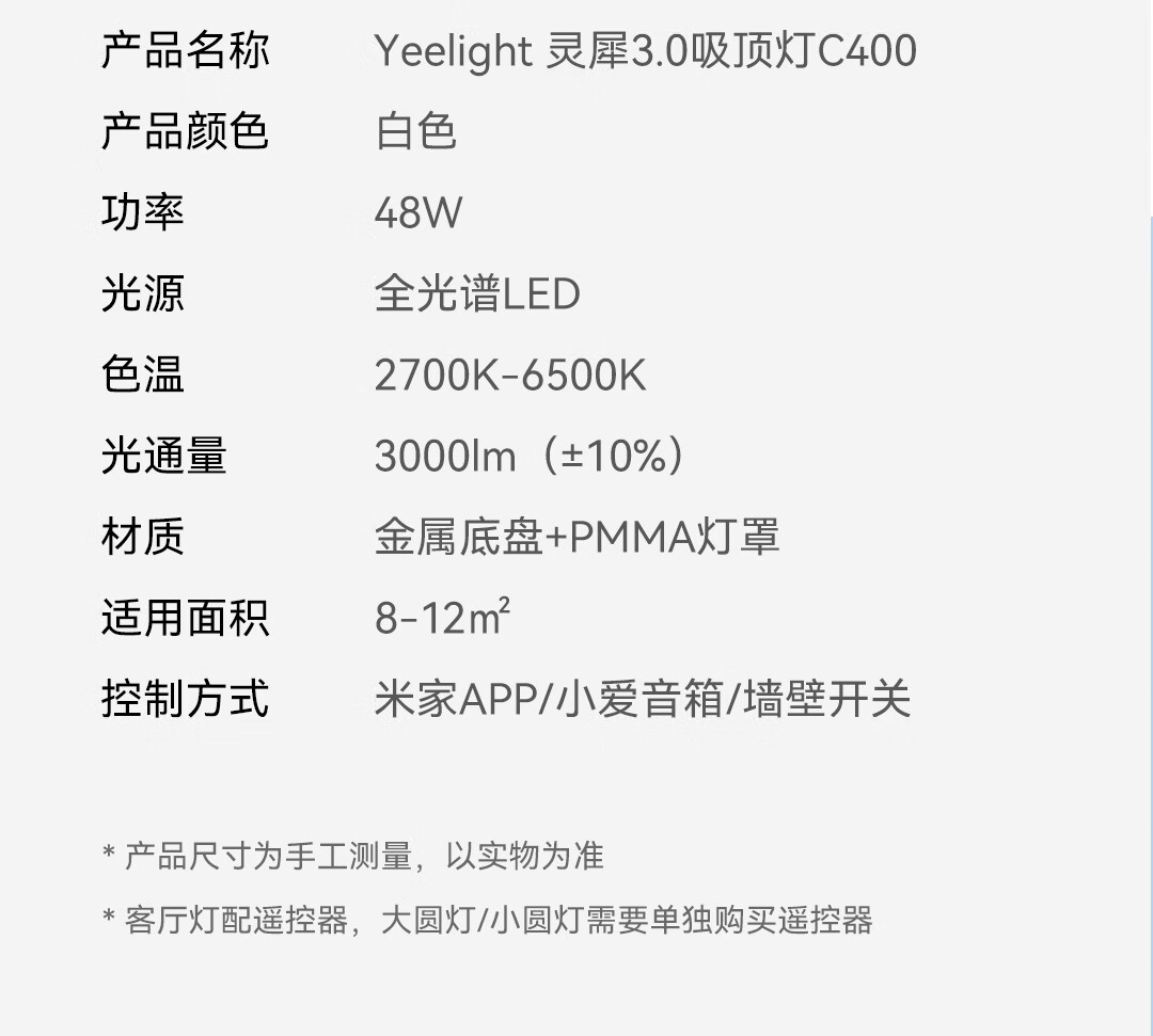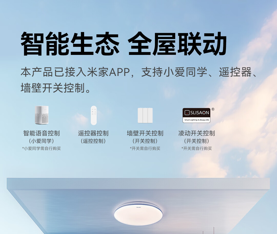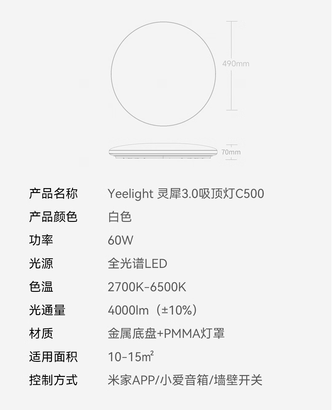 Yeelight易来led全光谱吸顶灯客厅卧室接入米家APP灵犀3.0C500【包安装】