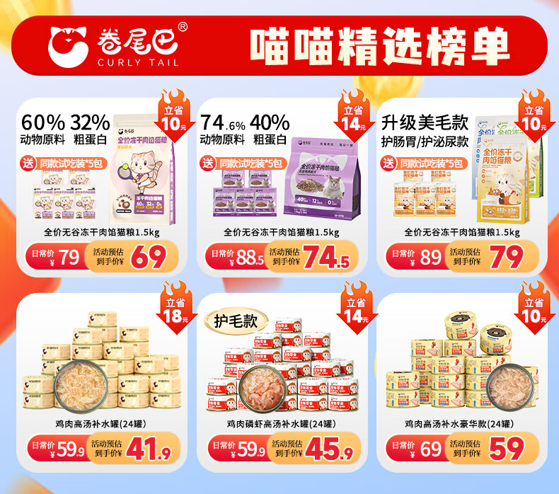 卷尾巴(CURLY TAIL)猫罐头补水营养增肥发丝鸡肉配方猫咪零食湿粮成幼猫湿粮整箱 吨吨补水罐85g*6罐【新客尝鲜】