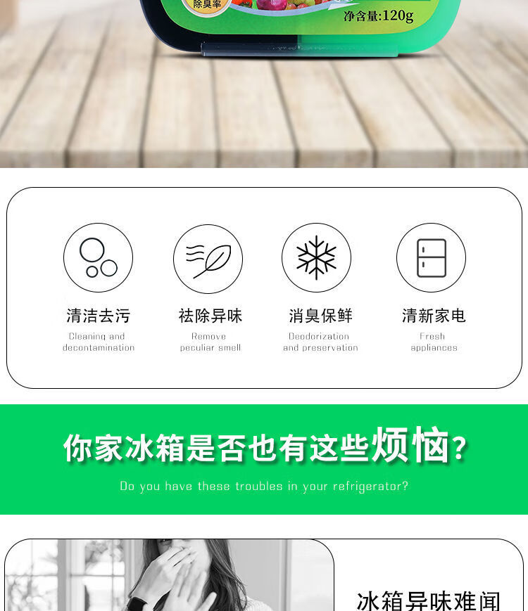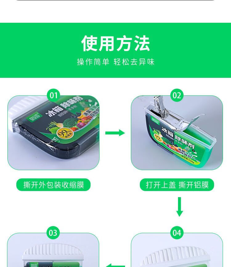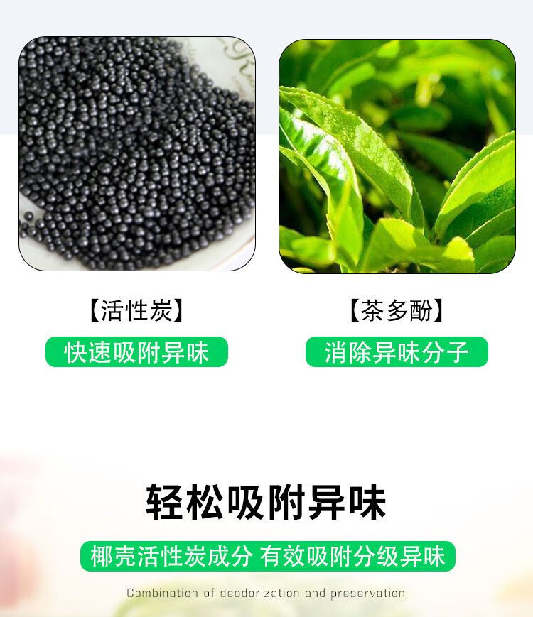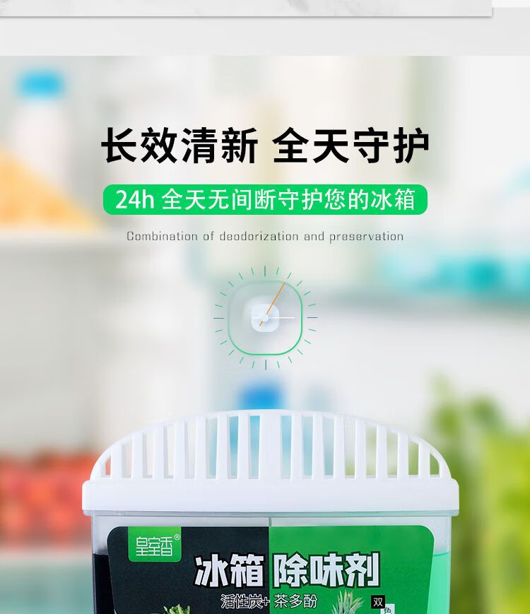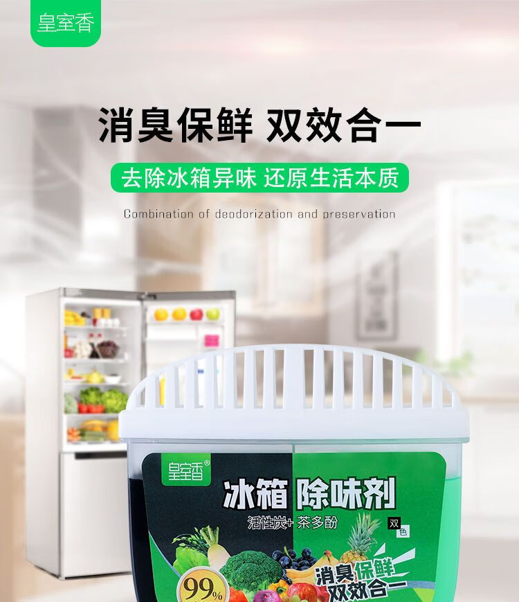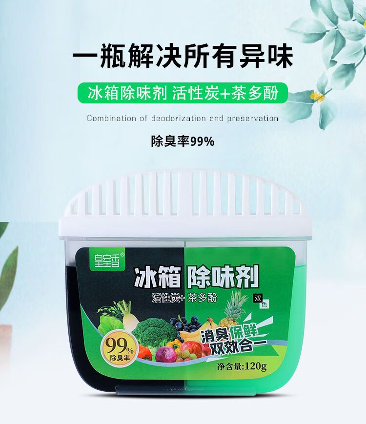 AILUKI冰箱除臭剂除异味神器家用活性炭除异味去味净化清新消臭保鲜盒 【活性炭+茶多酚】+消臭+保鲜e 买三送二共5盒【重度异味选择】*