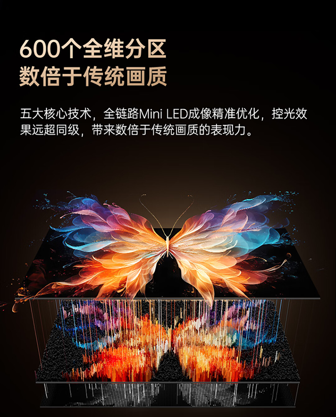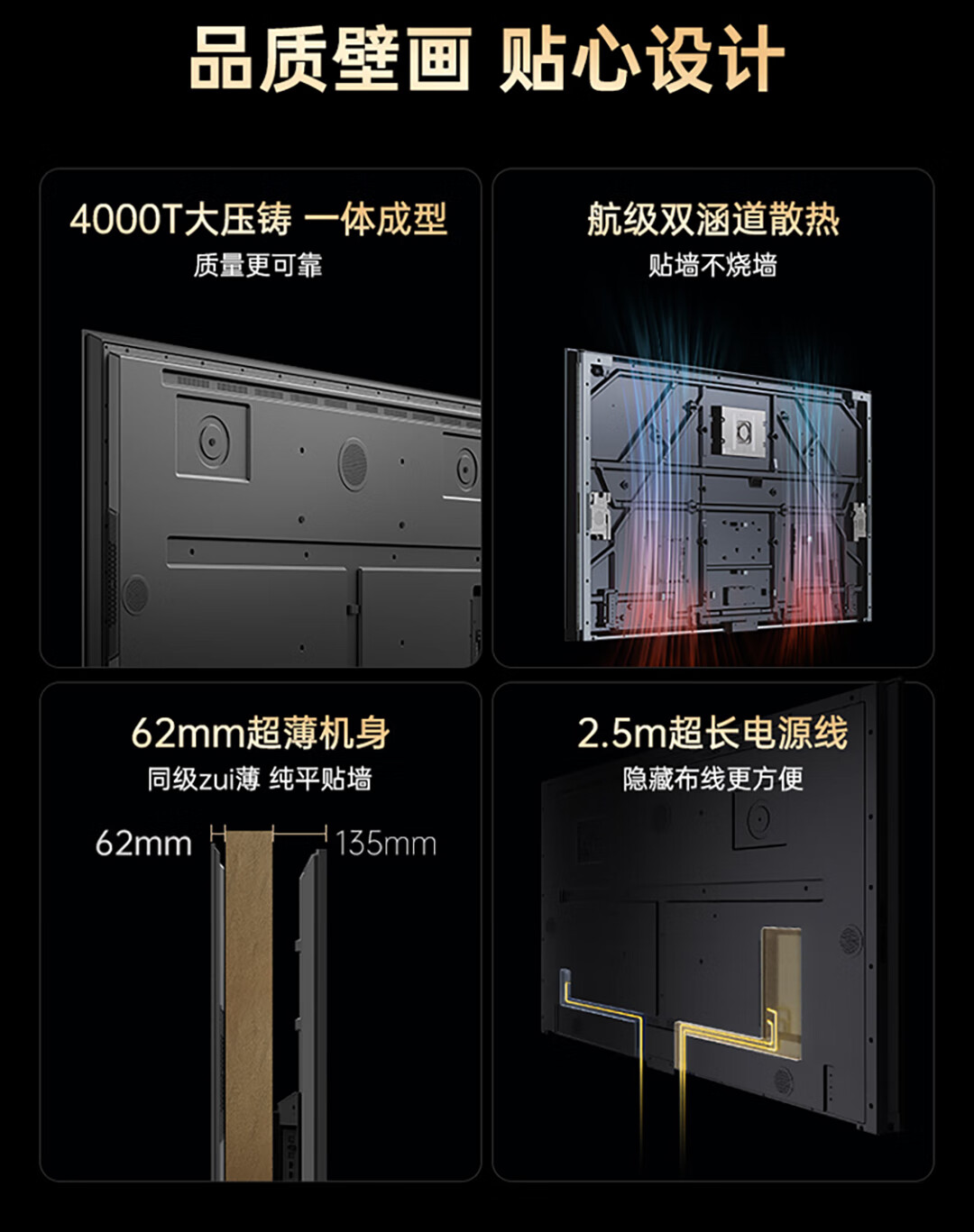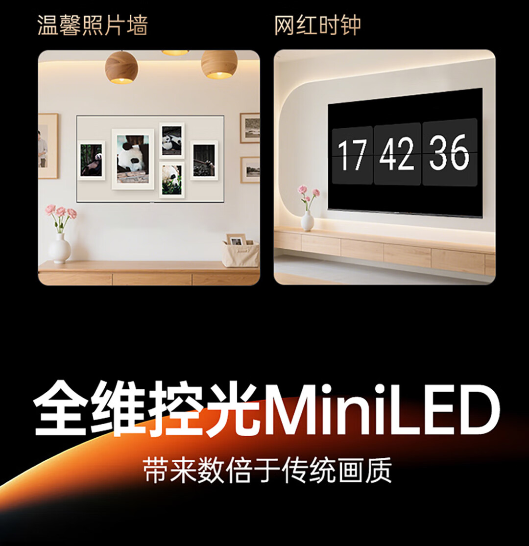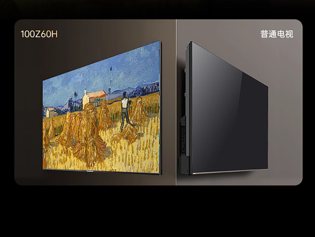 长虹 100Z60H 100英寸欧宝丽 MiniLED 1200nit峰值亮度 62mm超薄机身 智能电视 平板电视机 一级能效 100英寸