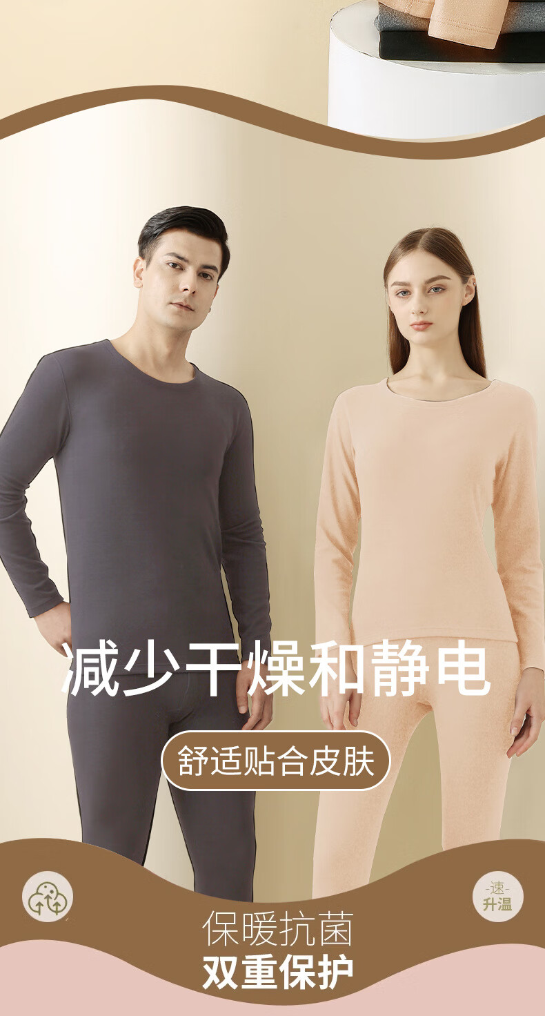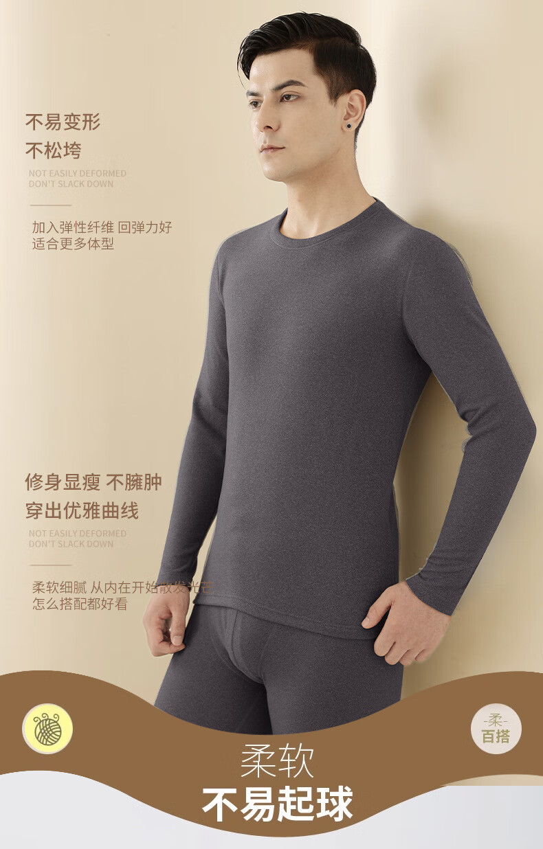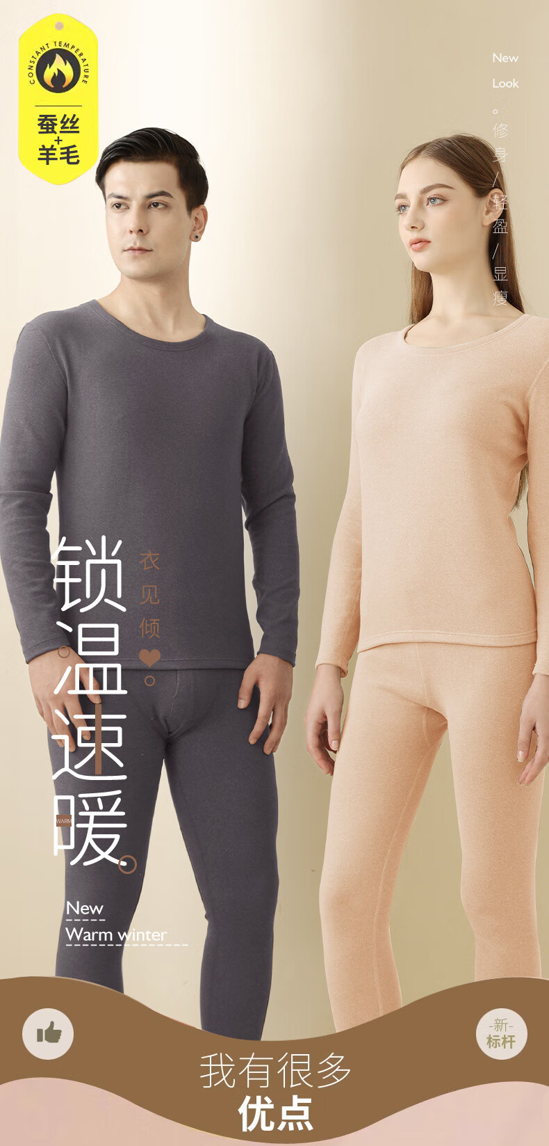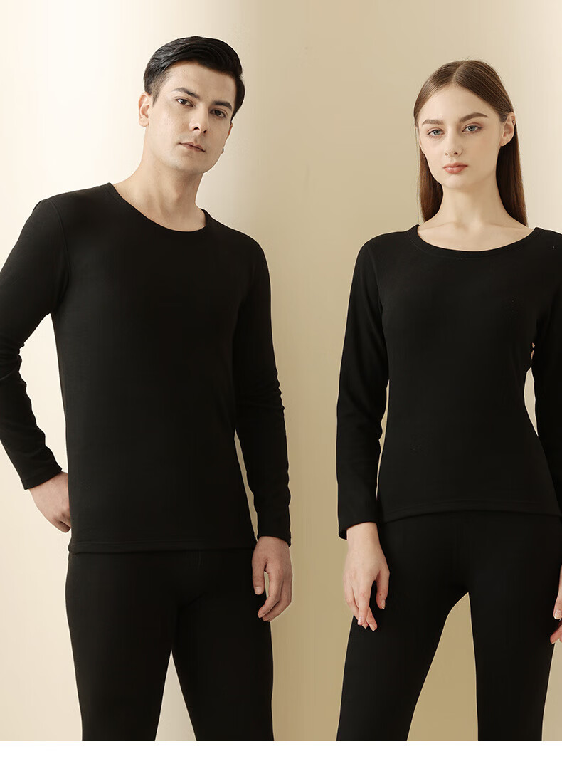 燠阳情侣保暖内衣套装秋衣秋裤男女士羊毛蚕丝修身冬天打底衫长袖 男-黑色 4XL 男款【180-200斤】