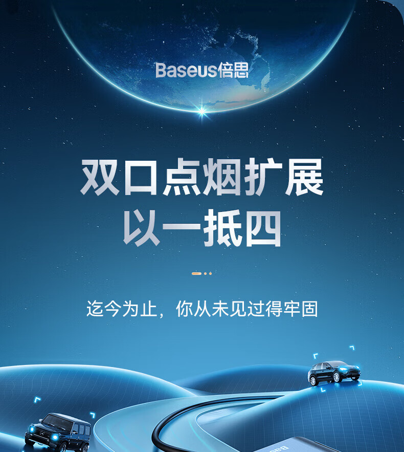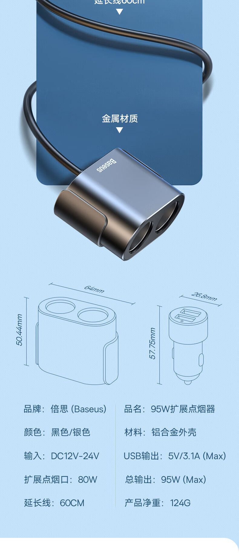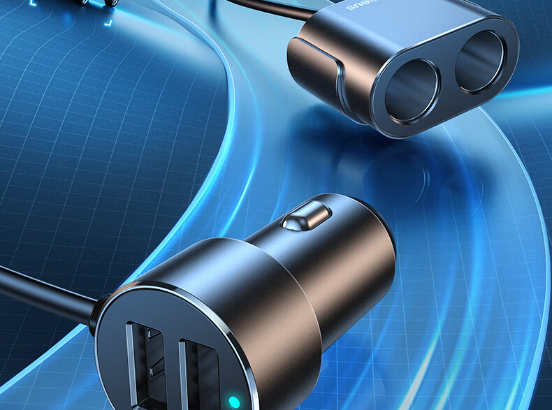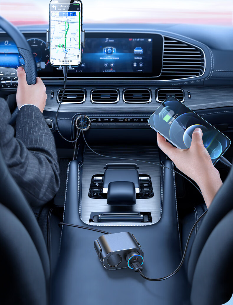 倍思车载充电器95W快充点烟器一拖二/三车载扩展点烟口汽车转换器