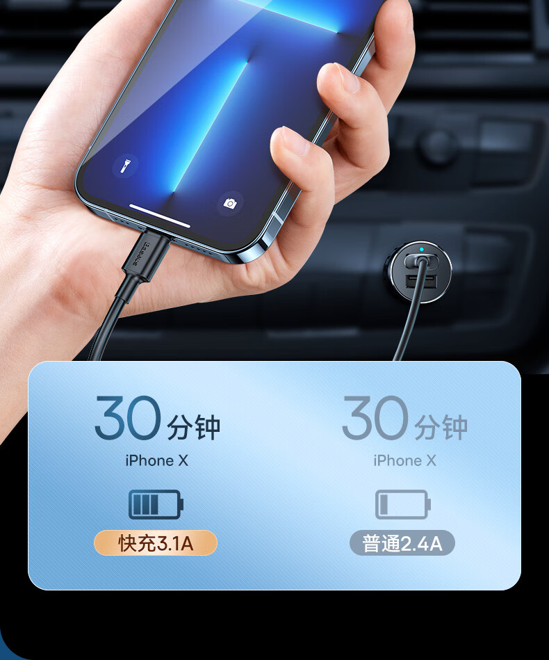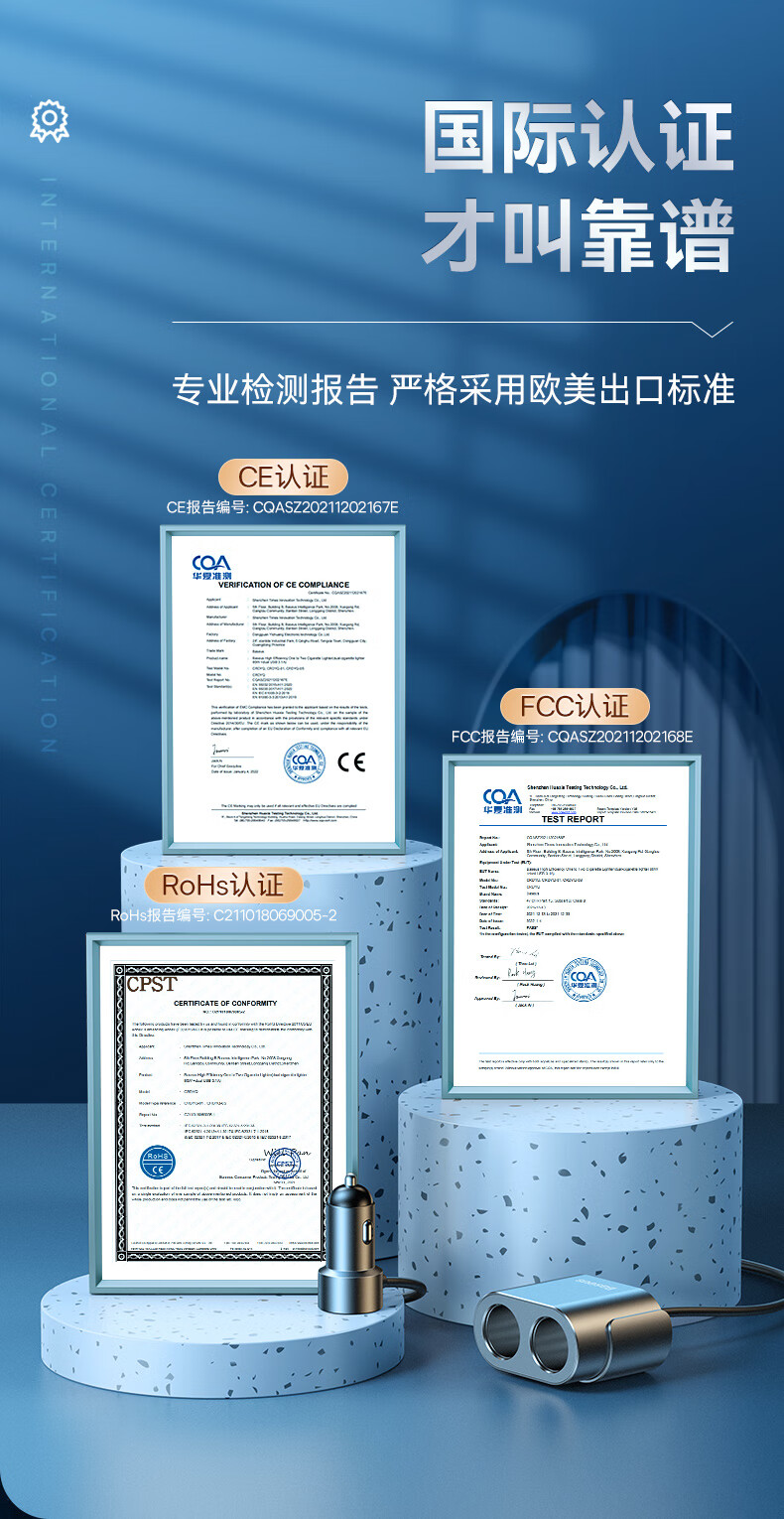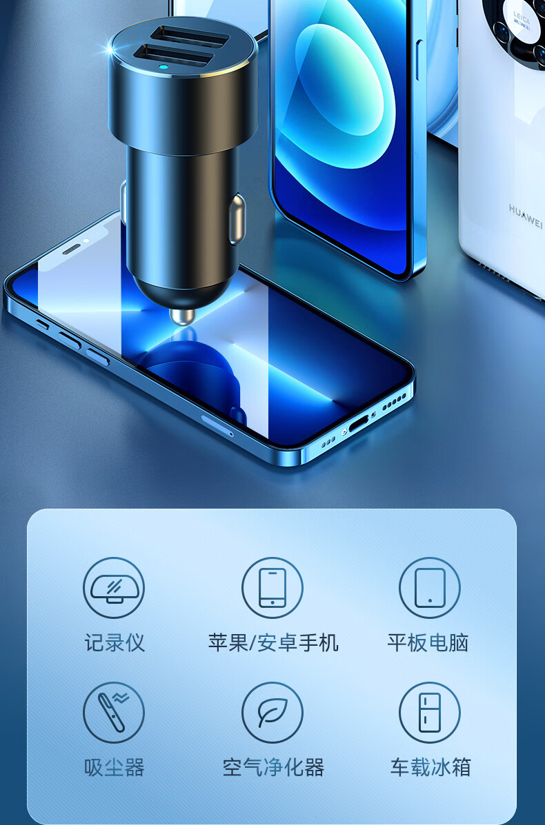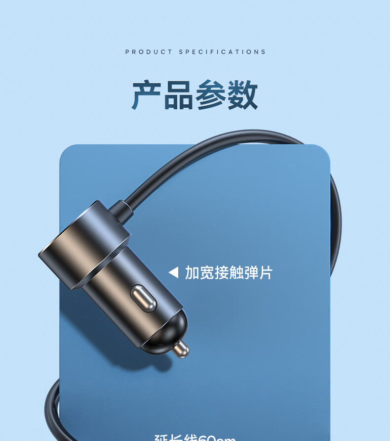 倍思车载充电器95W快充点烟器一拖二/三车载扩展点烟口汽车转换器