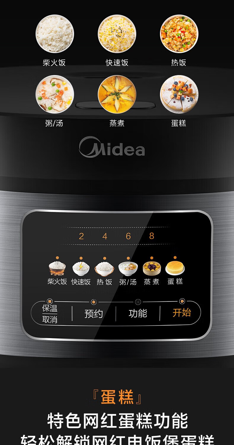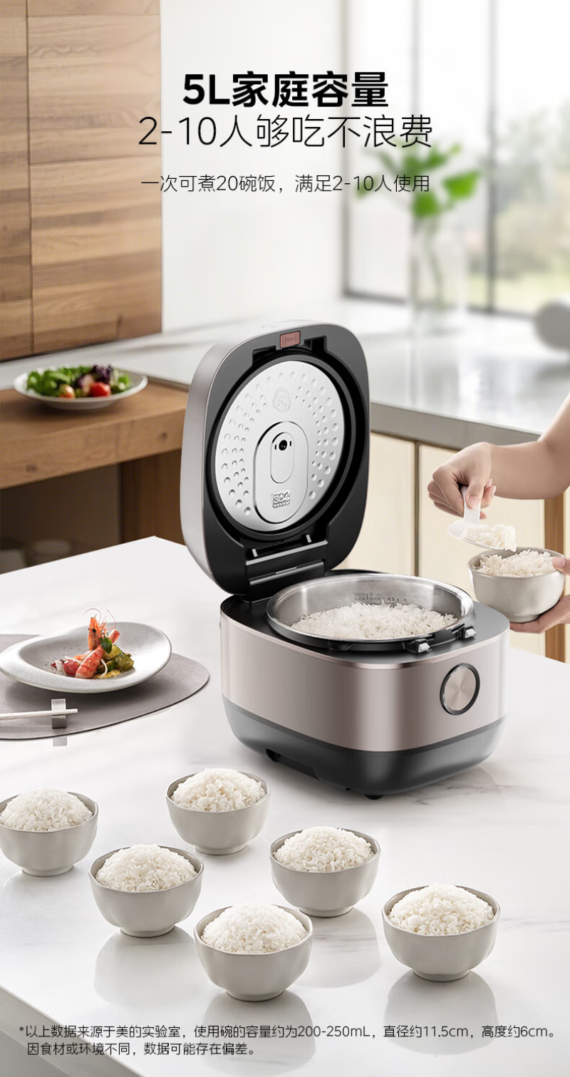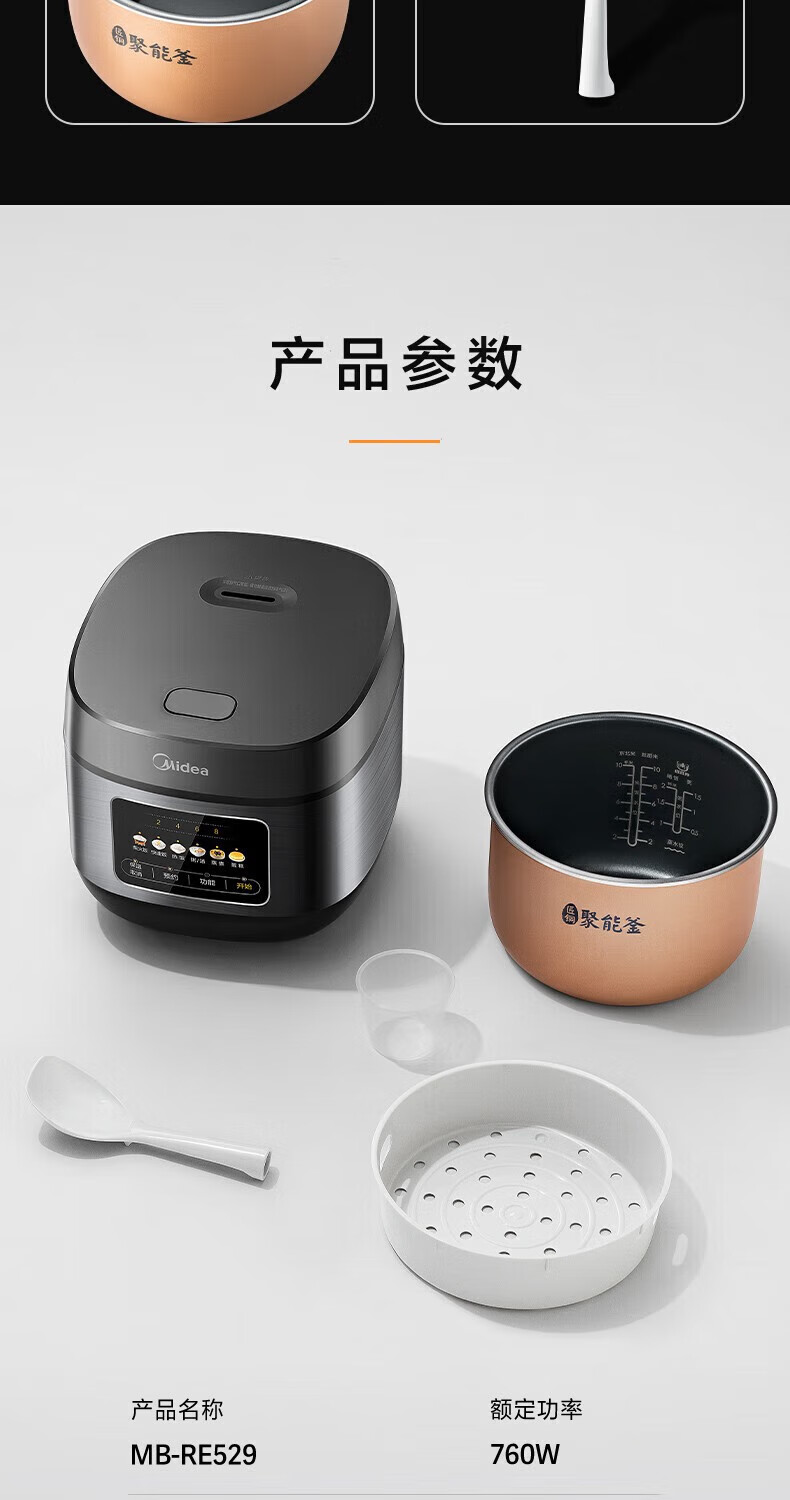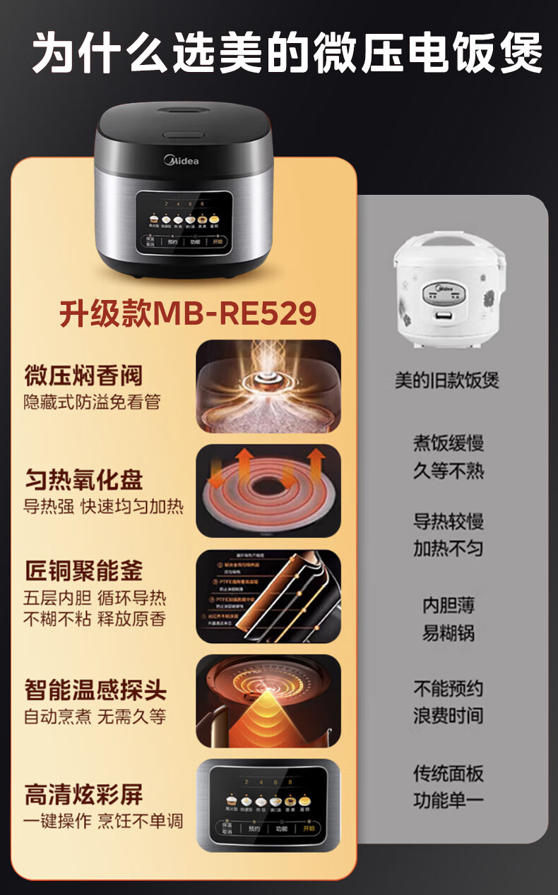 美的(Midea)电饭煲家用电饭锅5L大容量4-5-8-10人多功能智能预约柴火饭煲汤煮粥蛋糕不粘内胆微压煮饭锅 【微压焖香阀】 5L MB-RE529